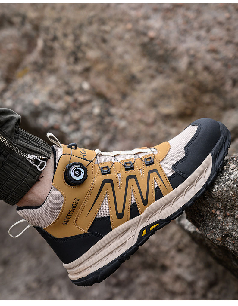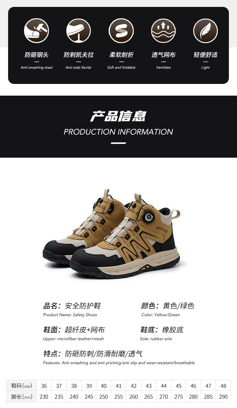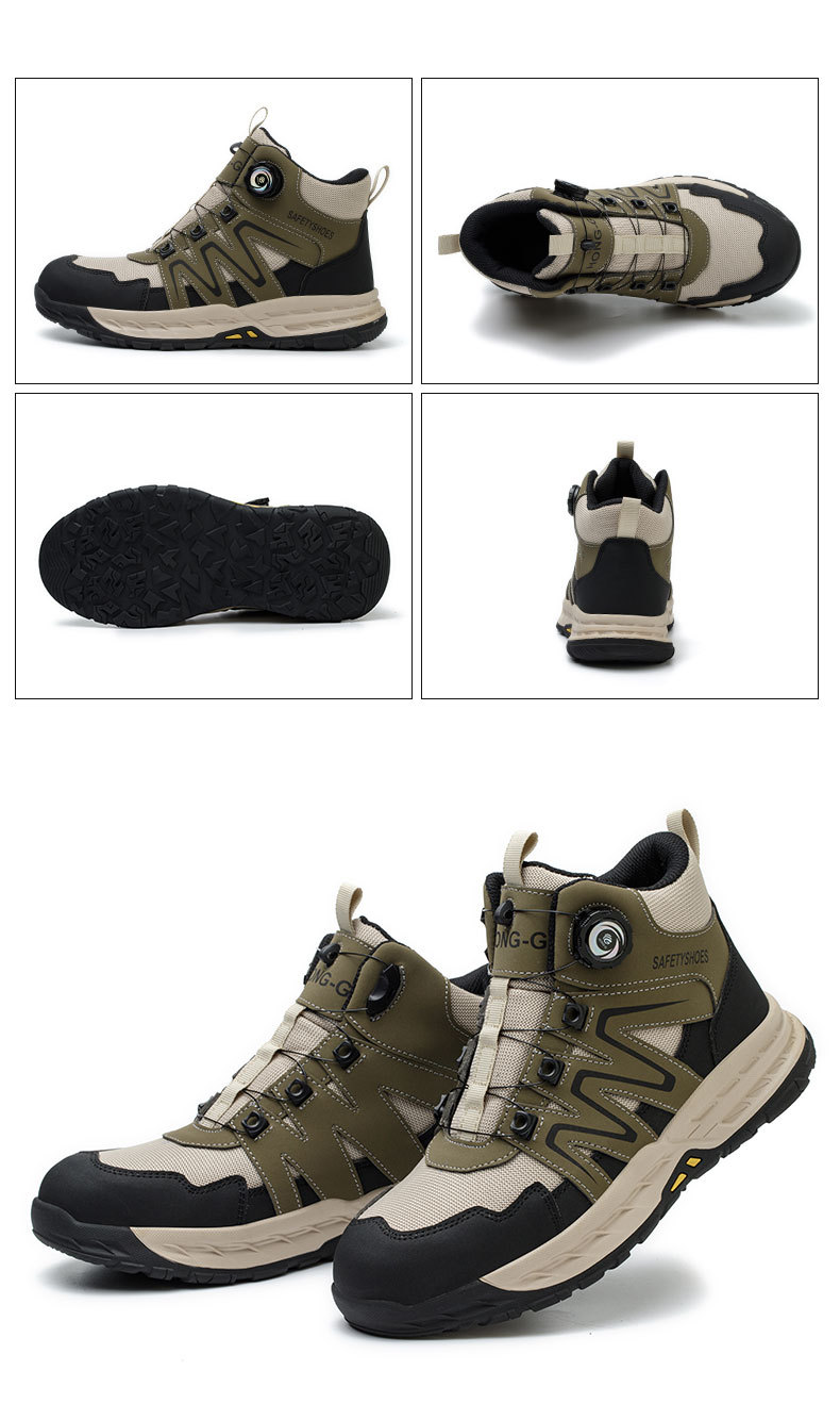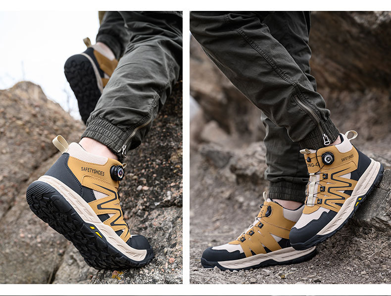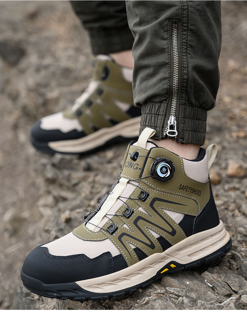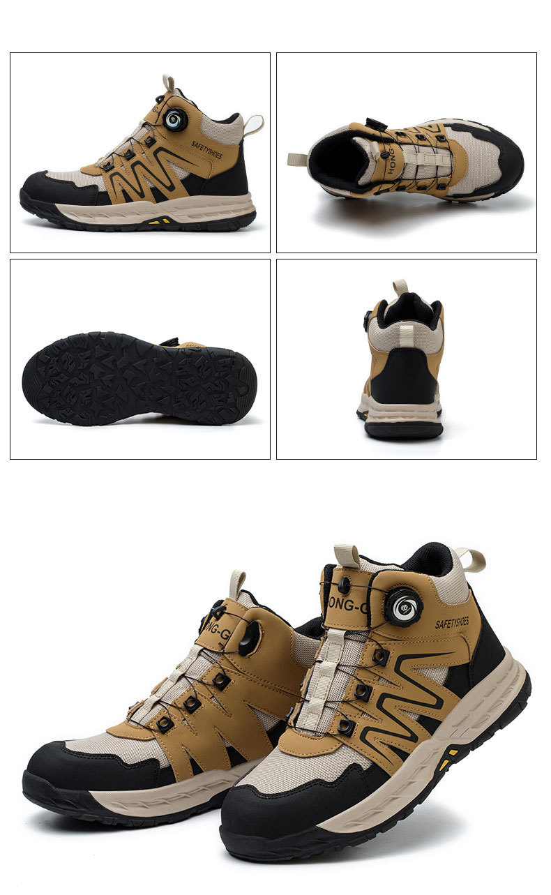 크로스보더 패션 회전 버튼 하이탑 안전화, 충격 방지 및 관통 방지 안전화, 끈 없는 편리한 신발, 내마모성 신발
