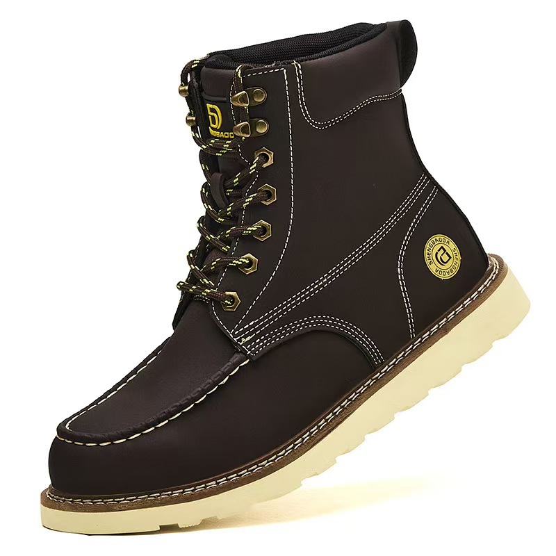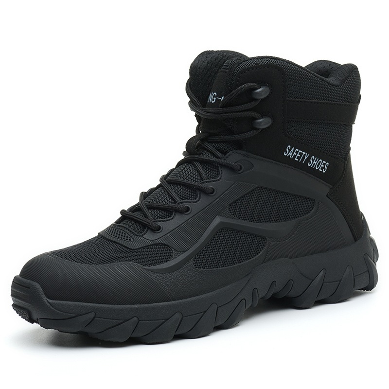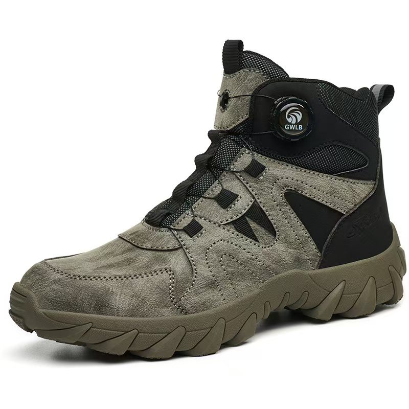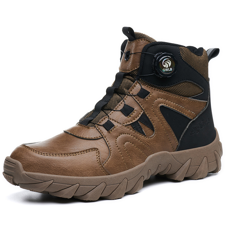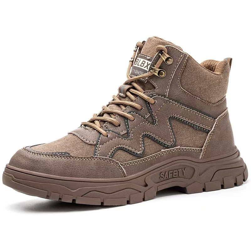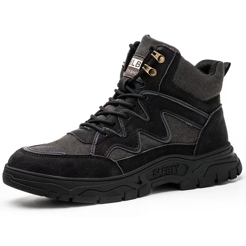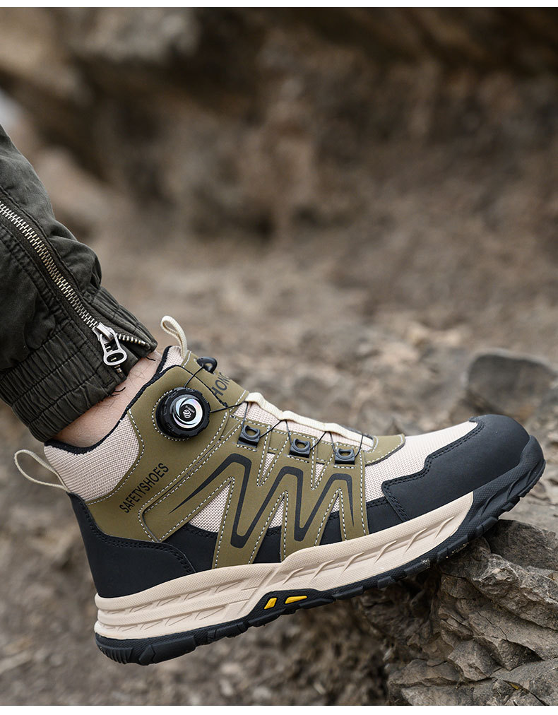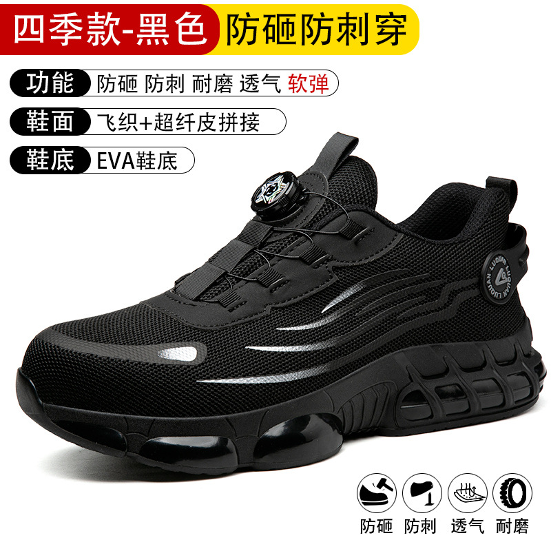 크로스보더 패션 회전 버튼 하이탑 안전화, 충격 방지 및 관통 방지 안전화, 끈 없는 편리한 신발, 내마모성 신발