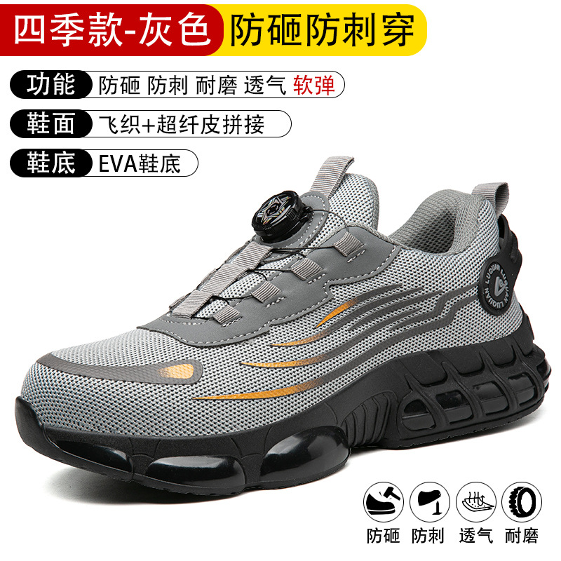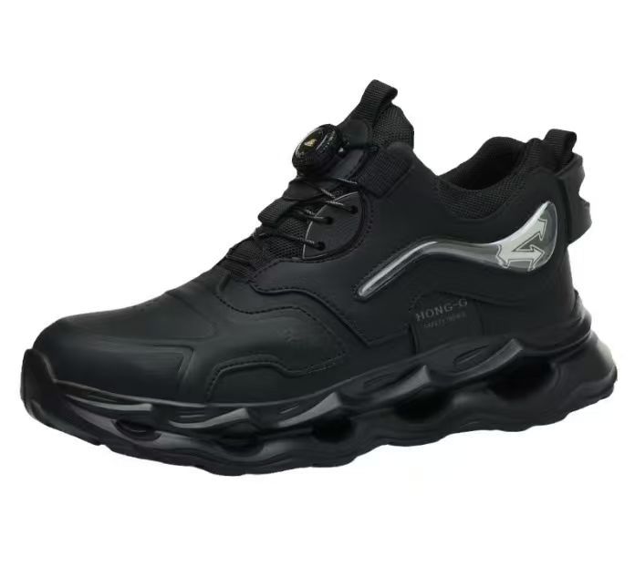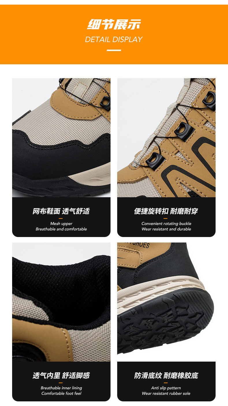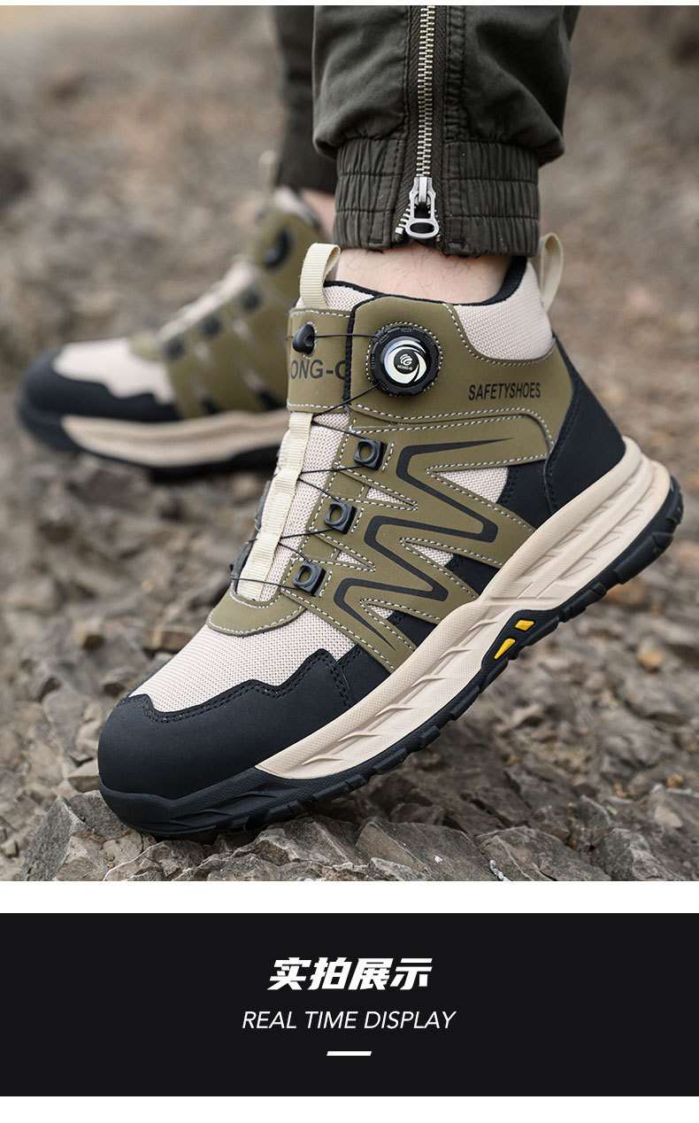 크로스보더 패션 회전 버튼 하이탑 안전화, 충격 방지 및 관통 방지 안전화, 끈 없는 편리한 신발, 내마모성 신발스토어 가기