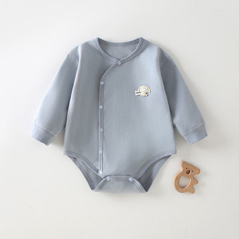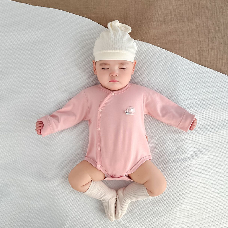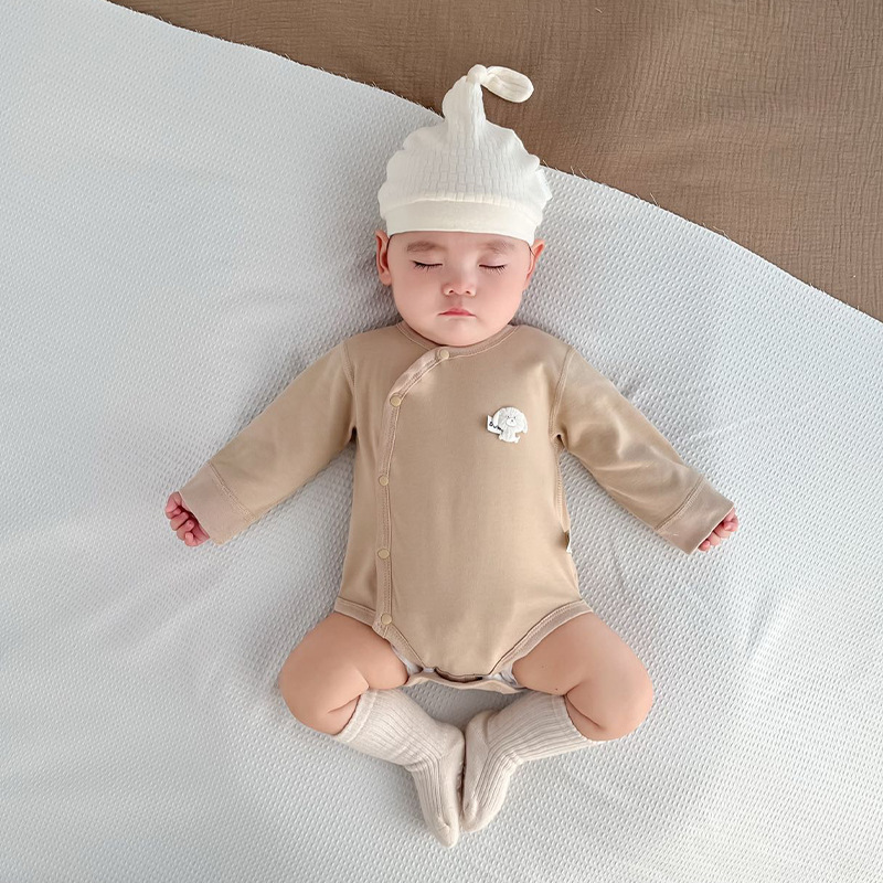 순수한면 가방 방향복 여름과 봄 등반 착용 삼각형 모자 아기 가을 잠옷 슬란트 가슴 점프 수트 신생아