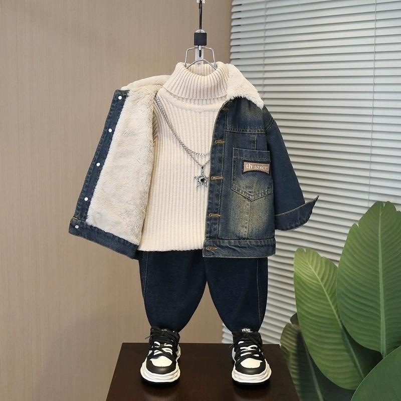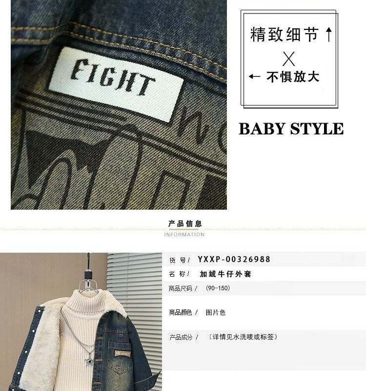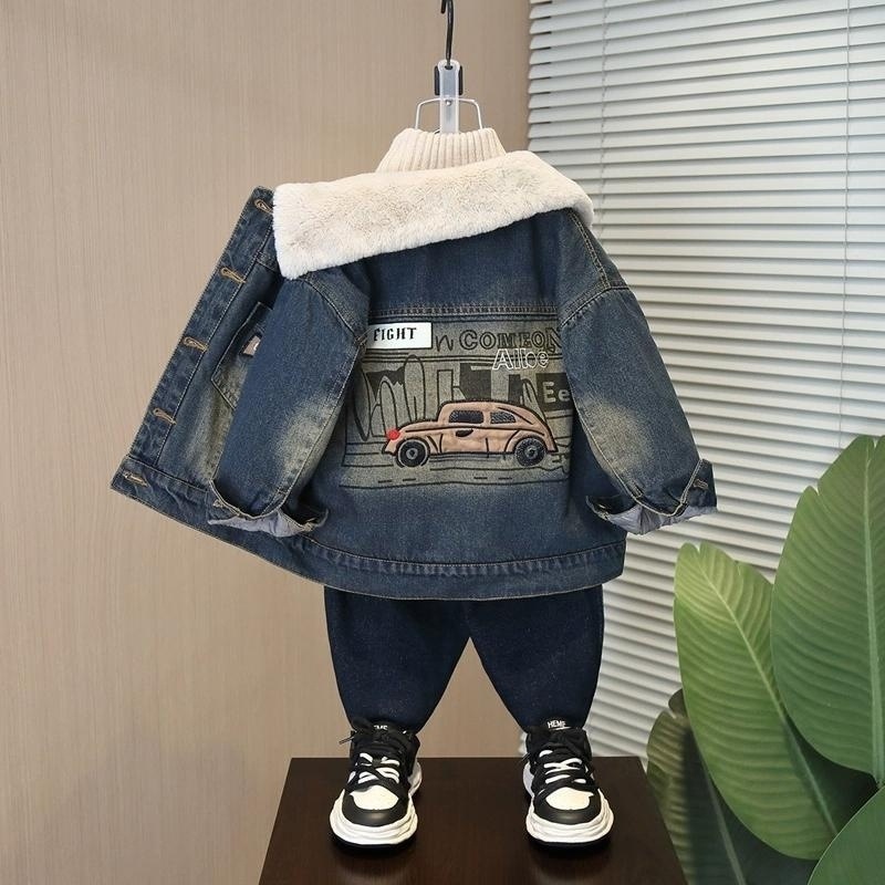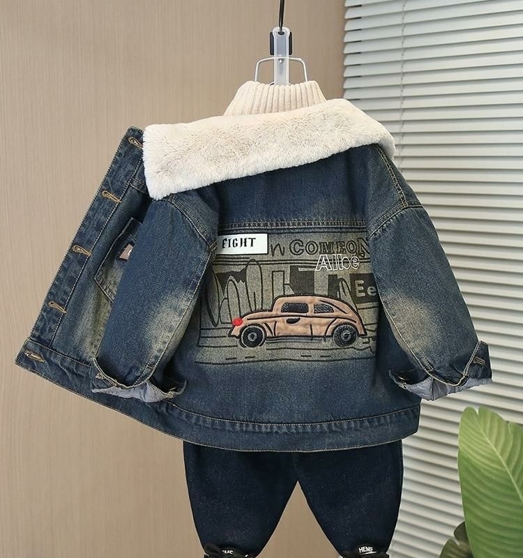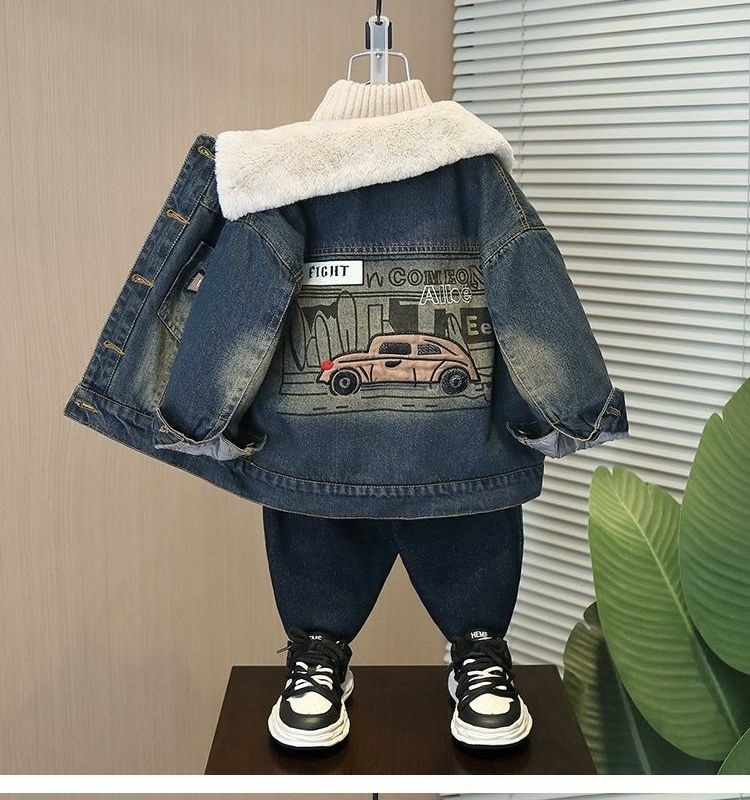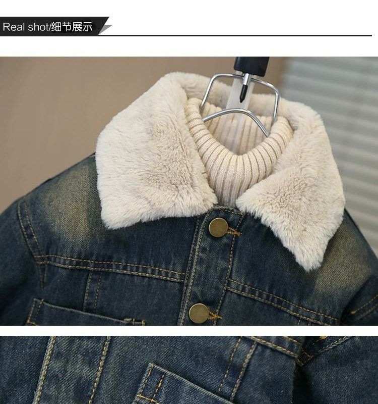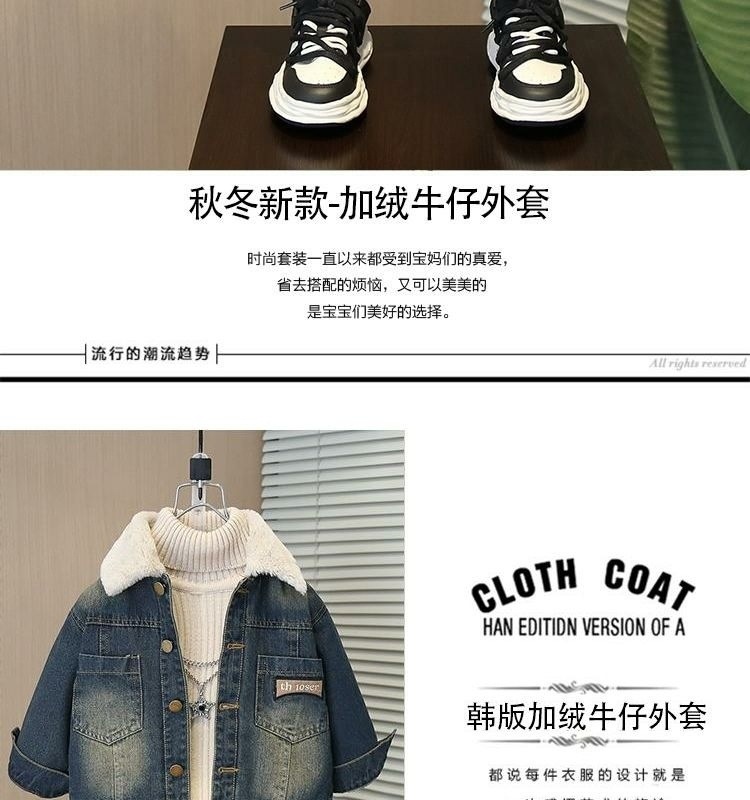 소년 가을 겨울 기모 데님 코트 어린이 재킷 2025 새로운 서양식 아기 두꺼운 겨울 중소형 어린이스토어 가기