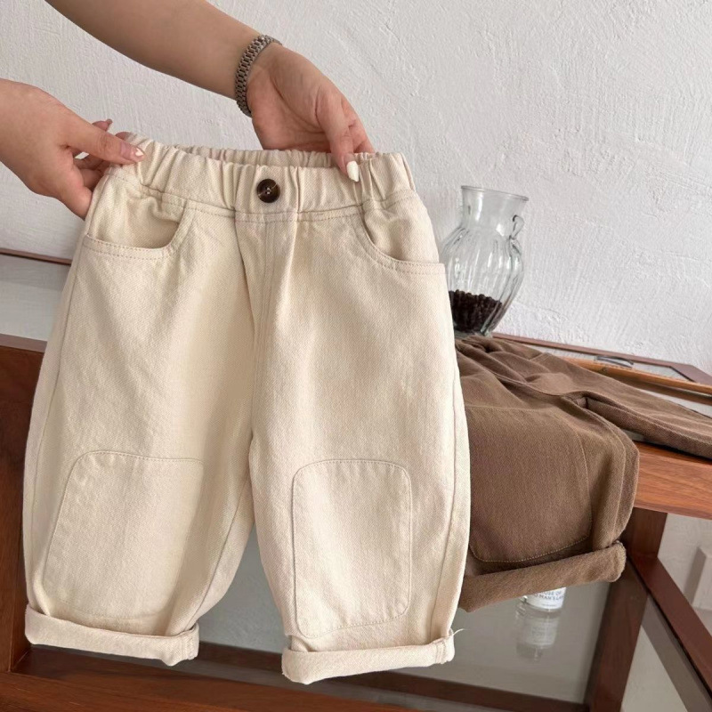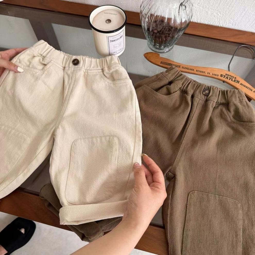 한국 스타일~2025 신상 아동 가을 바지 순면 유아 바지 어린이 작업복
