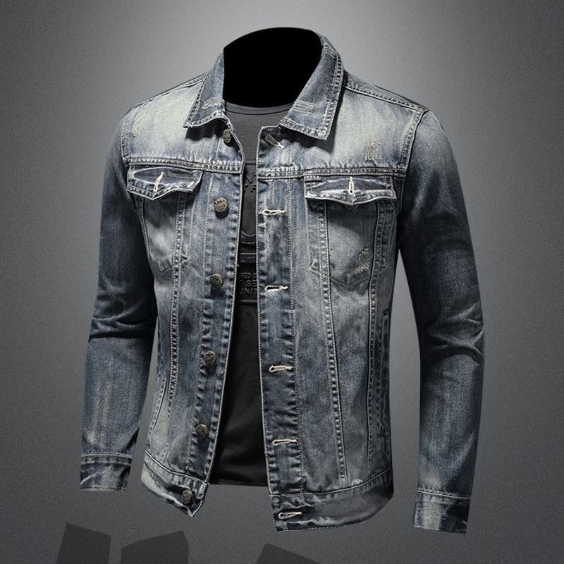 • 레트로 블루 고품질 대형 자수 데님 재킷