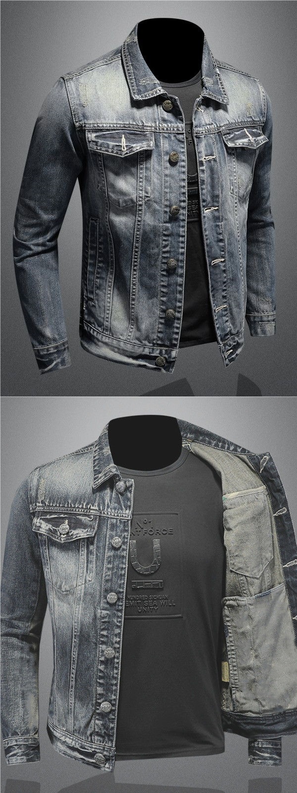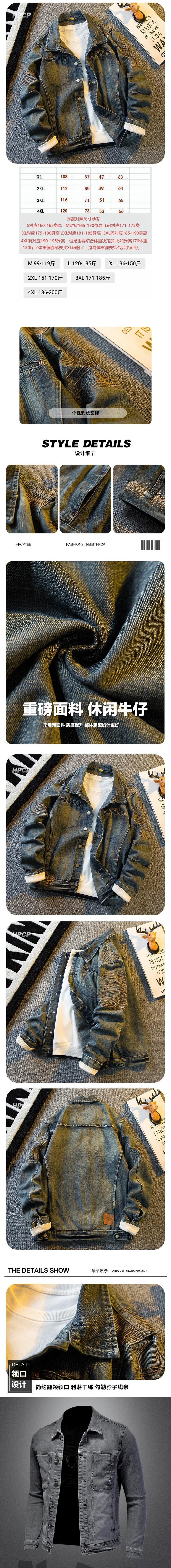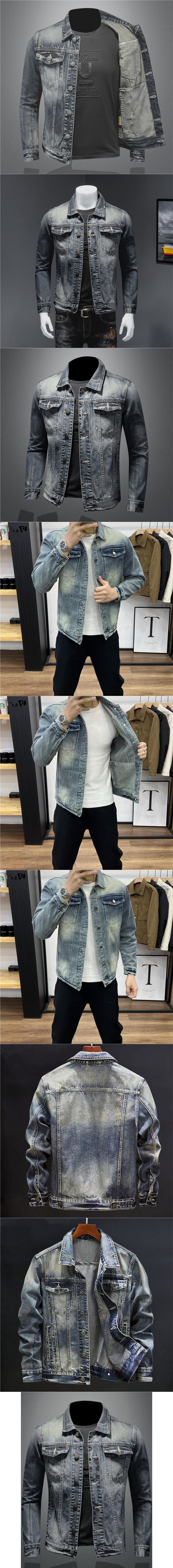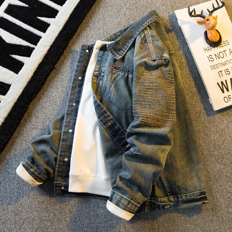 크로스 스타일 유행 미국 스타일 짧은 오토바이 옷깃 데님 재킷 남성 봄과 가을 자수 오래 된 슬림 핏 코트 탑스토어 가기