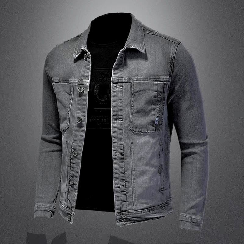 • 블랙 및 그레이 자수 레터 데님 재킷