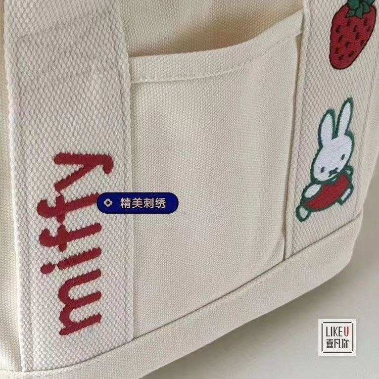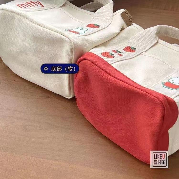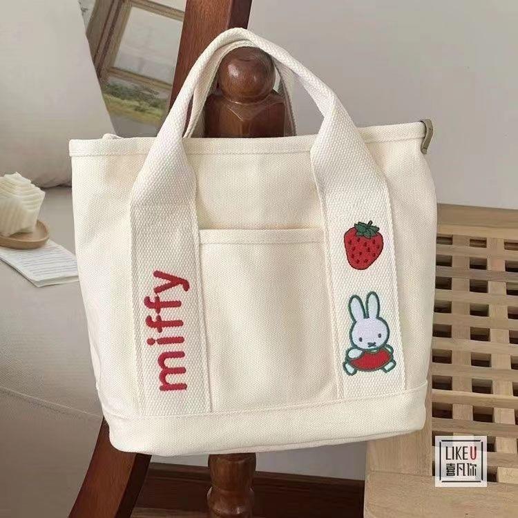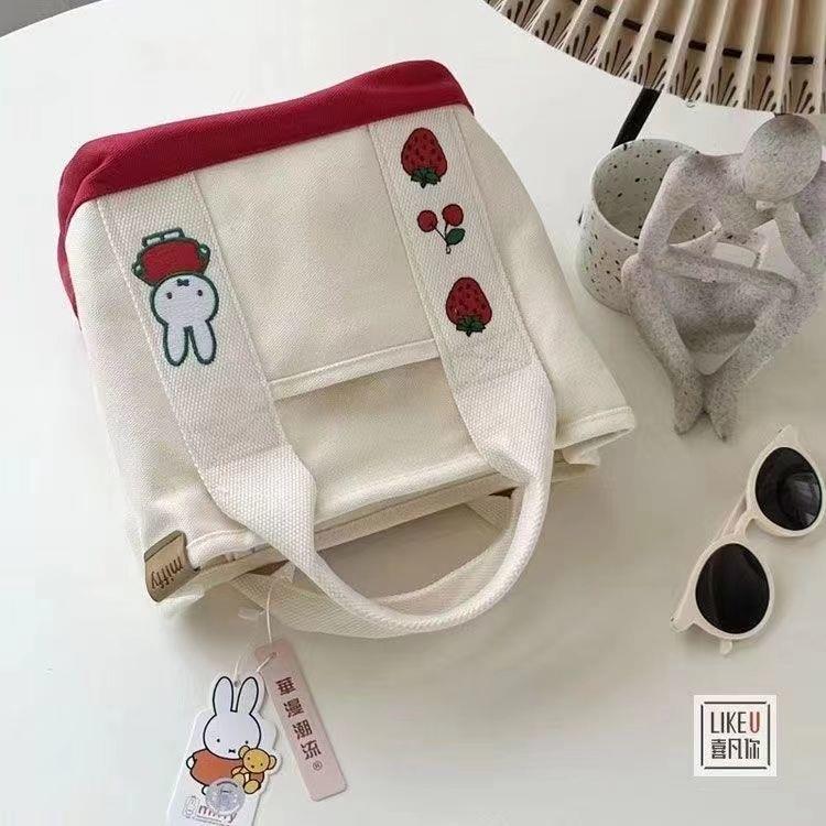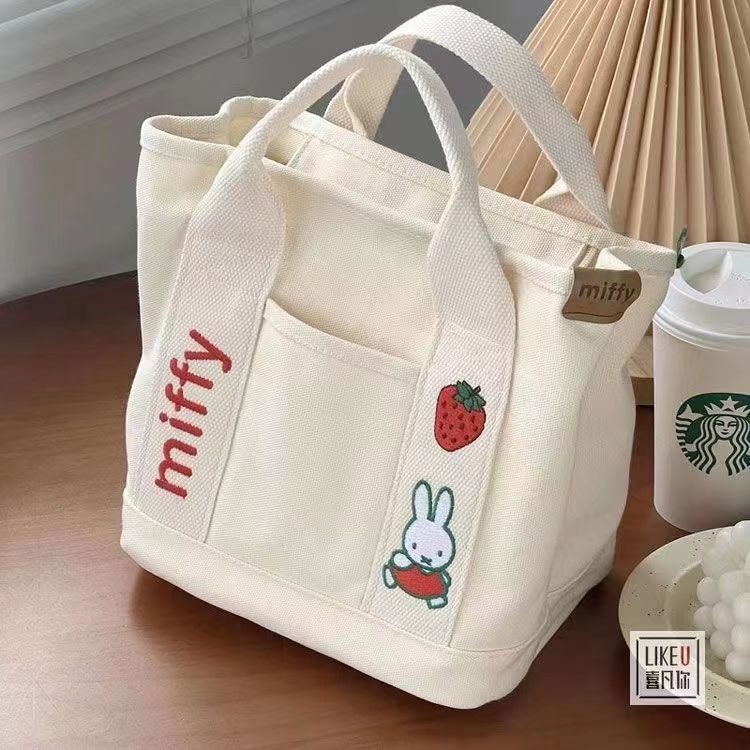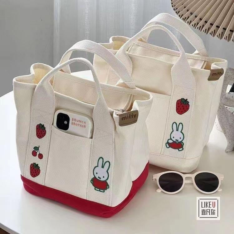 토끼 자수 일본 귀여운 캔버스 가방 바오마의 손 가방 도시락 가방 여성용 사무실 핸드백