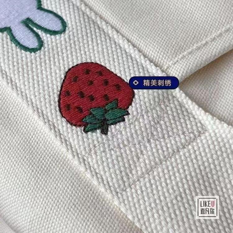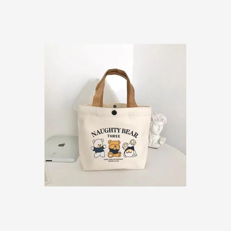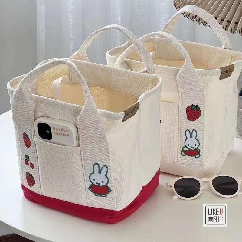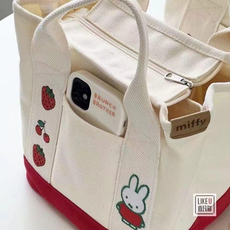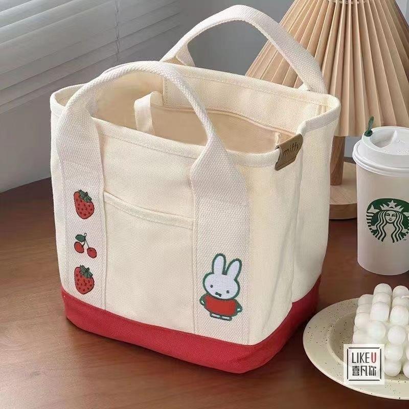 토끼 자수 일본 귀여운 캔버스 가방 바오마의 손 가방 도시락 가방 여성용 사무실 핸드백