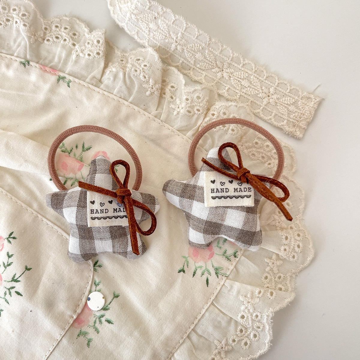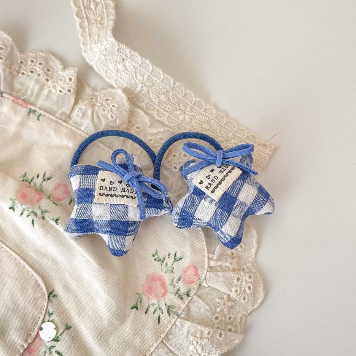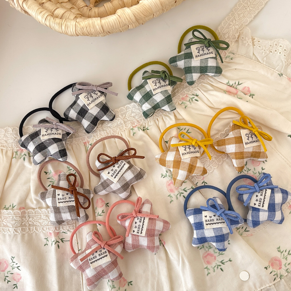 한국 어린이 봄과 여름 격자 무늬 원단 손잡이 넥타이 다섯개 별 어린이 머리 반지 소녀 포니 테일 헤어 로프 헤어 액세서리