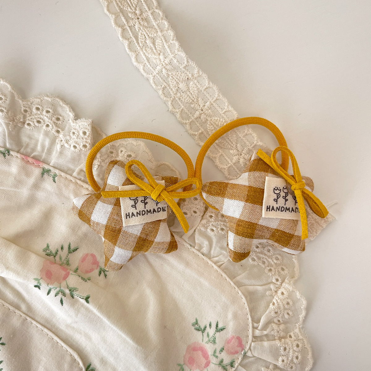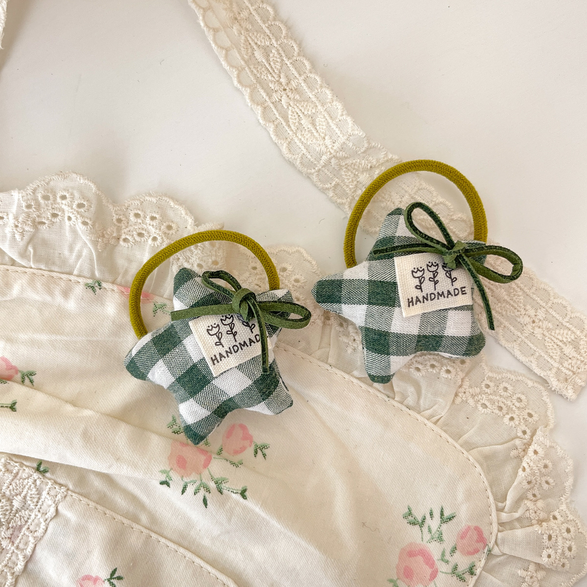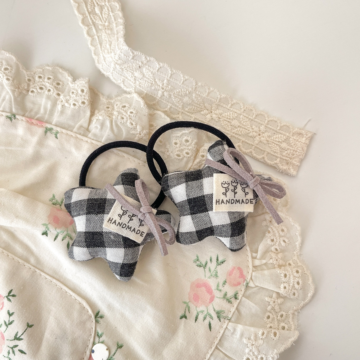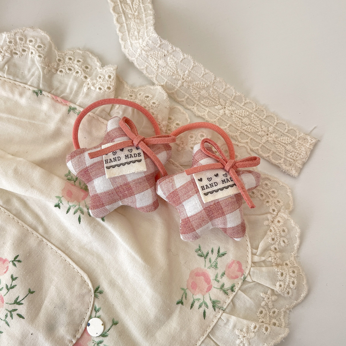 한국 어린이 봄과 여름 격자 무늬 원단 손잡이 넥타이 다섯개 별 어린이 머리 반지 소녀 포니 테일 헤어 로프 헤어 액세서리