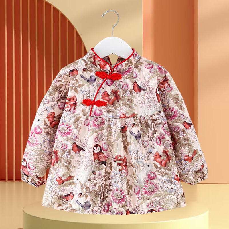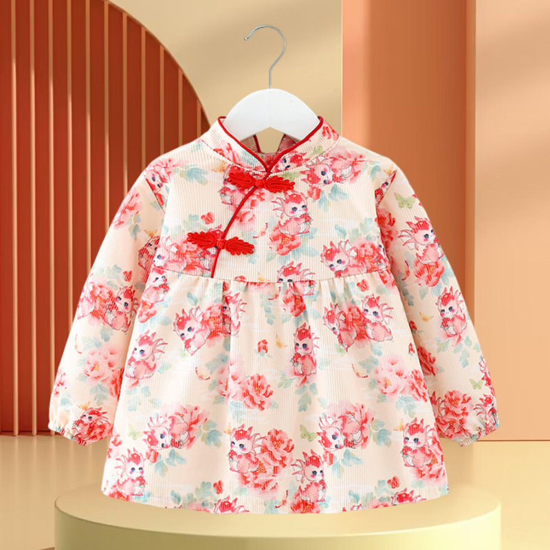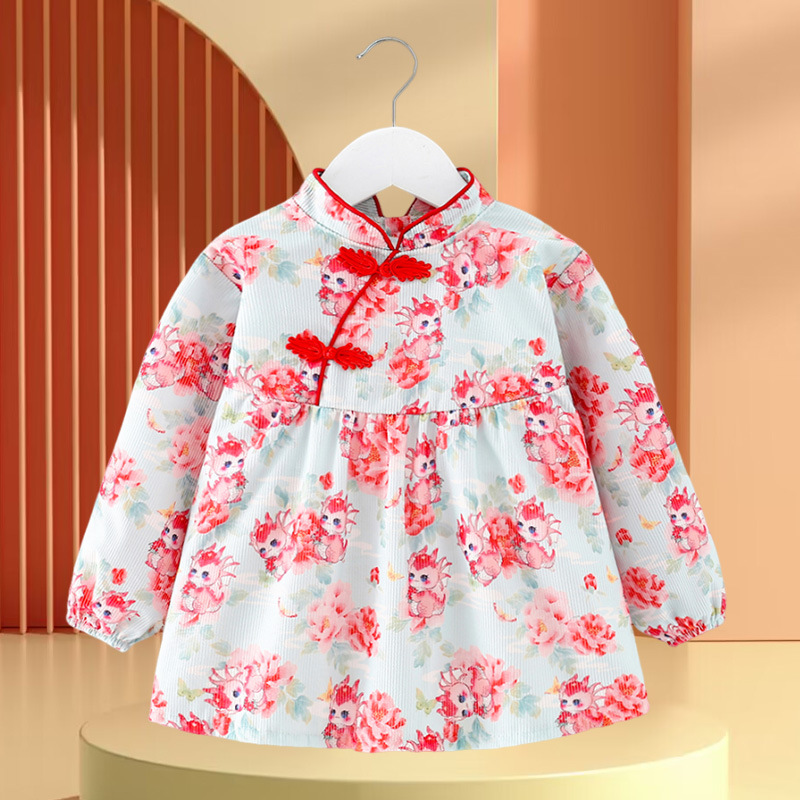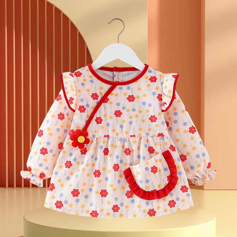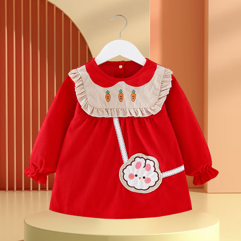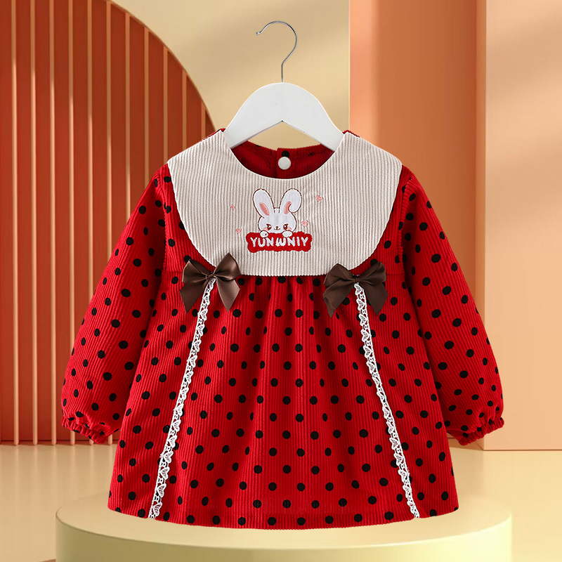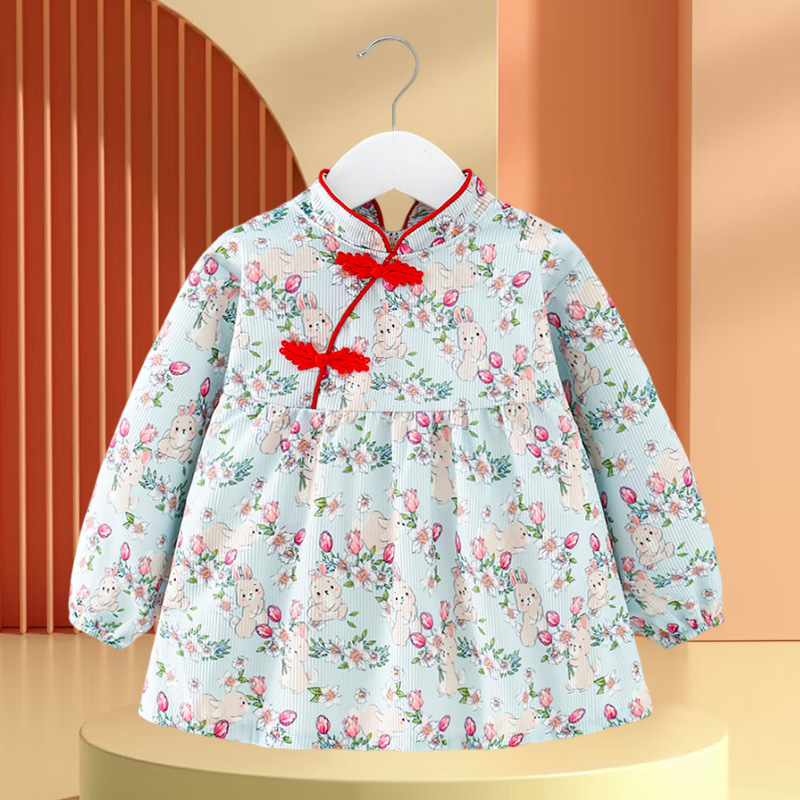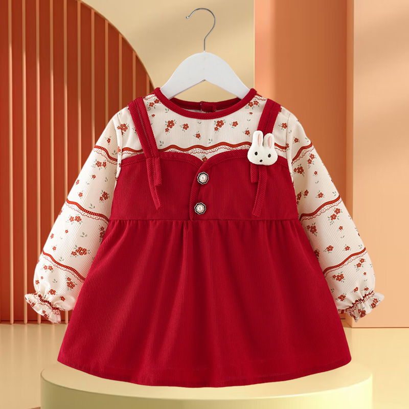 • 빨간색과 녹색 토끼 꽃무늬 스커트