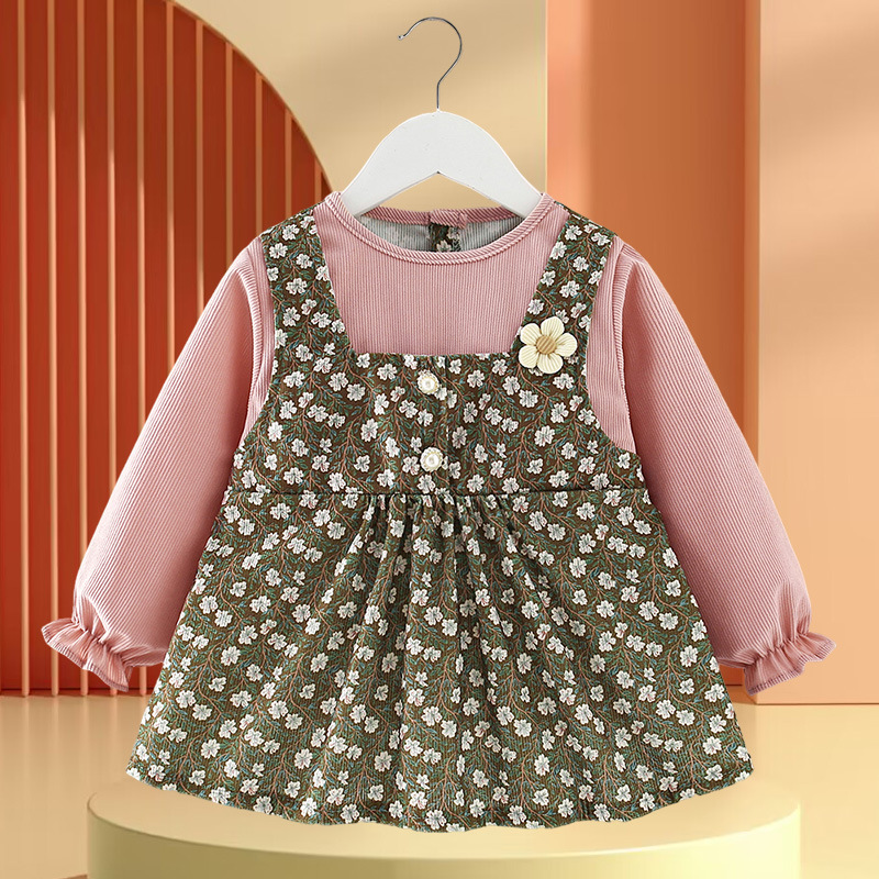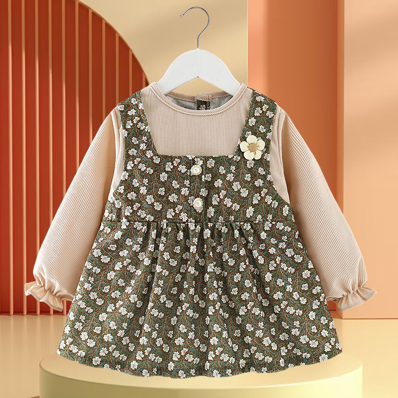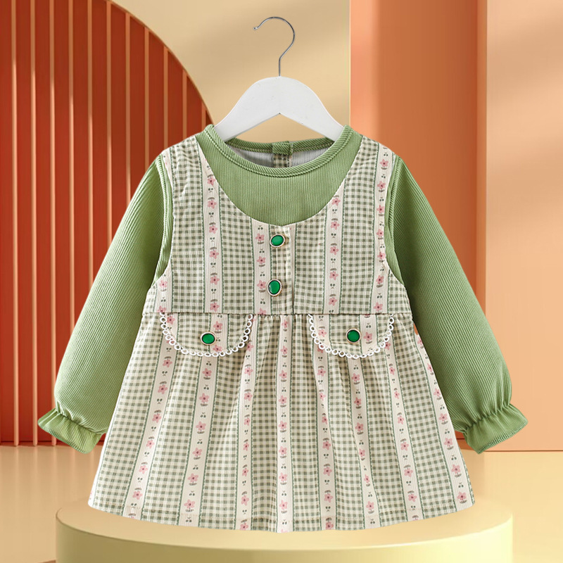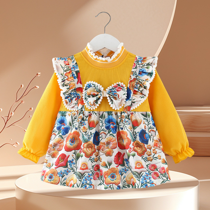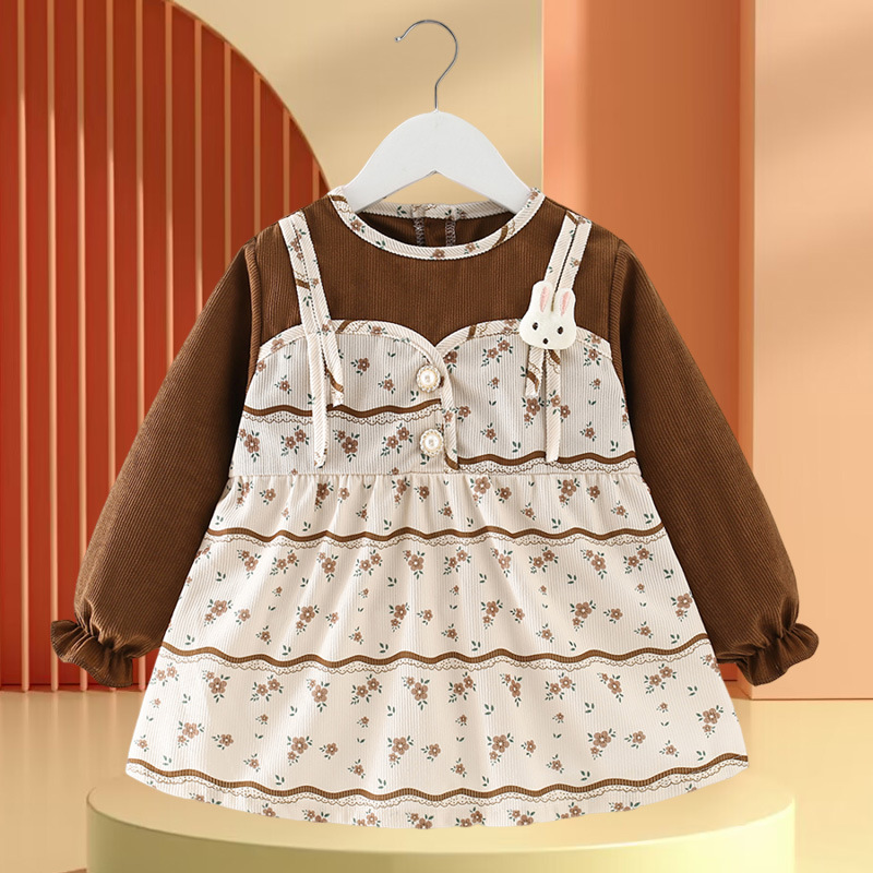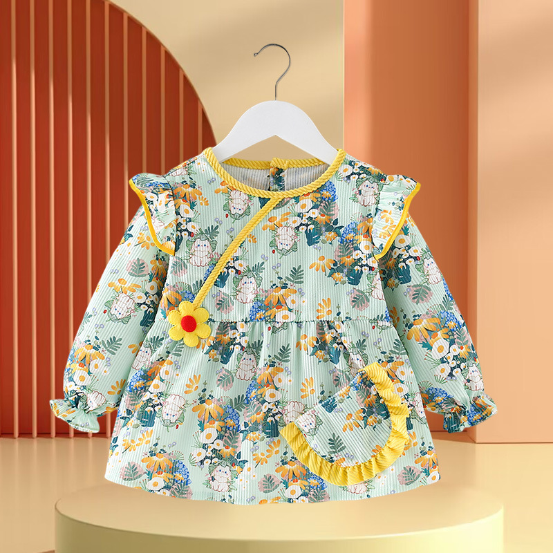 • 노란색과 녹색 토끼 꽃무늬 스커트