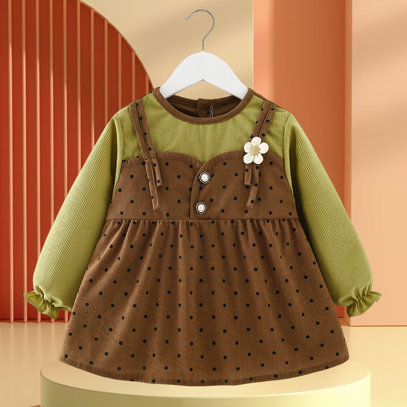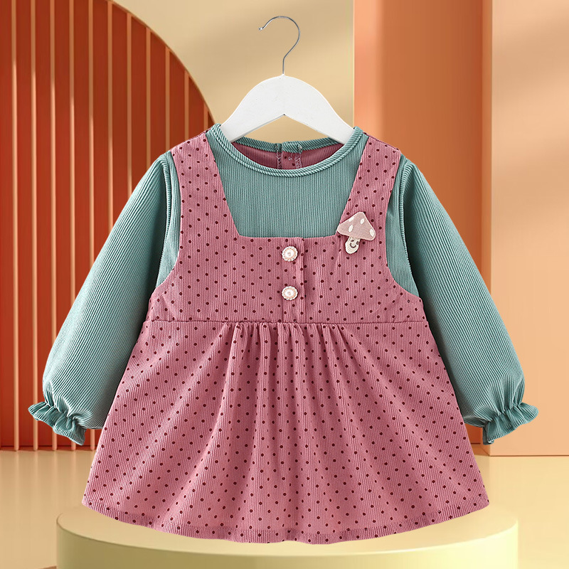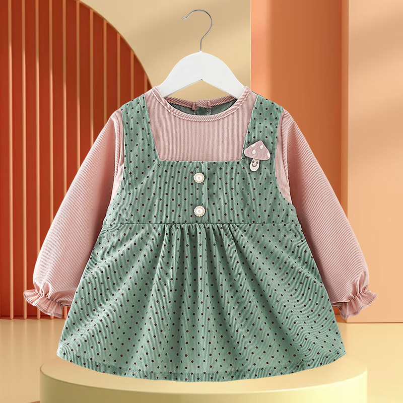 • 폴카 도트 버섯 긴 소매 핑크와 그린