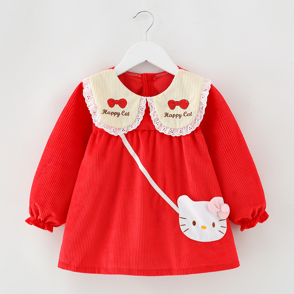 • 스트라이프 해피 야옹 스커트 레드