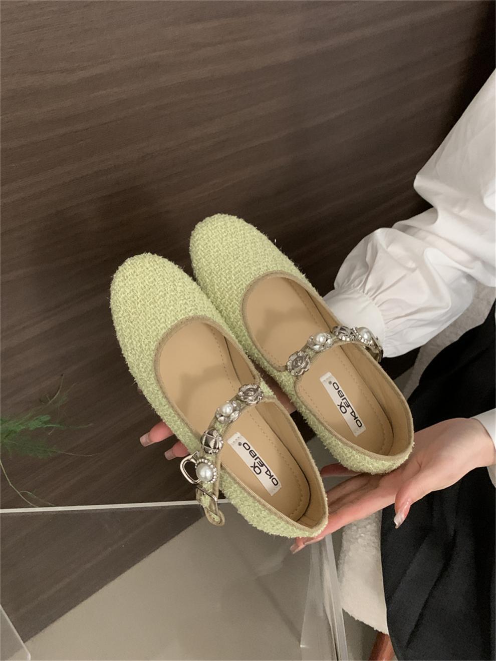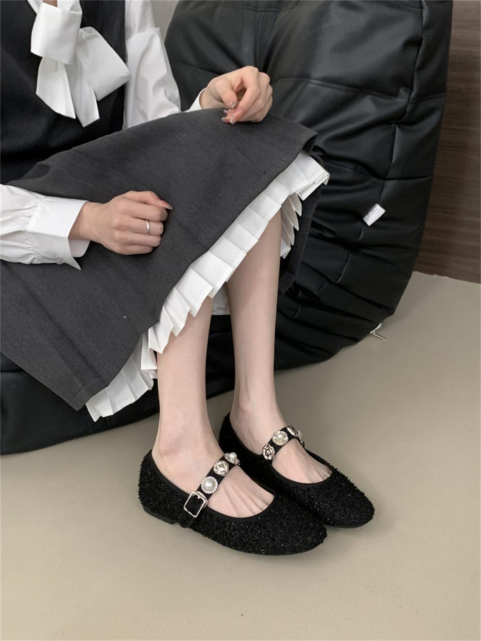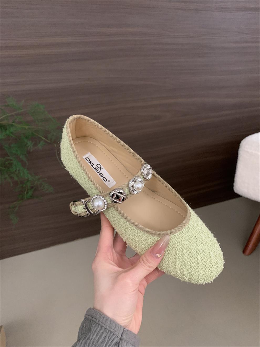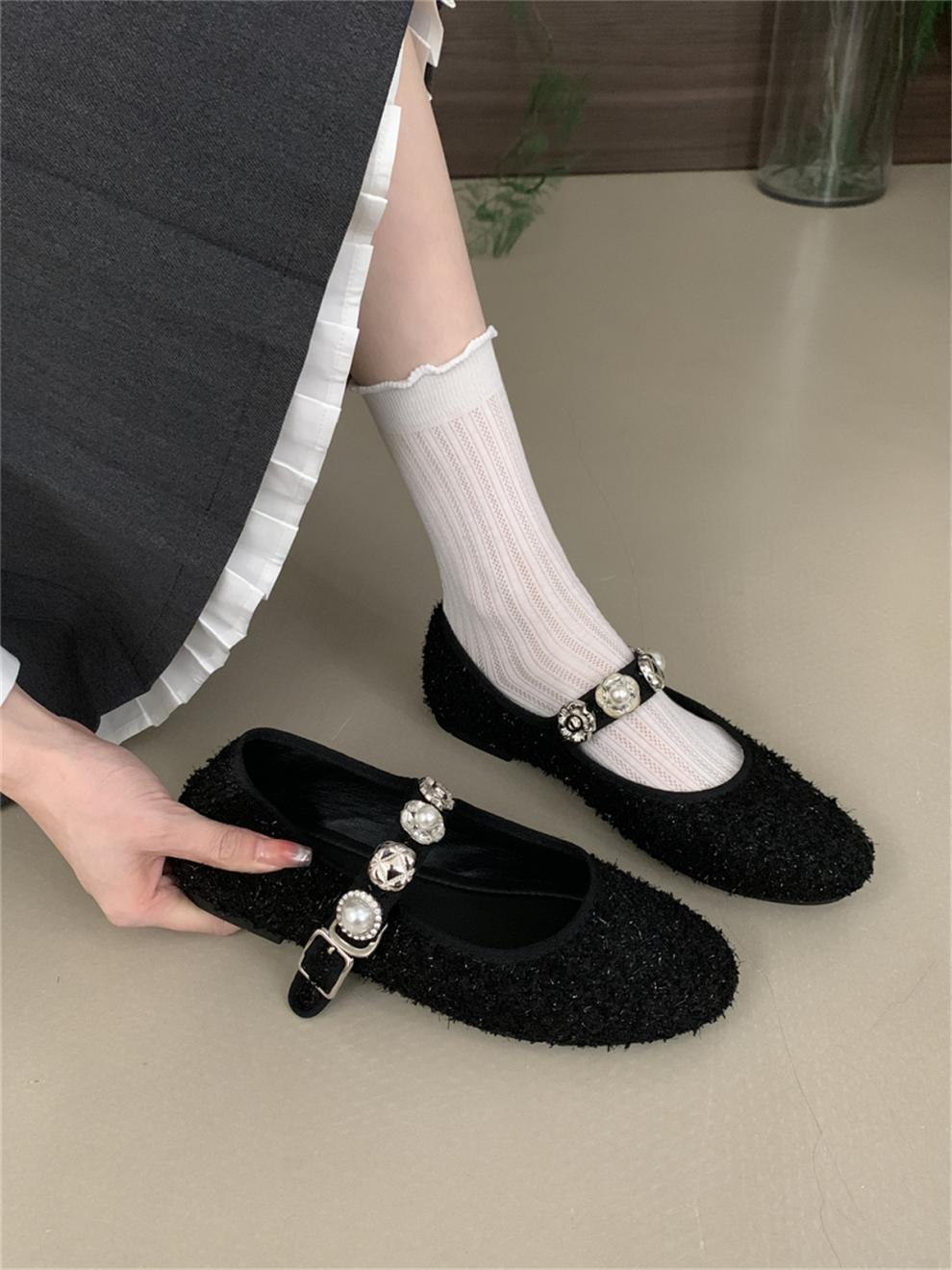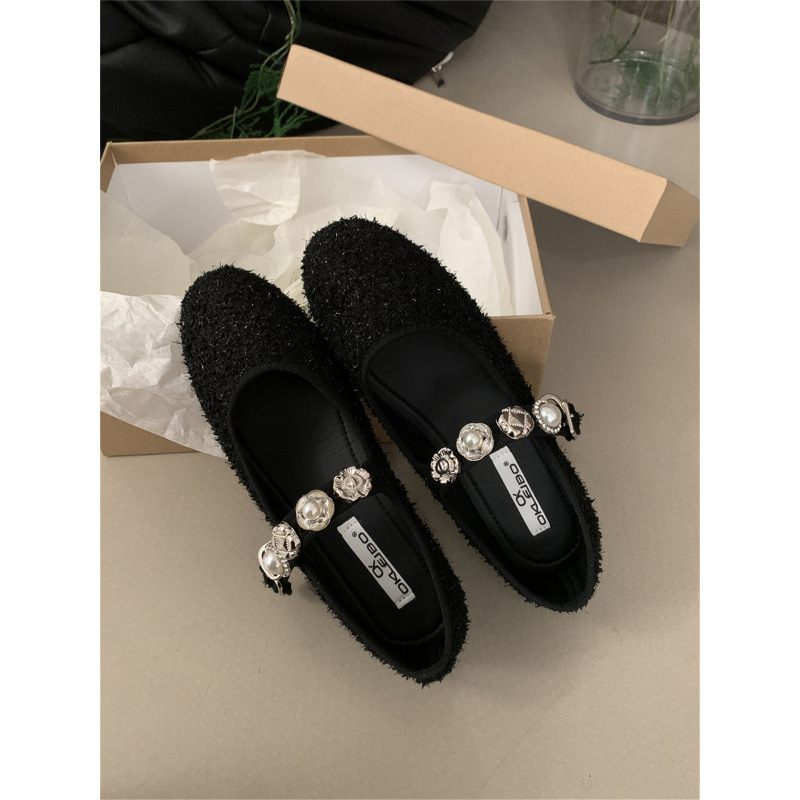 트위드 샤넬 스타일 얕은 입 신발 플랫 메탈 버클 여성 레트로 홍콩 스타일 여성의 2025 년 초 봄 새 스타일 편안한스토어 가기