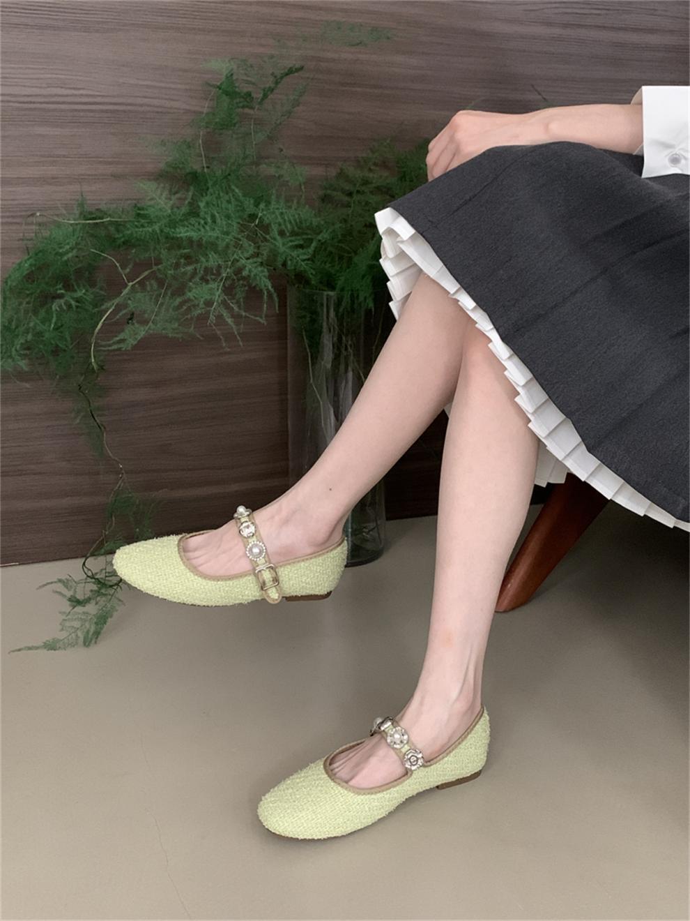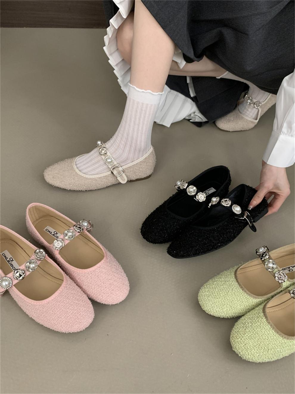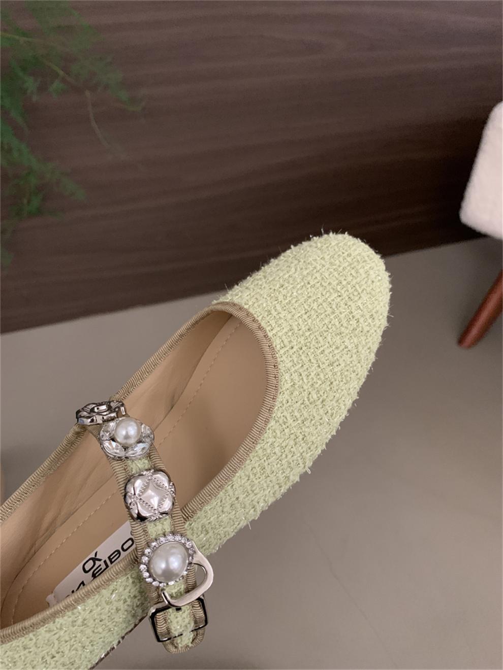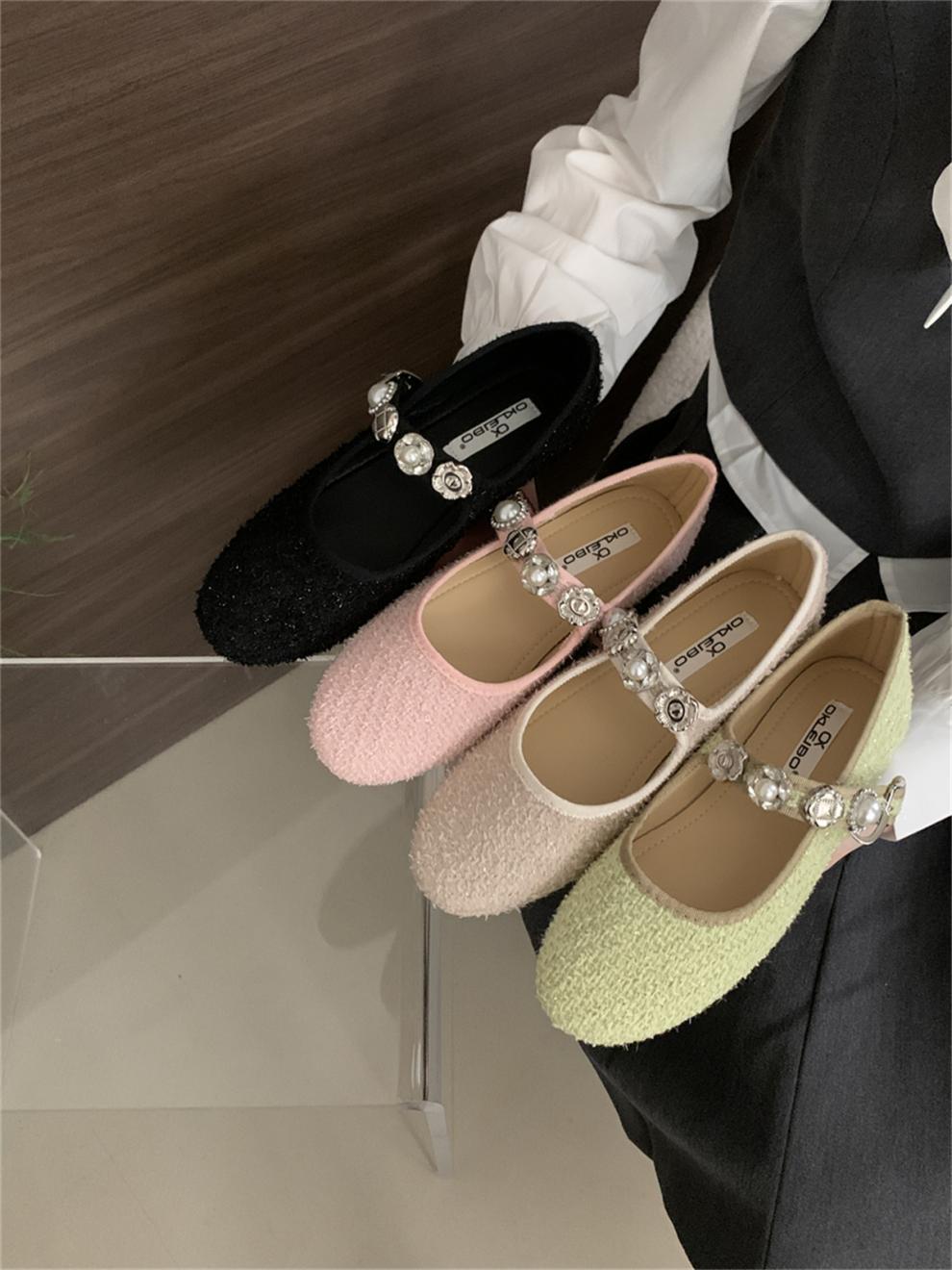 트위드 샤넬 스타일 얕은 입 신발 플랫 메탈 버클 여성 레트로 홍콩 스타일 여성의 2025 년 초 봄 새 스타일 편안한스토어 가기