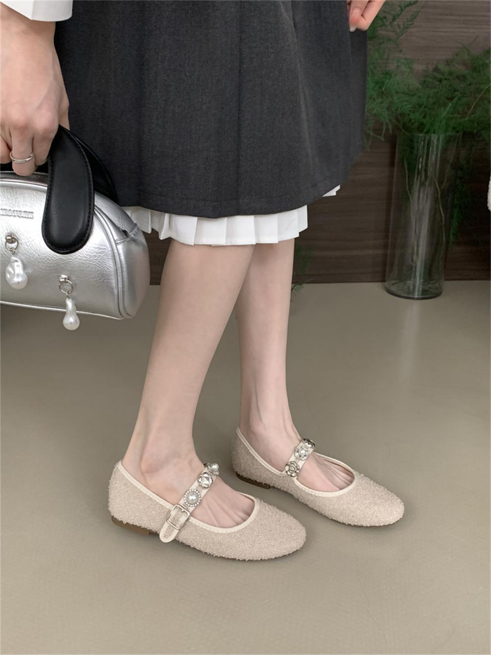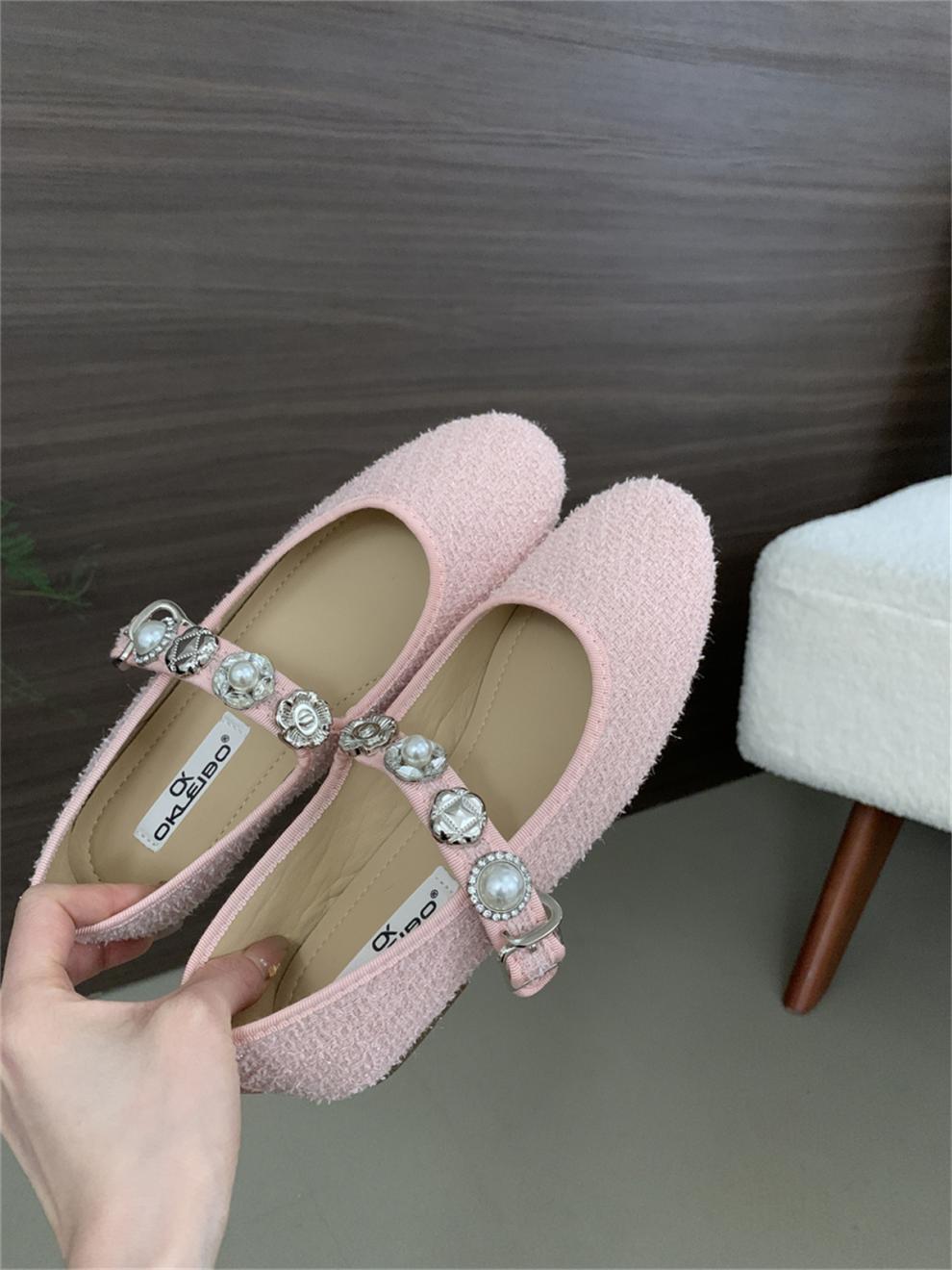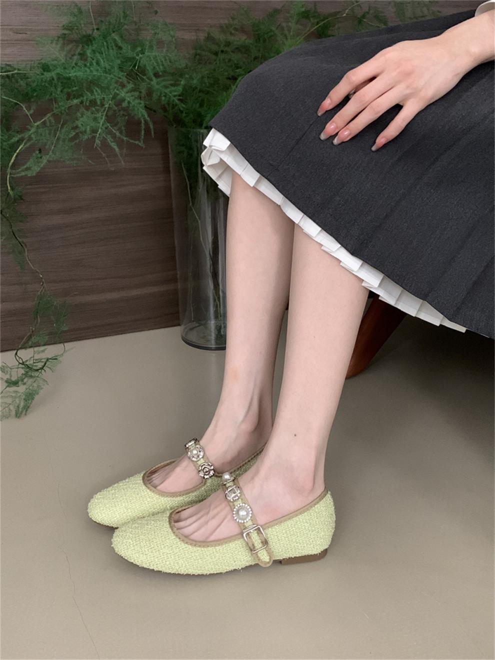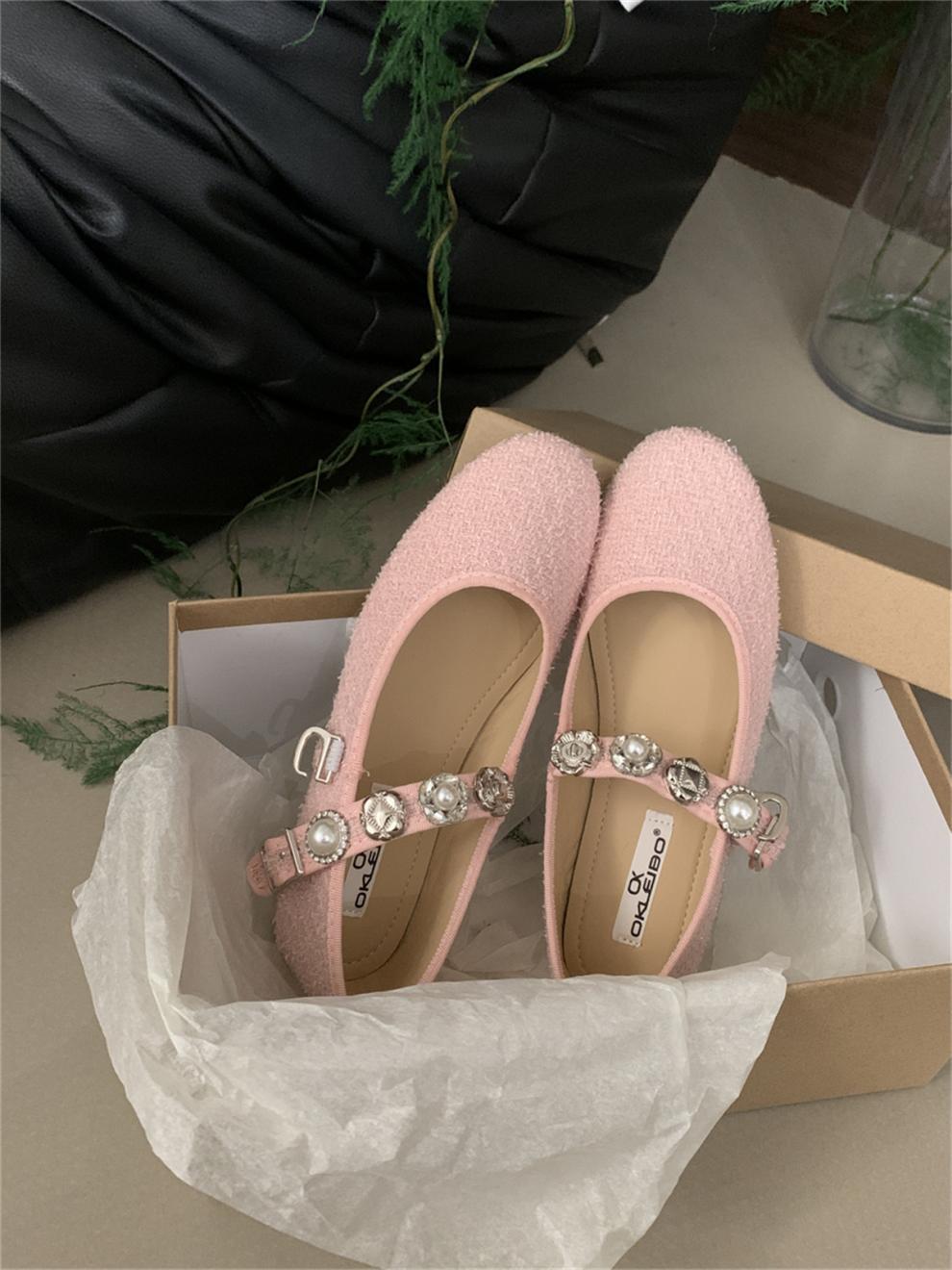 트위드 샤넬 스타일 얕은 입 신발 플랫 메탈 버클 여성 레트로 홍콩 스타일 여성의 2025 년 초 봄 새 스타일 편안한스토어 가기