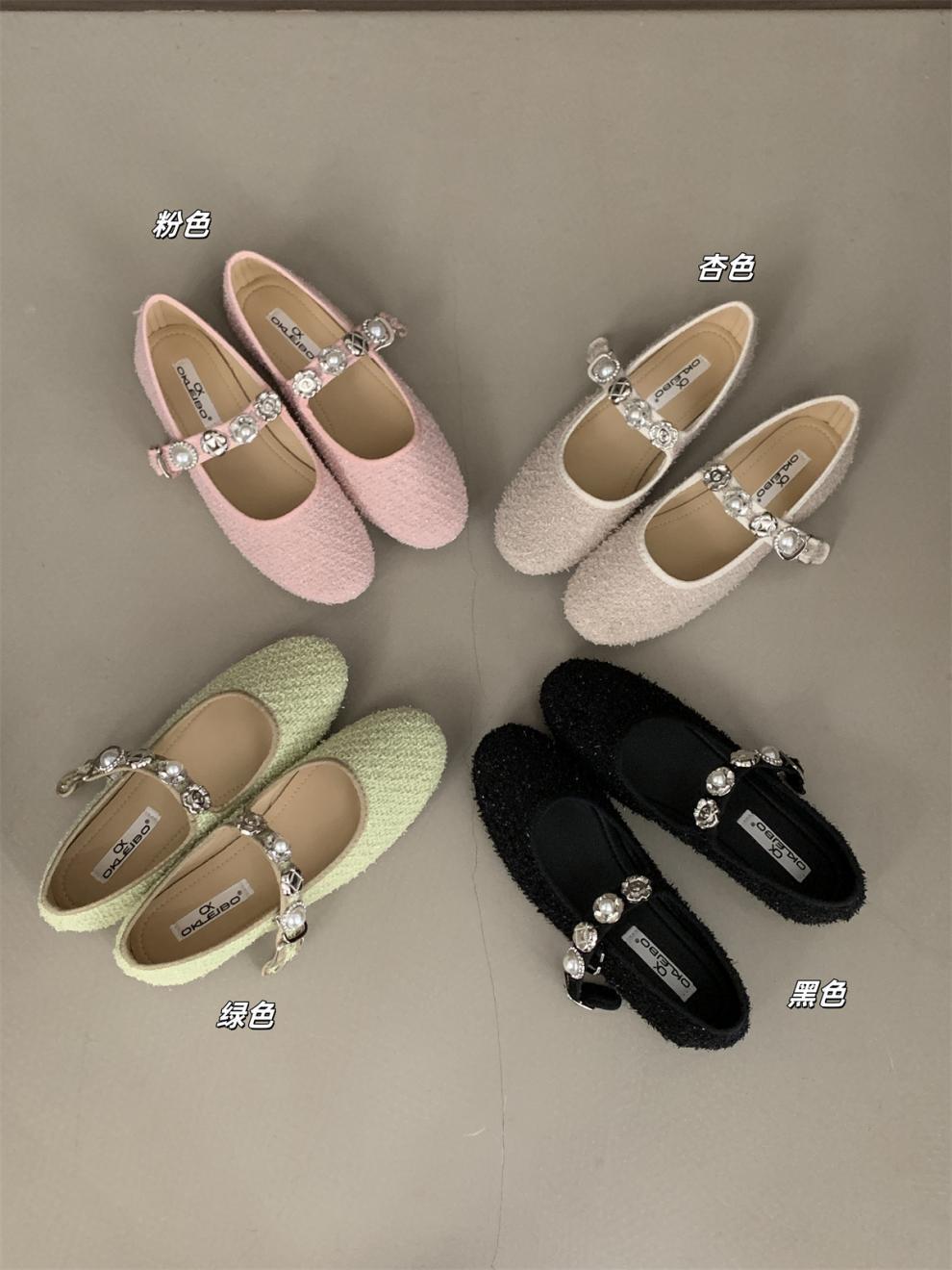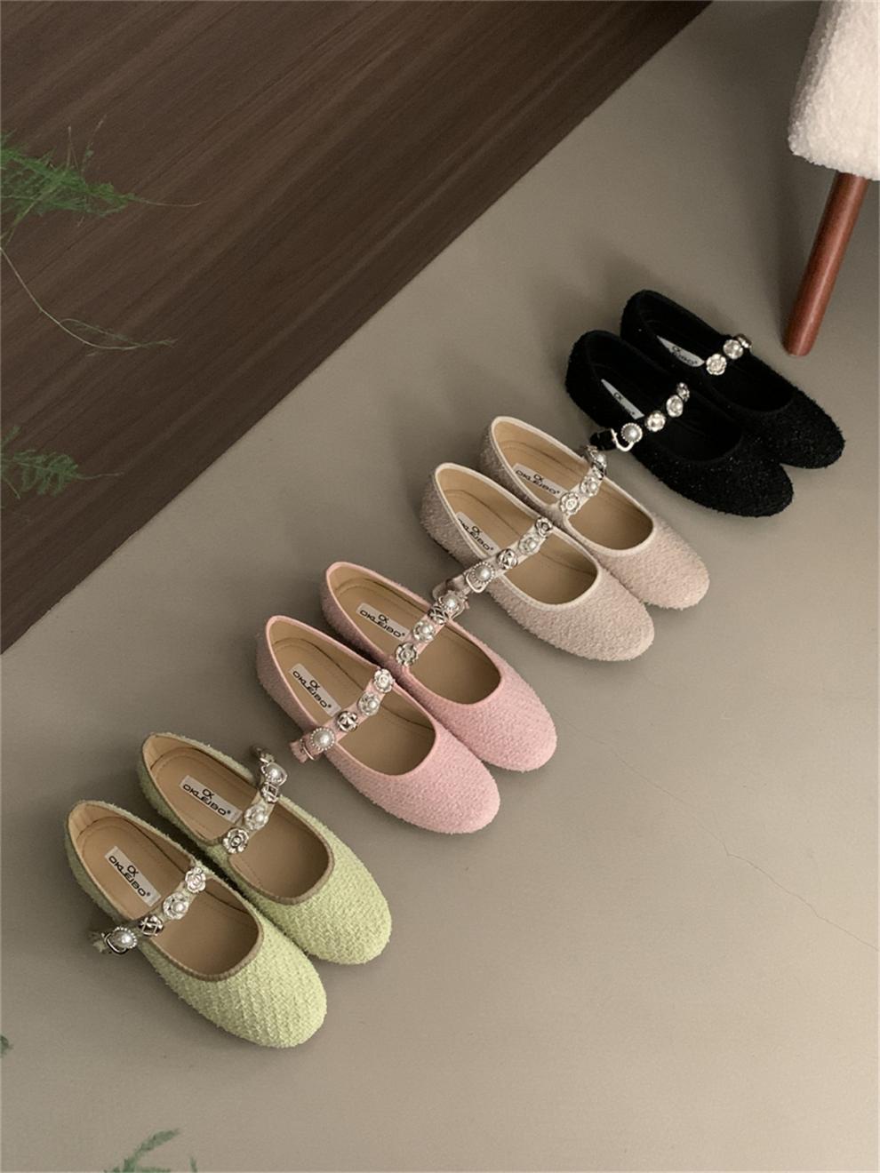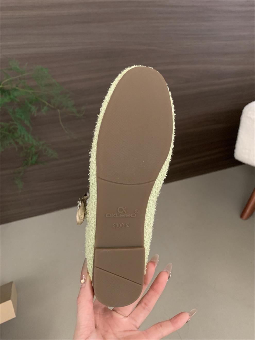 트위드 샤넬 스타일 얕은 입 신발 플랫 메탈 버클 여성 레트로 홍콩 스타일 여성의 2025 년 초 봄 새 스타일 편안한
