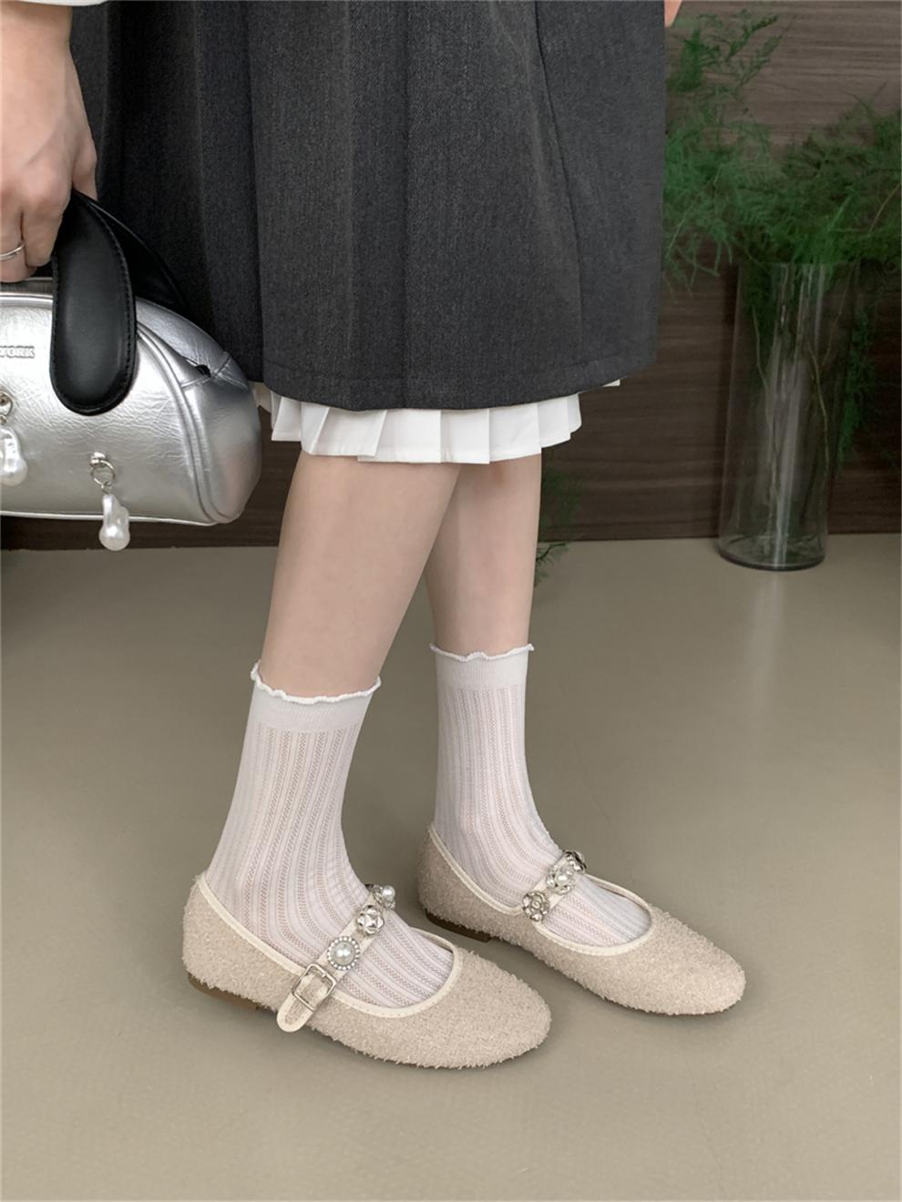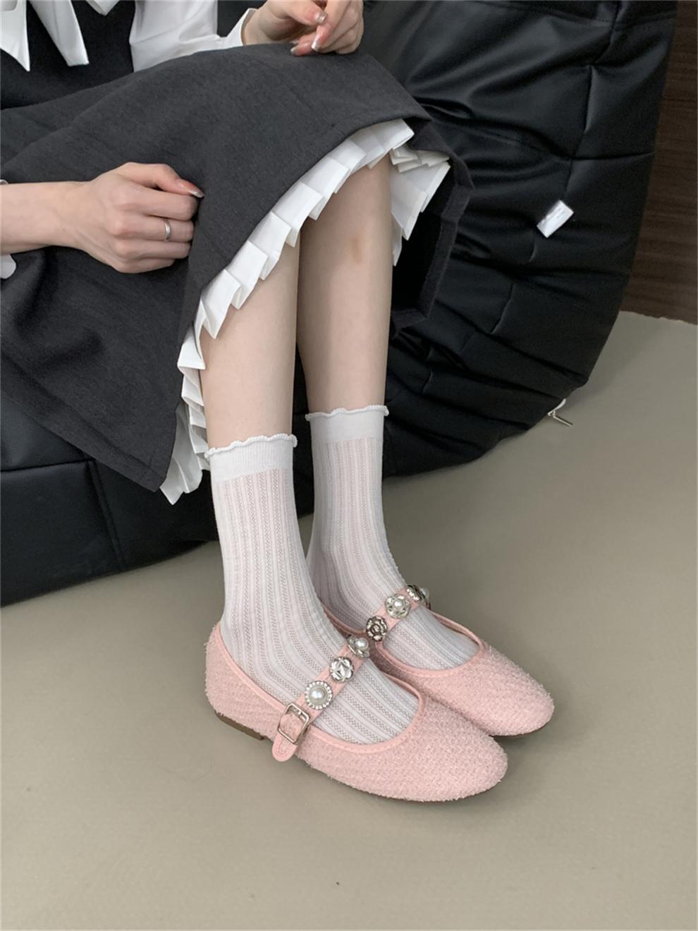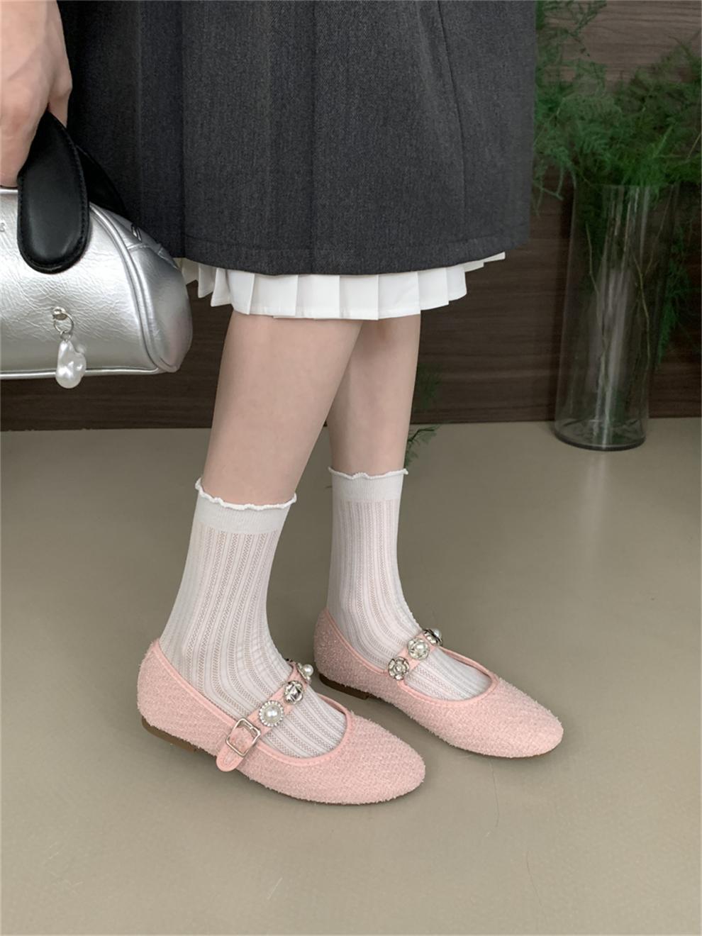 트위드 샤넬 스타일 얕은 입 신발 플랫 메탈 버클 여성 레트로 홍콩 스타일 여성의 2025 년 초 봄 새 스타일 편안한