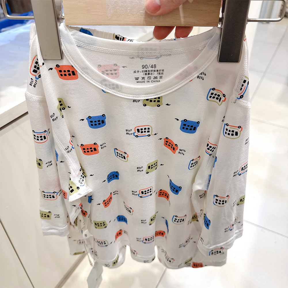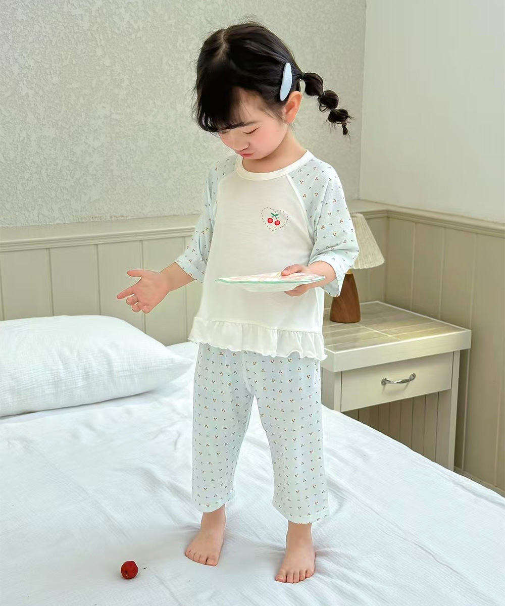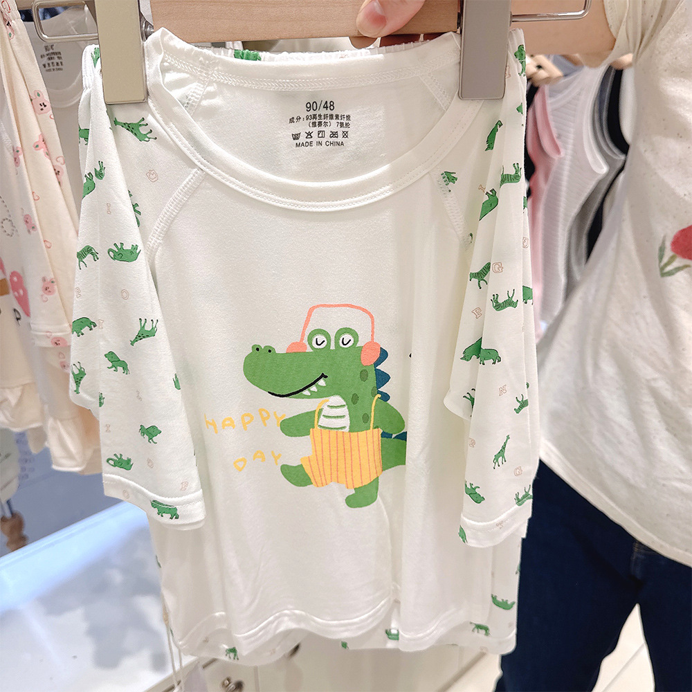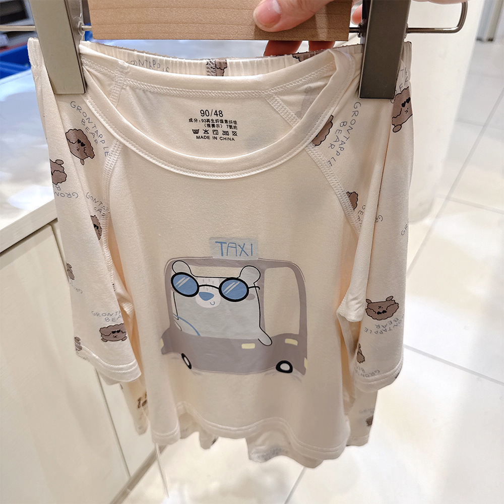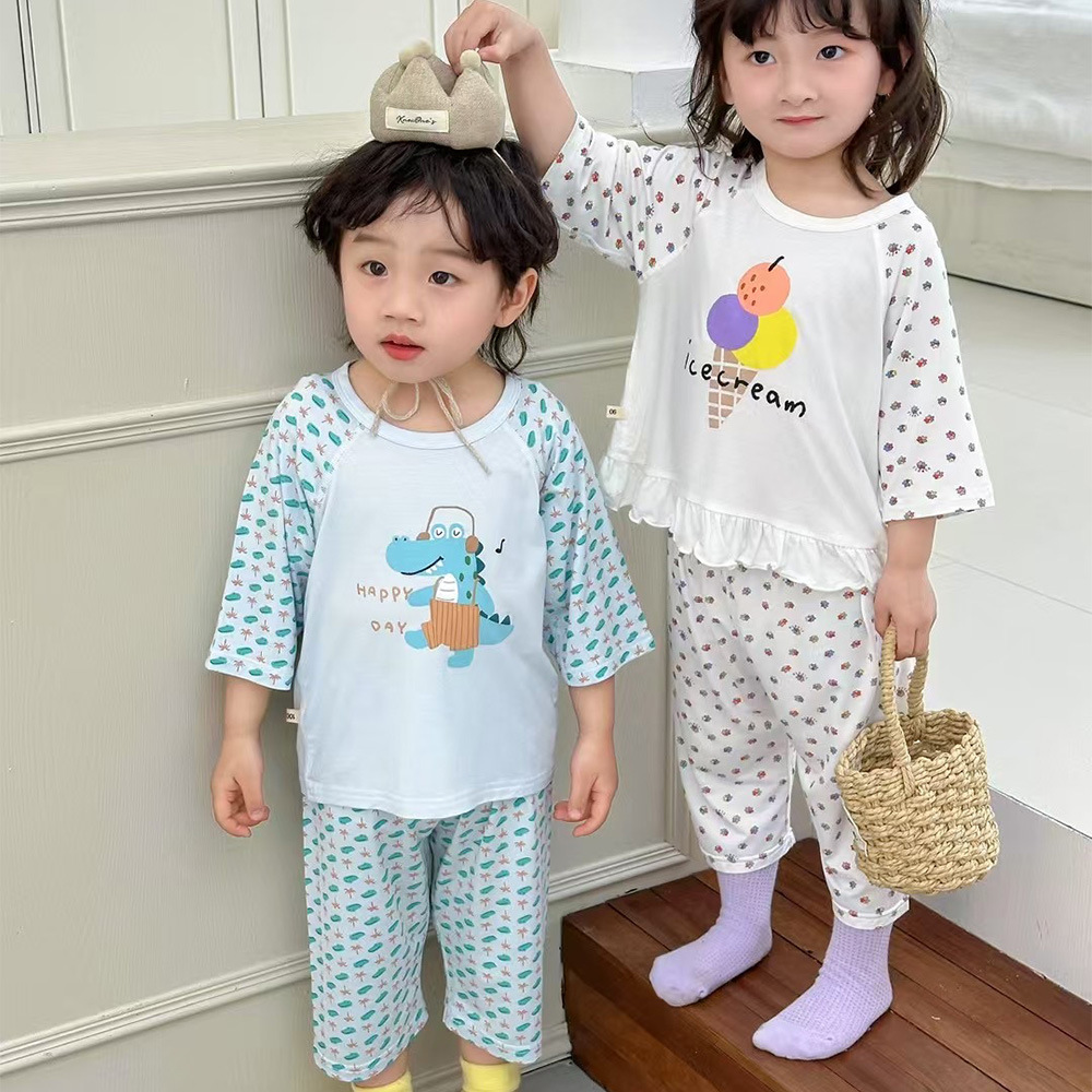 여름 어린이 잠옷 투피스 세트 중년 아기 쿨 모달 소년 소녀를위한 7 소매 세트 에어컨 옷스토어 가기