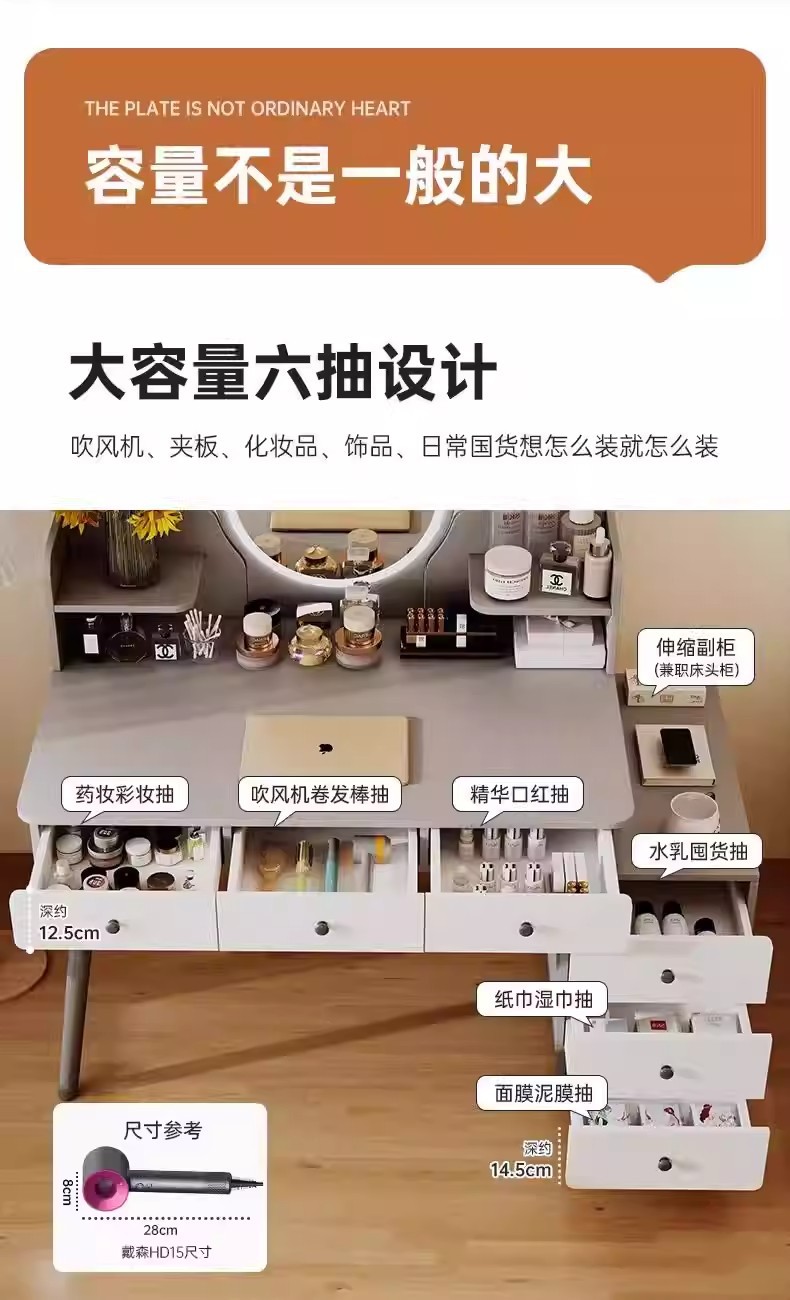 드레서 침실 간단한 현대 화장품 캐비닛 2024 새로운 작은 저장 캐비닛 통합 데스크 메이크업 테이블