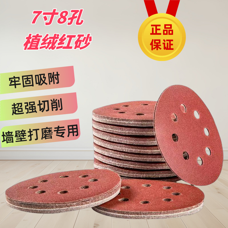 7 인치 8 홀 무리는 둥근 솔질 조각 둥근 붉은 모래 다시 벨벳 사포 닦는 벽 사포 붉은 모래