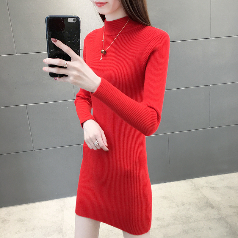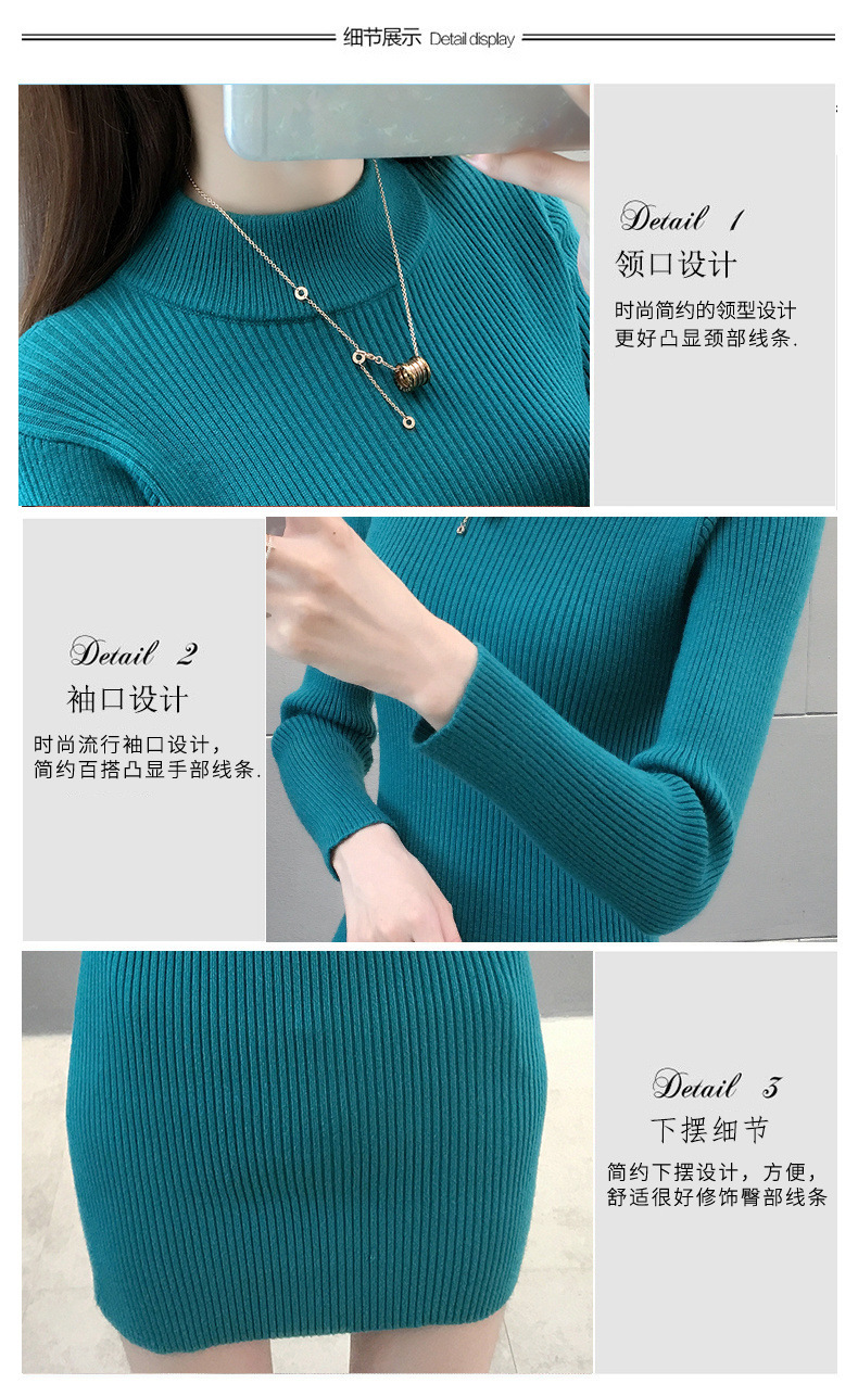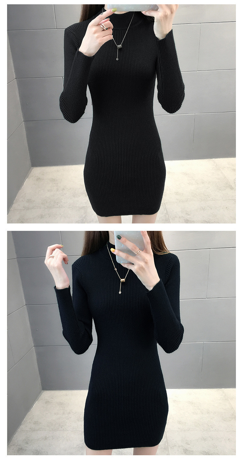 스웨터 여성의 새로운 중간 길이 블랙 하프 터틀넥 베이스 셔츠 여성의 가을과 겨울 두꺼운 서양식 슬림 핏 스웨터