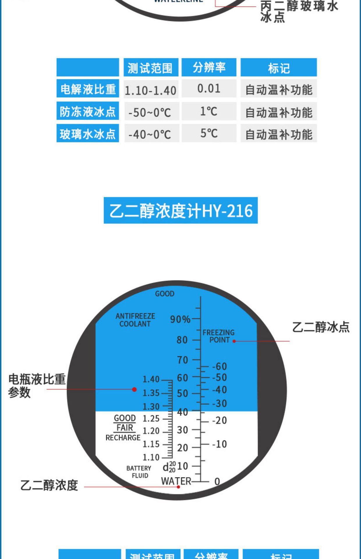 • HY216 글리콜 어는점/농도 [다기능 버전] 알루미늄 코어