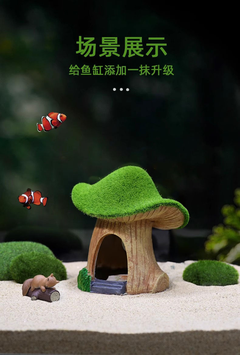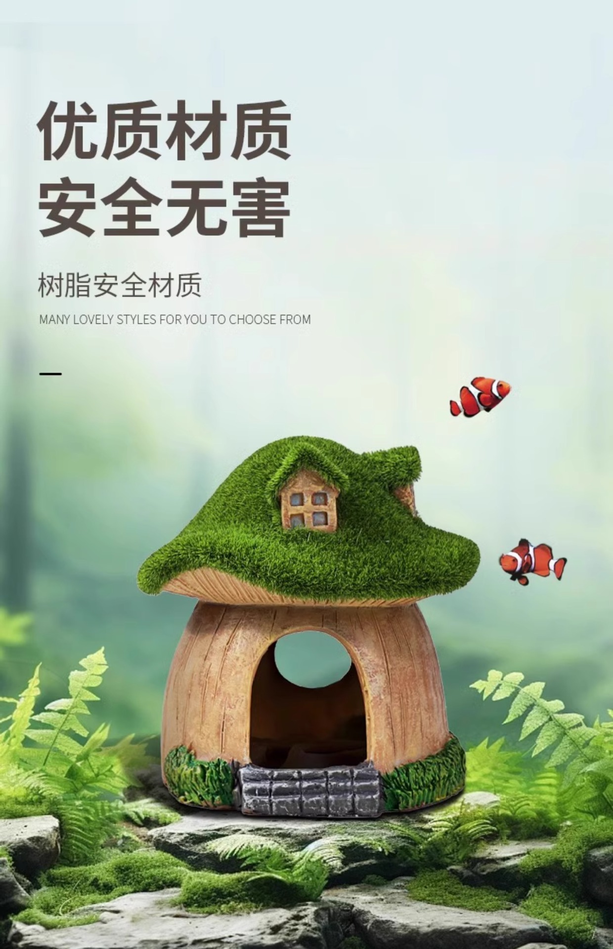 물고기 탱크 풍경 장식 모스 버섯 작은 집 만화 수지 작은 장식품 물고기와 새우 탈출 집 바위