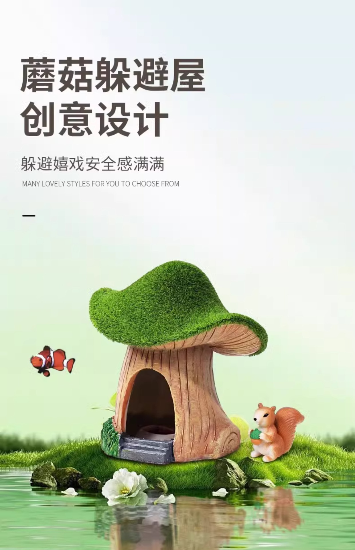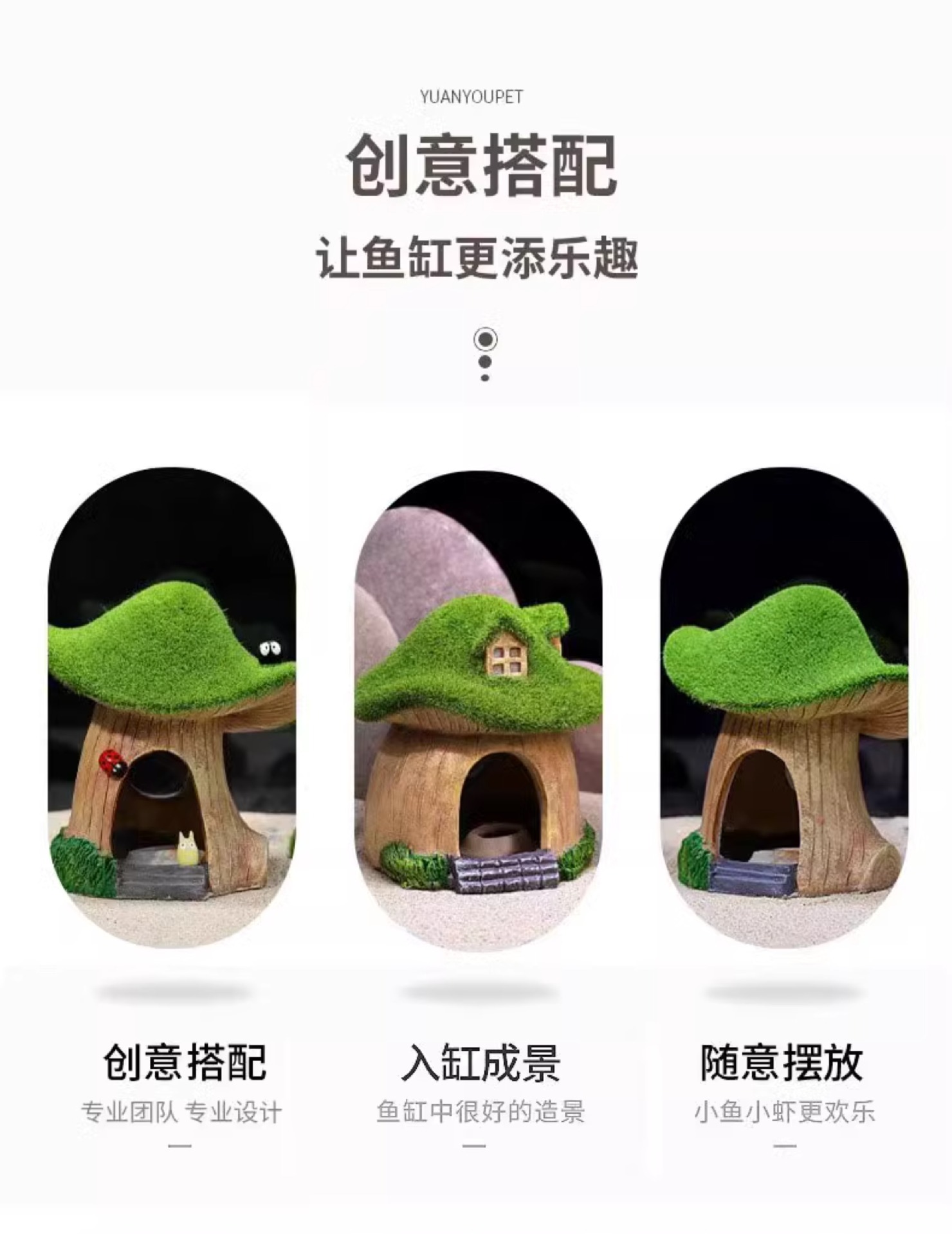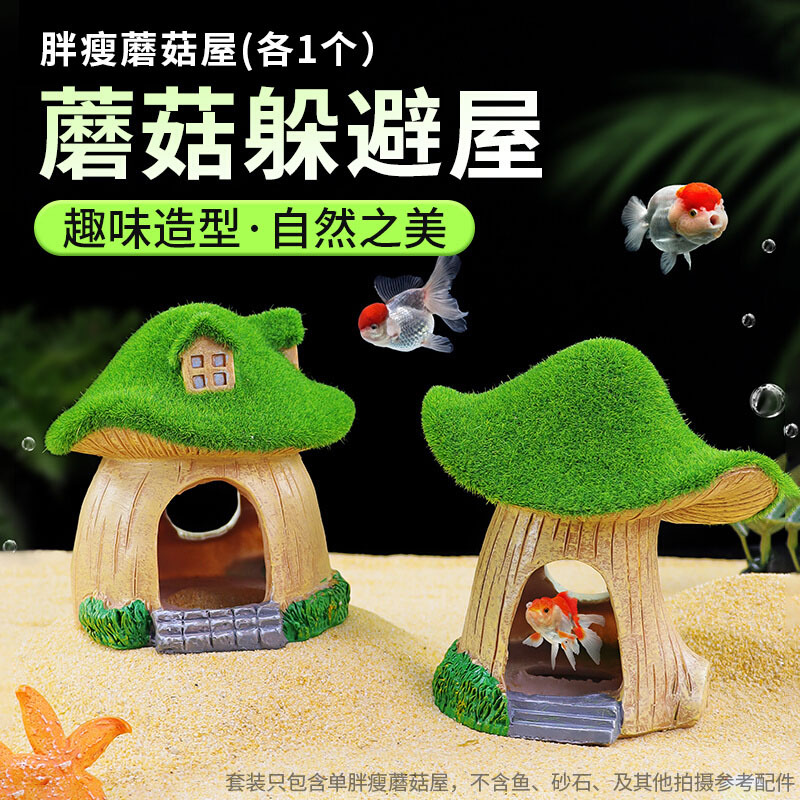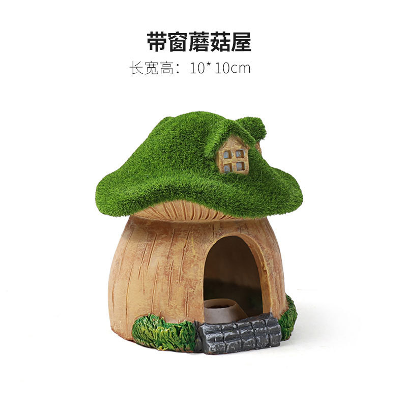 물고기 탱크 풍경 장식 모스 버섯 작은 집 만화 수지 작은 장식품 물고기와 새우 탈출 집 바위스토어 가기