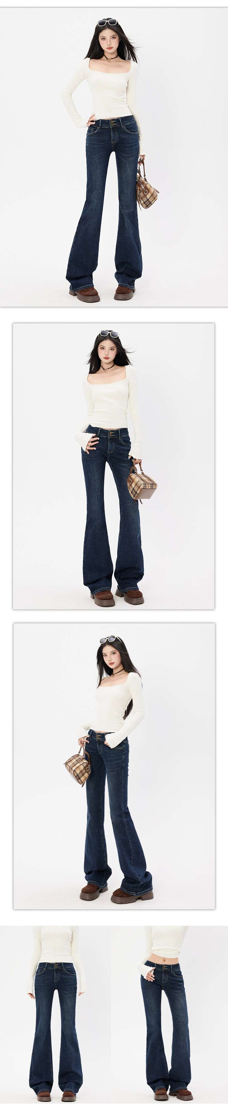 무료 배송 기모 아메리칸 스타일 레트로 핫 소녀 낮은 허리 슬립 바닥 청바지 여성용 플레어 바지 작은 긴 머리스토어 가기