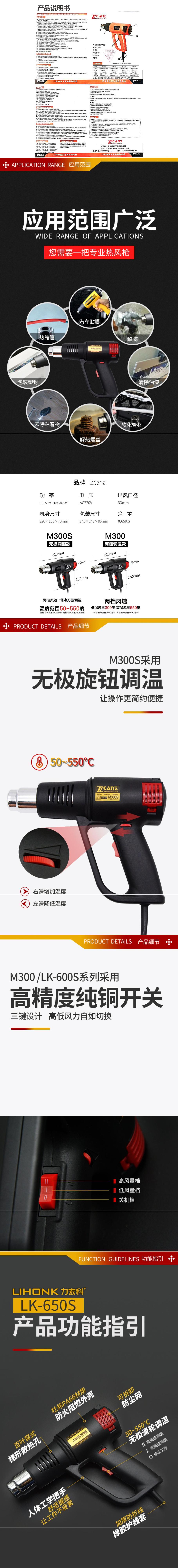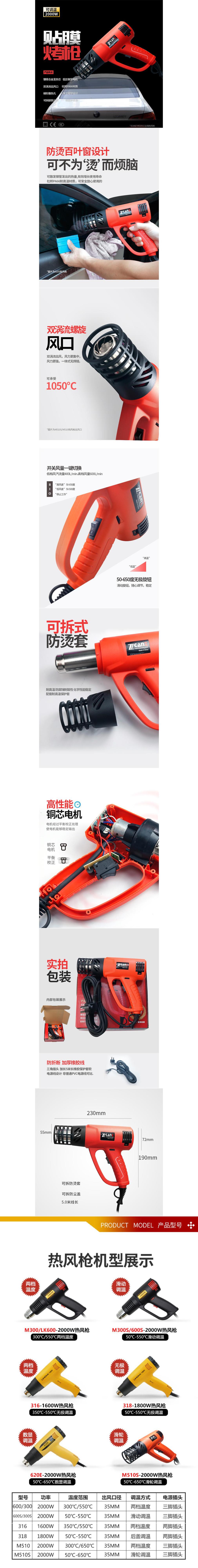 • 연장 코드 5m (화상 방지 커버/에어 노즐 4개 포함) 50-650 ° C 온도 조절 가능 M510S