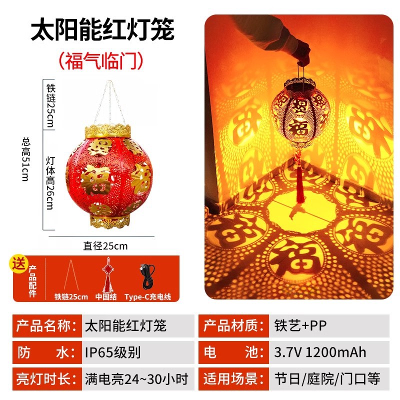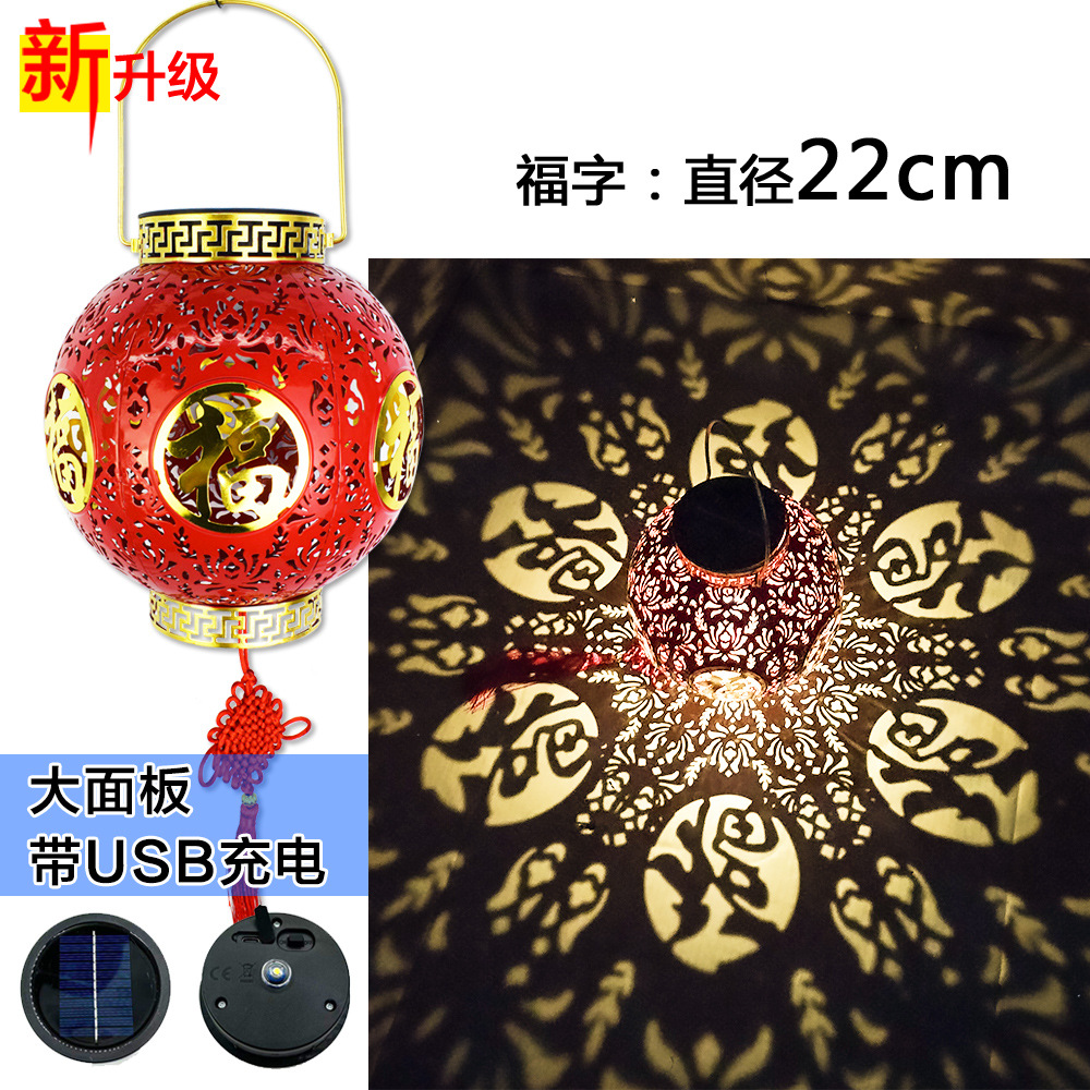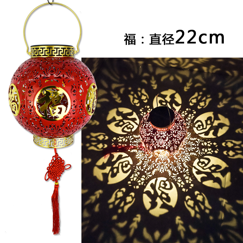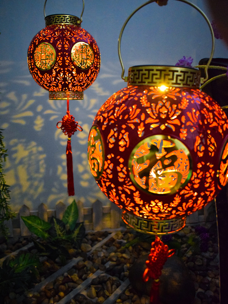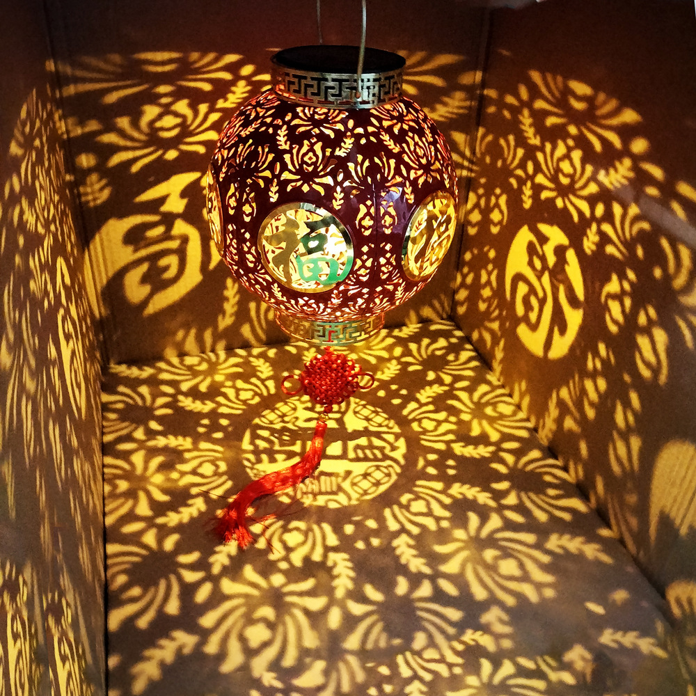 ✅ 태양광 야외 방수 중국풍 축복문자 철제 빨간 등불 축제용 야외 빌라 정원 장식등스토어 가기