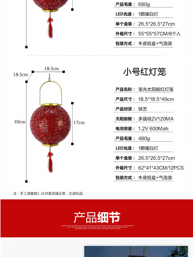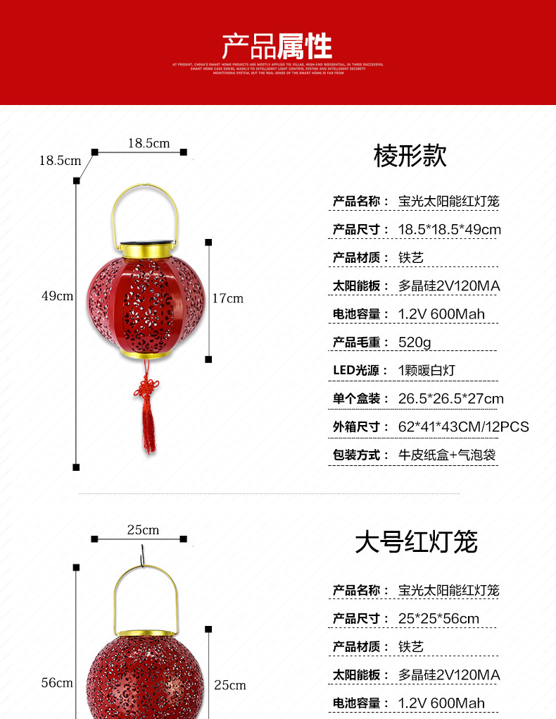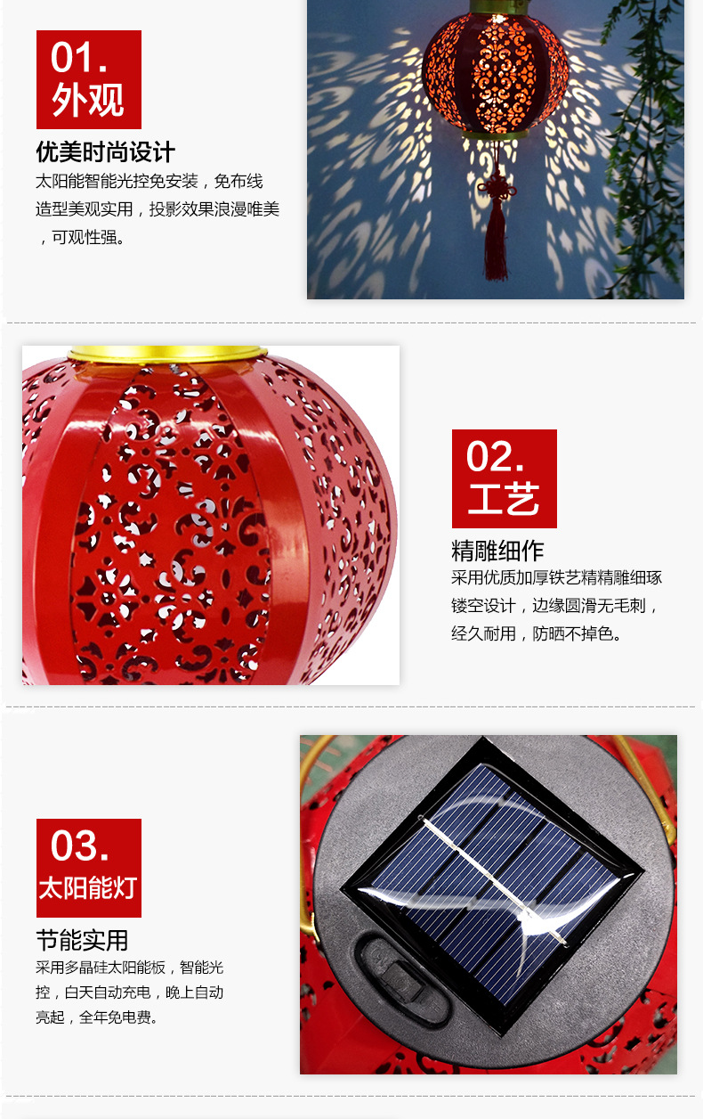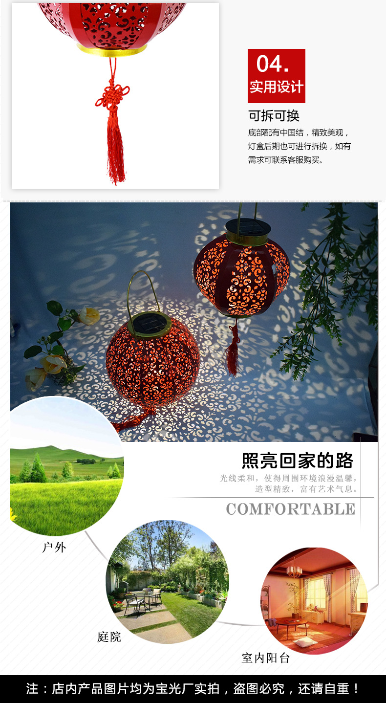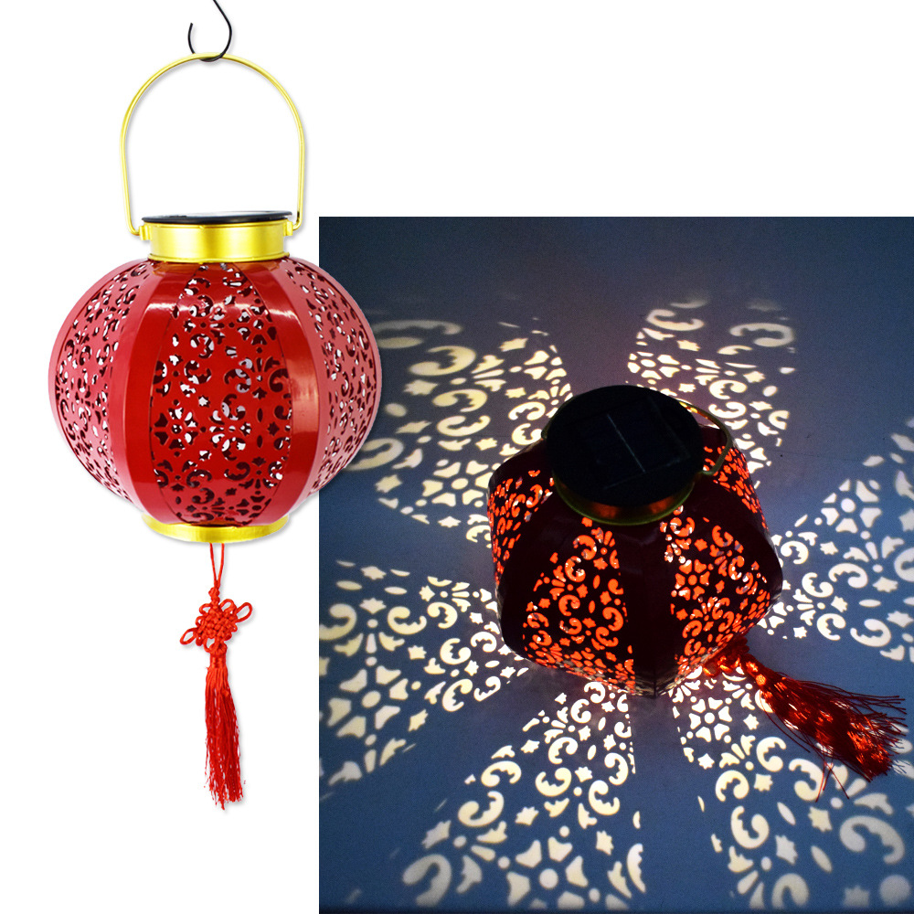 ✅ 태양광 야외 방수 중국풍 축복문자 철제 빨간 등불 축제용 야외 빌라 정원 장식등스토어 가기