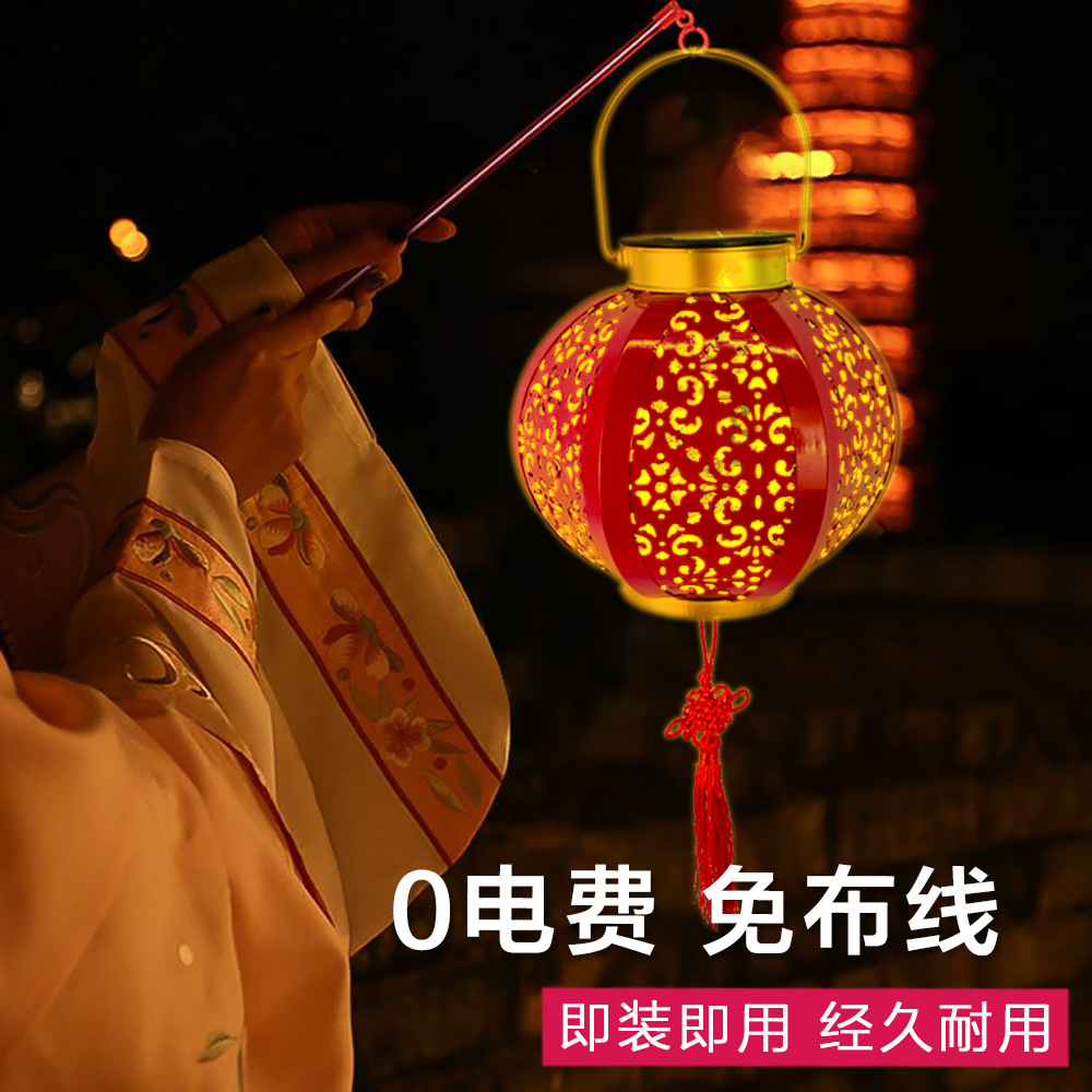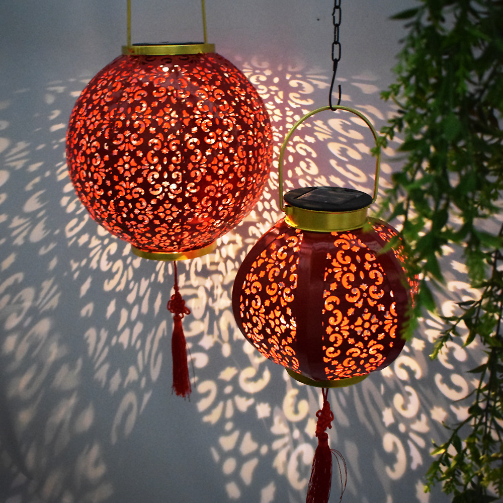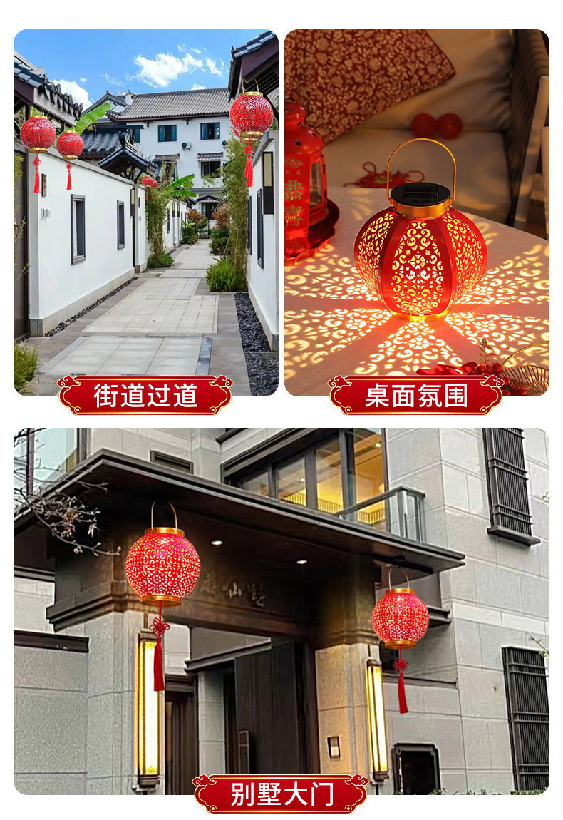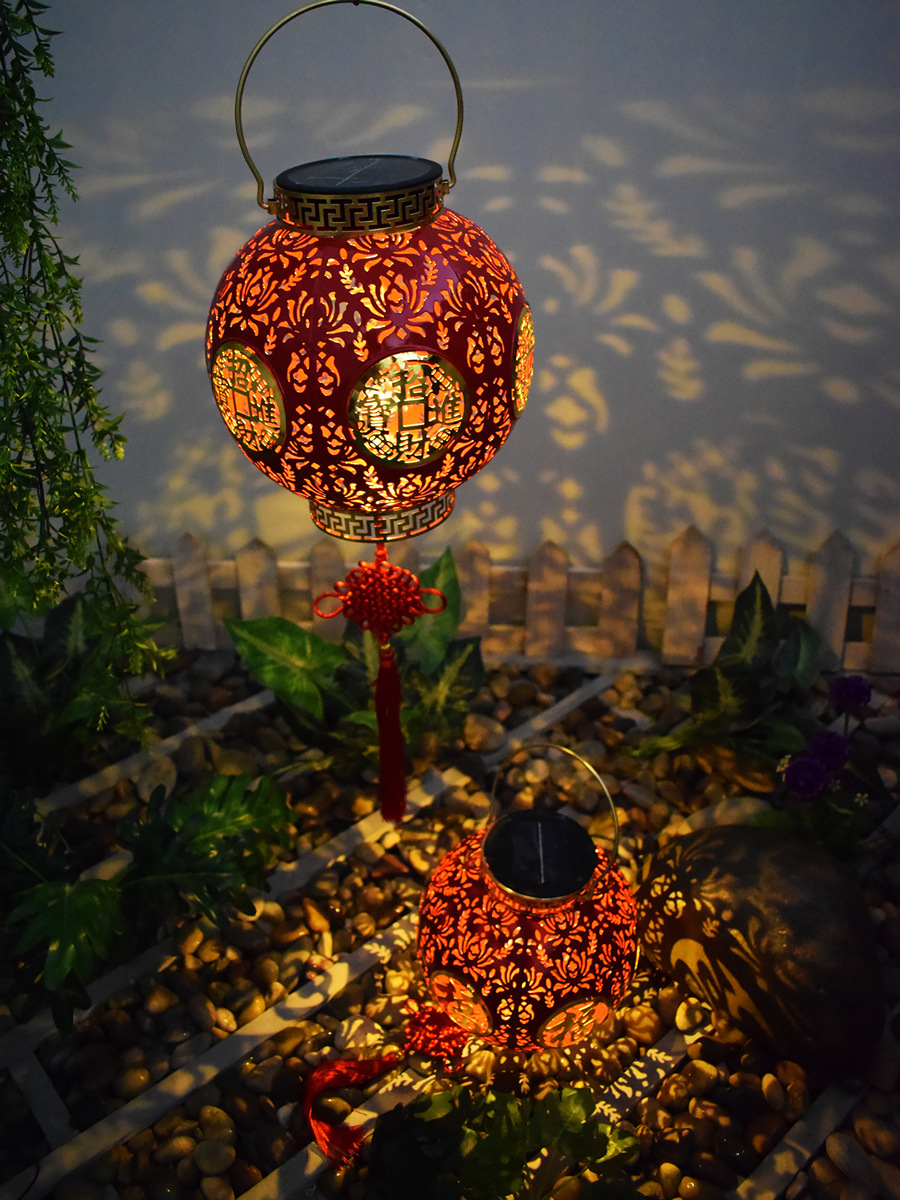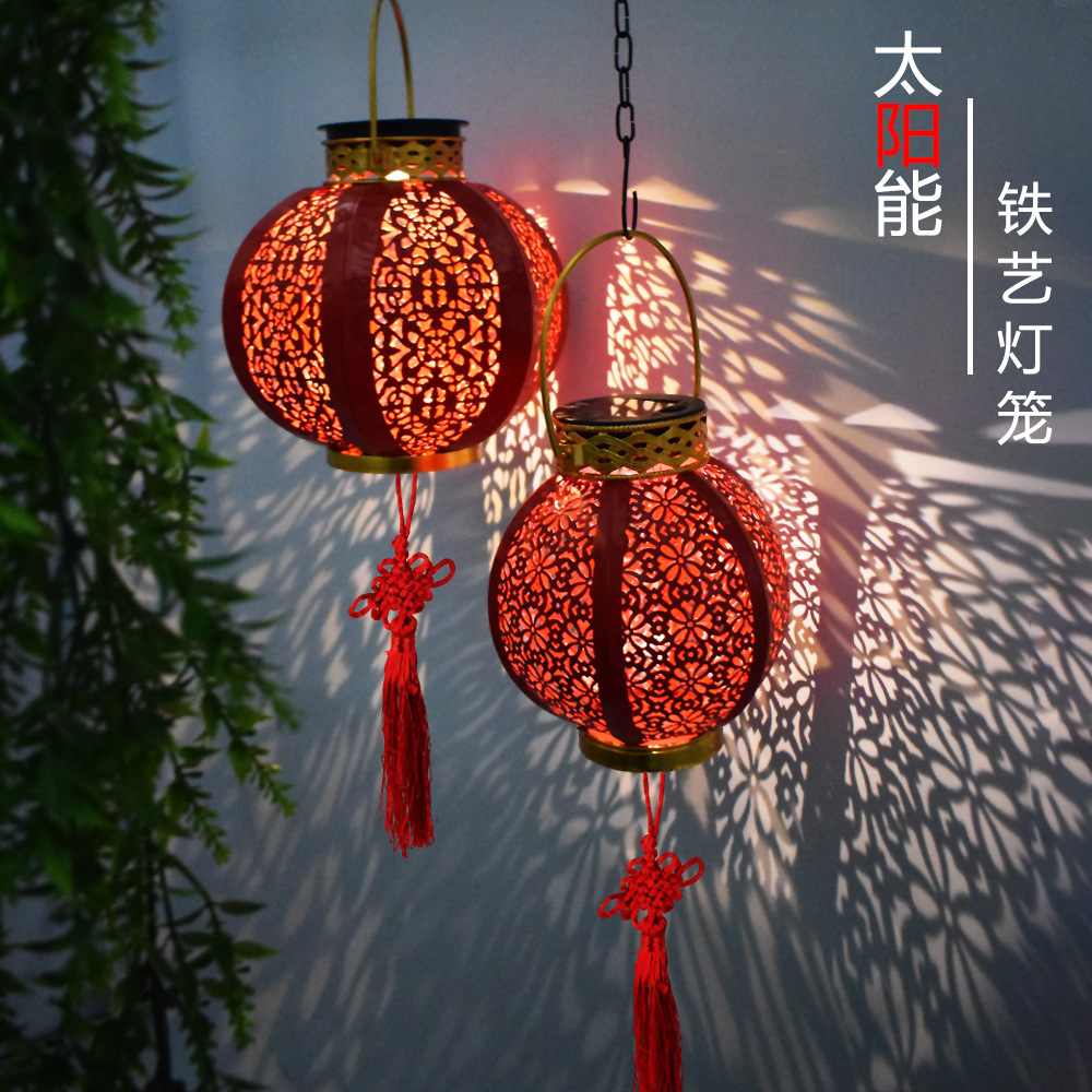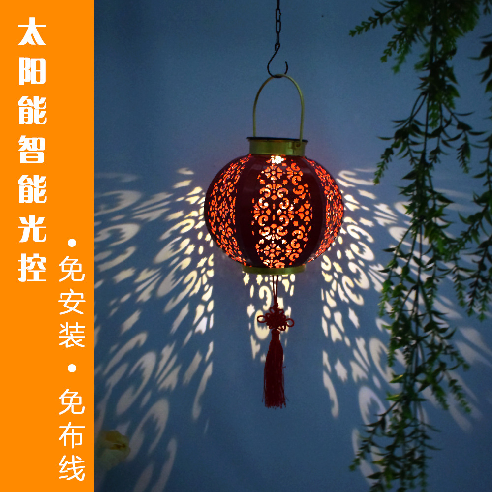 ⇡ 태양열 구동 야외 방수 중국 스타일의 붉은 등불, 축제용 야외 빌라 정원 장식 조명