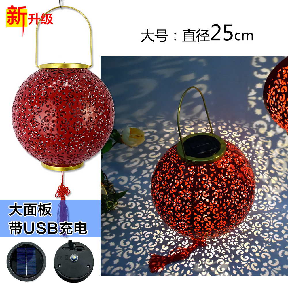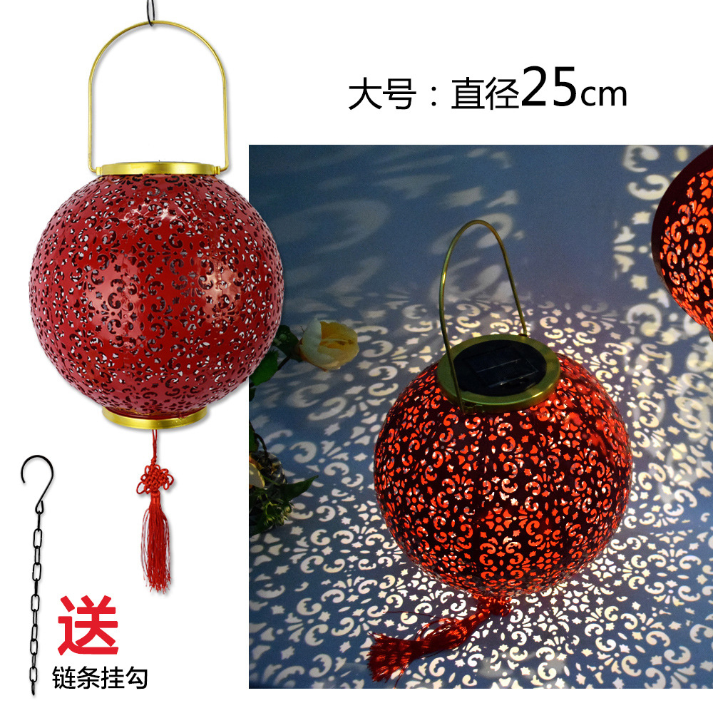✅ 태양광 야외 방수 중국풍 축복문자 철제 빨간 등불 축제용 야외 빌라 정원 장식등