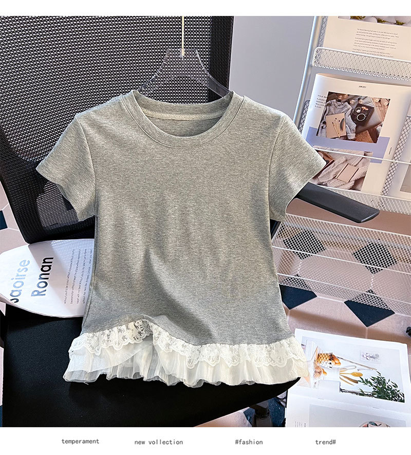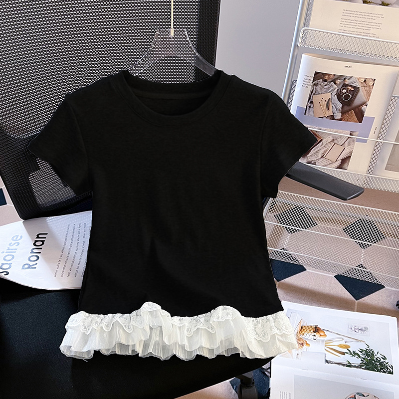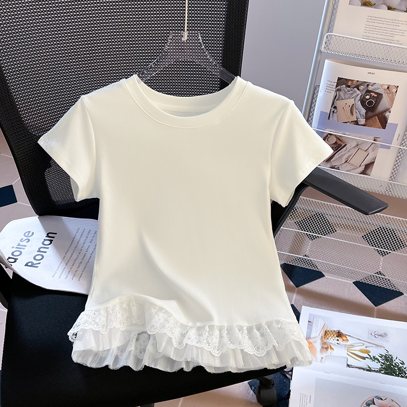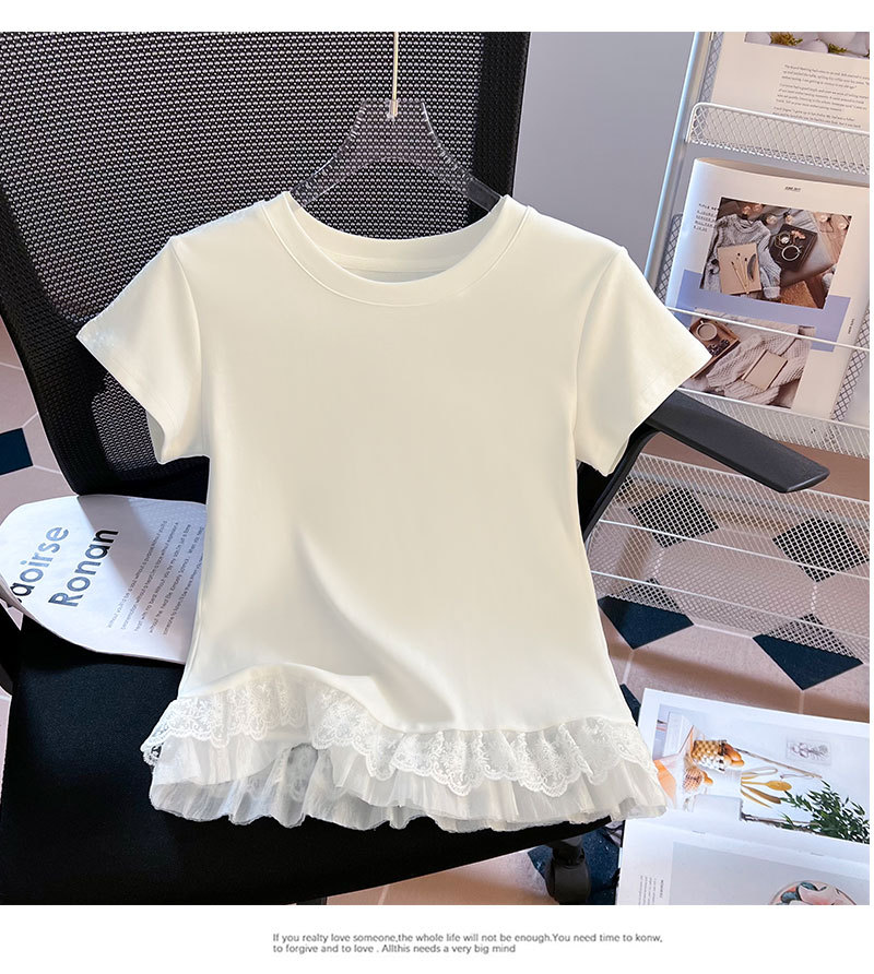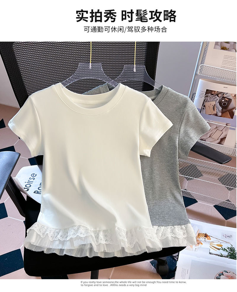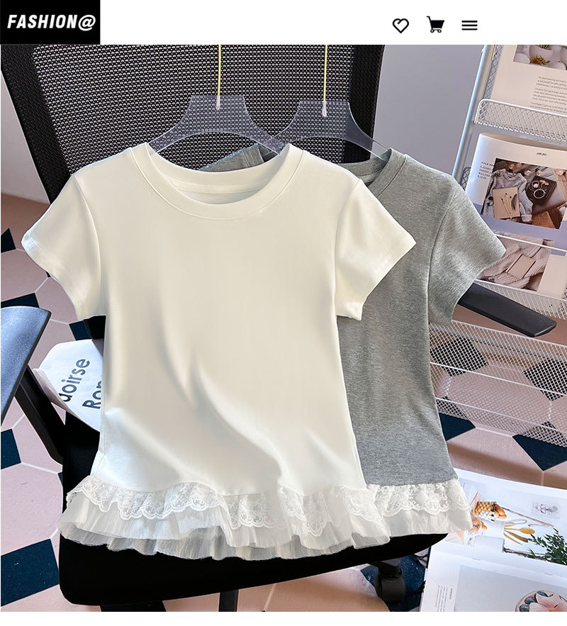 레이스 라운드 넥 짧은 소매 티셔츠 여성의 여름 새로운 순수한 욕망 바람 내부 쌓은베이스 셔츠 탑 도매스토어 가기