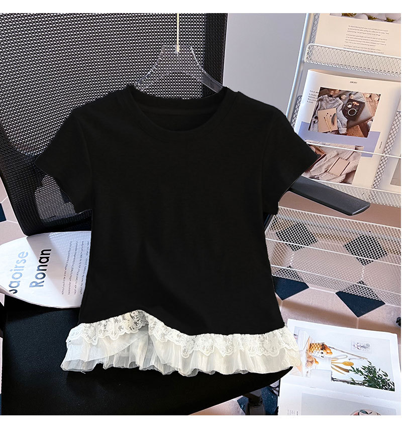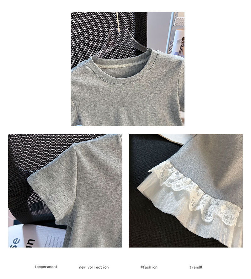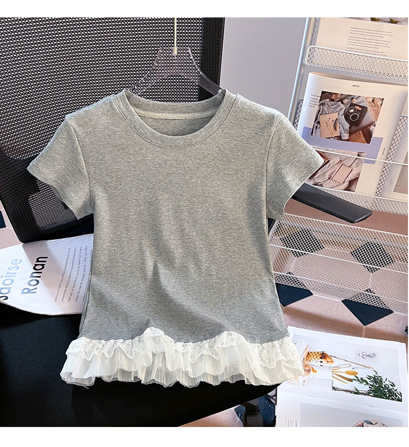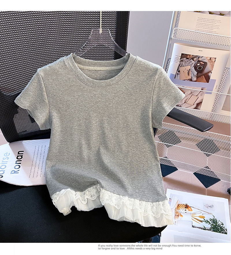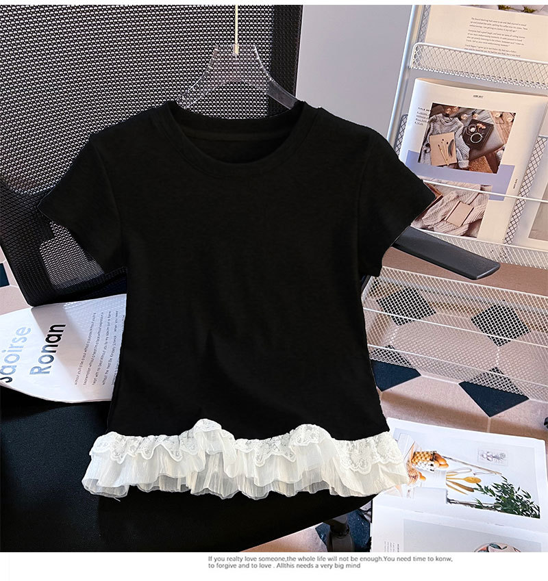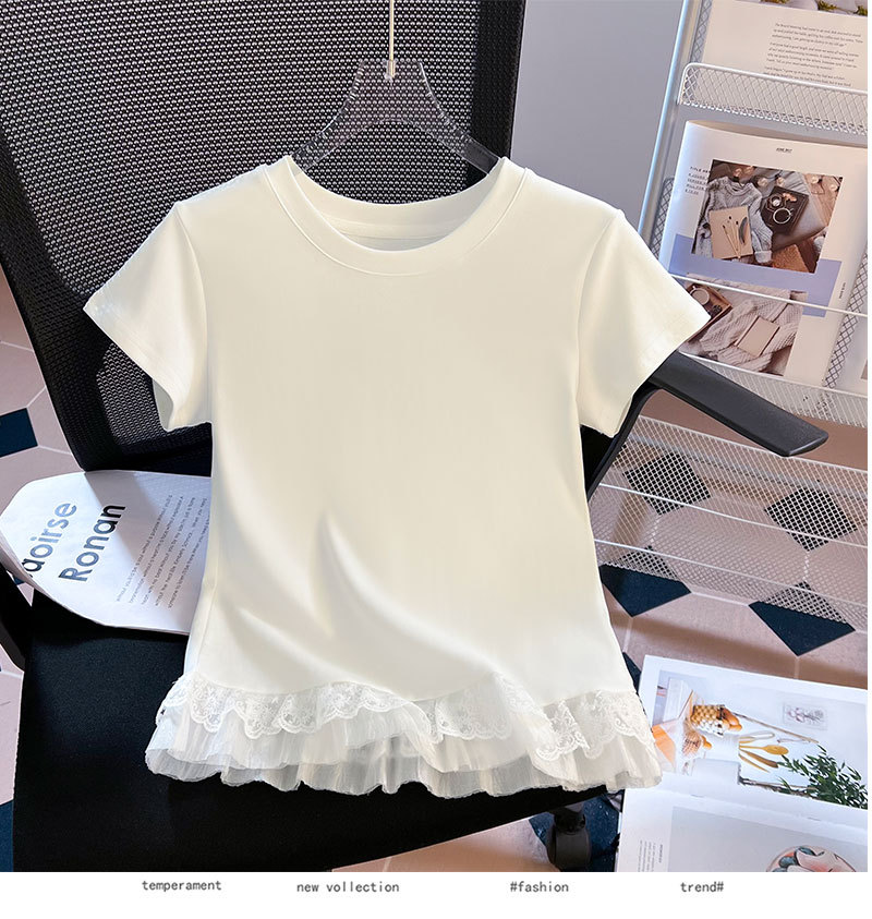 레이스 라운드 넥 짧은 소매 티셔츠 여성의 여름 새로운 순수한 욕망 바람 내부 쌓은베이스 셔츠 탑 도매스토어 가기