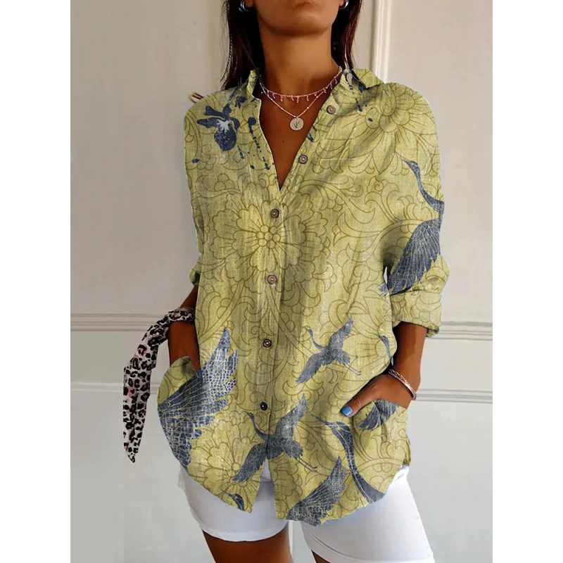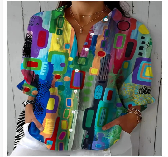 2024 새로운 여성의 긴 셔츠 여성의 여름 유럽과 미국의 트렌드 긴 소매 셔츠 꽃 패턴 인쇄 3D 셔츠스토어 가기