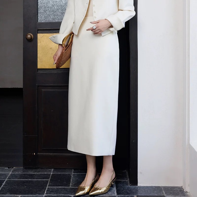 재고 공장 도매 패션 화이트 세트 세트 여성용 울 기질 짧은 최고 치마스토어 가기