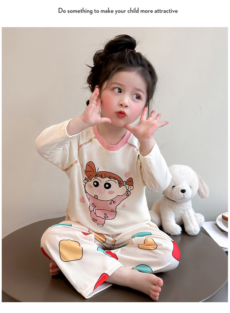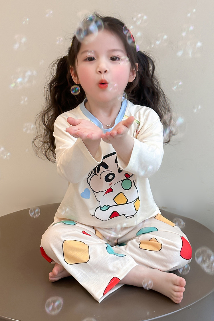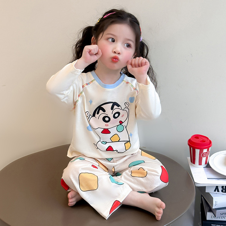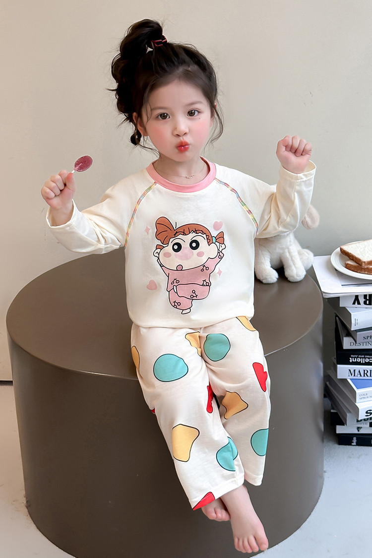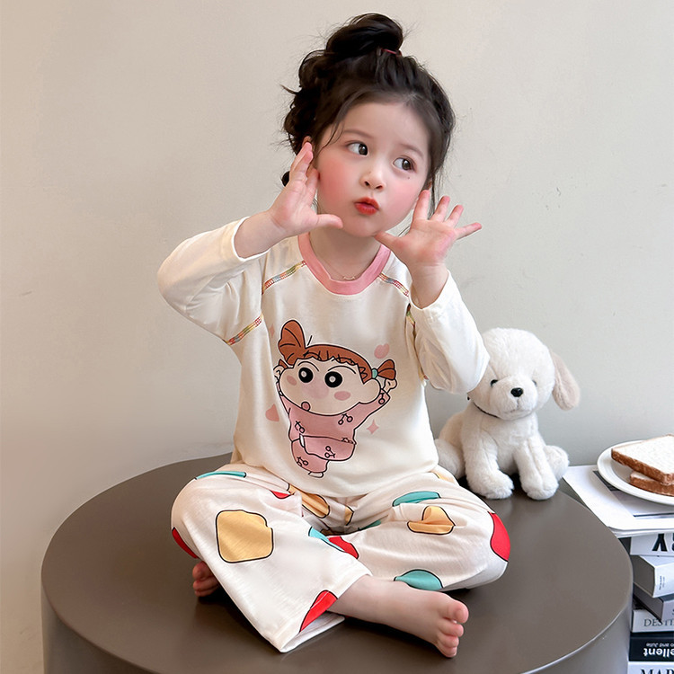 어린이 잠옷 면화 세트 봄과 가을 2025 새로운 어린 소녀 아기 긴 소매 바지 봄 홈 옷스토어 가기