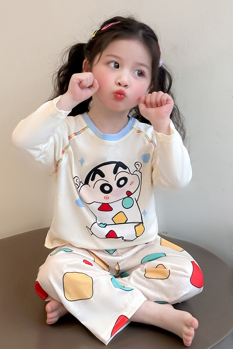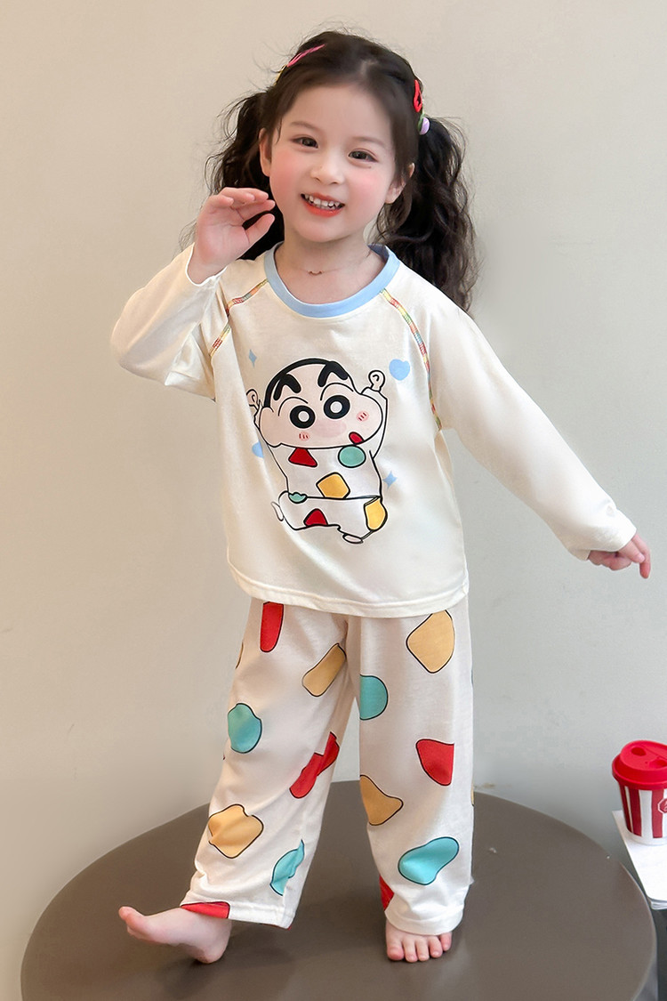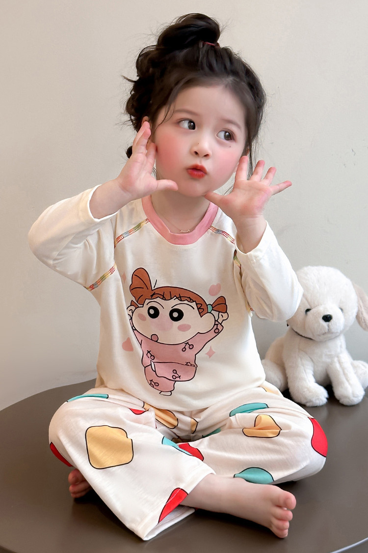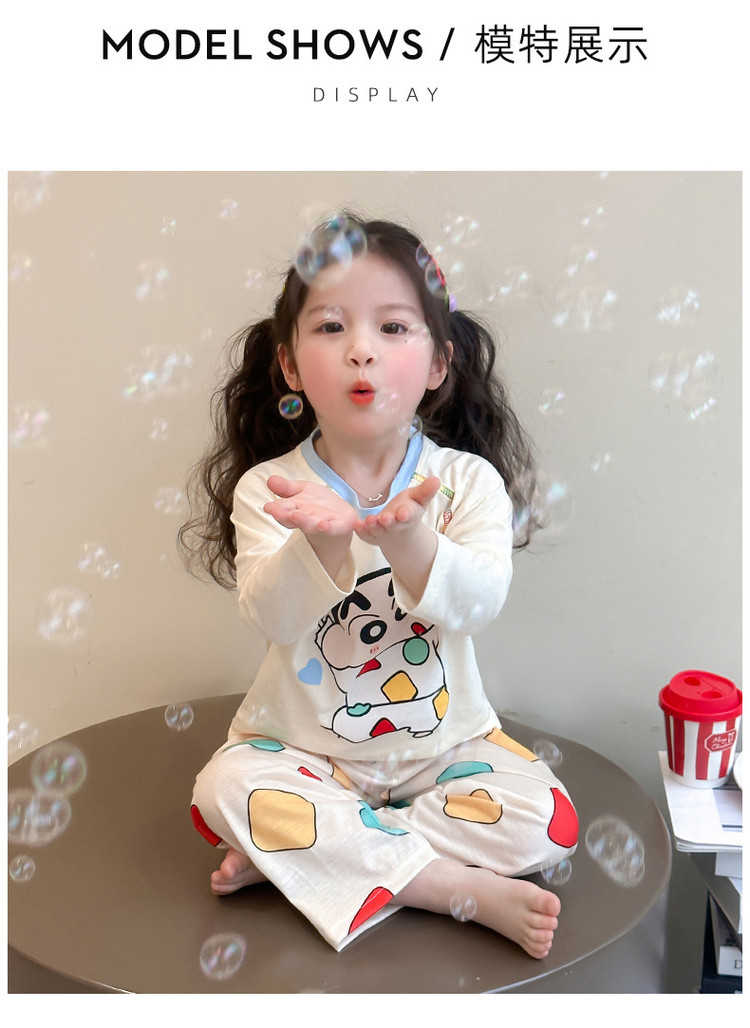 어린이 잠옷 면화 세트 봄과 가을 2025 새로운 어린 소녀 아기 긴 소매 바지 봄 홈 옷스토어 가기