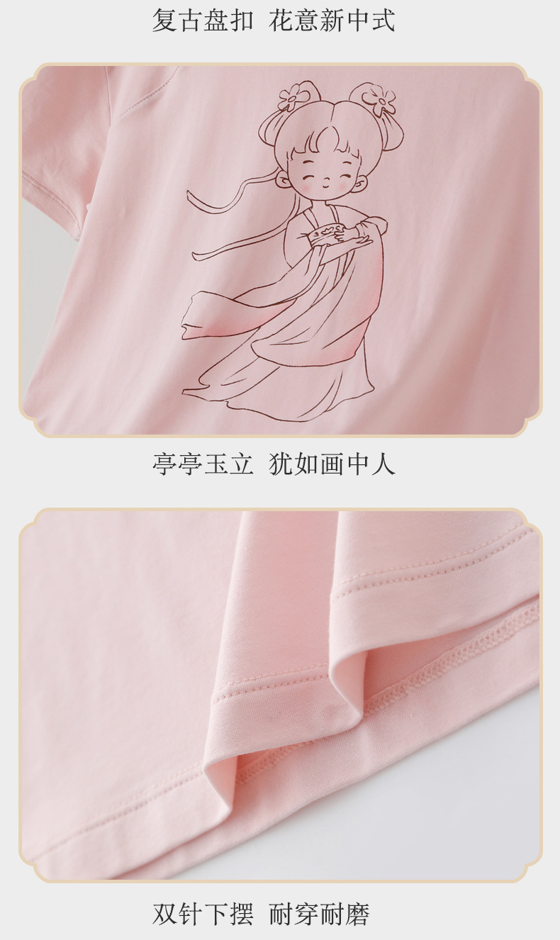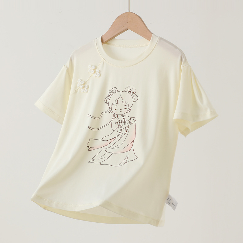 어린이 티셔츠 반팔 소녀 봄과 여름 Lyocell 얇은 탑 아기의 새로운 중국 통기성 기지 셔츠 아동복스토어 가기