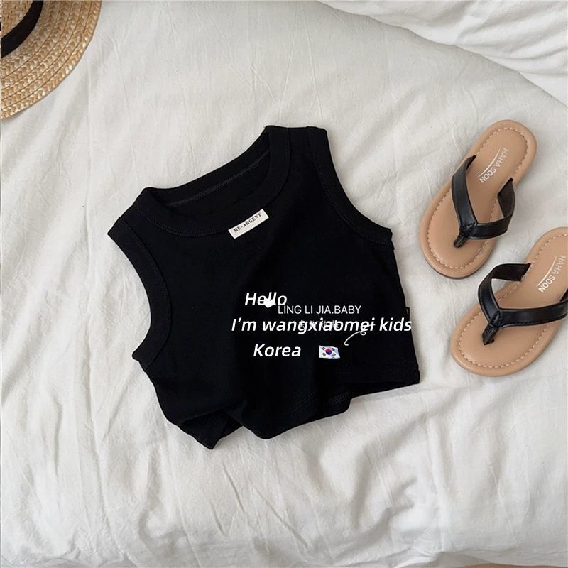 순면 여름 얇은 기지 여름 짧은 슬링 여름 어린이 민소매 탑 착용 국경 소녀 조끼