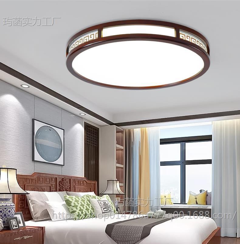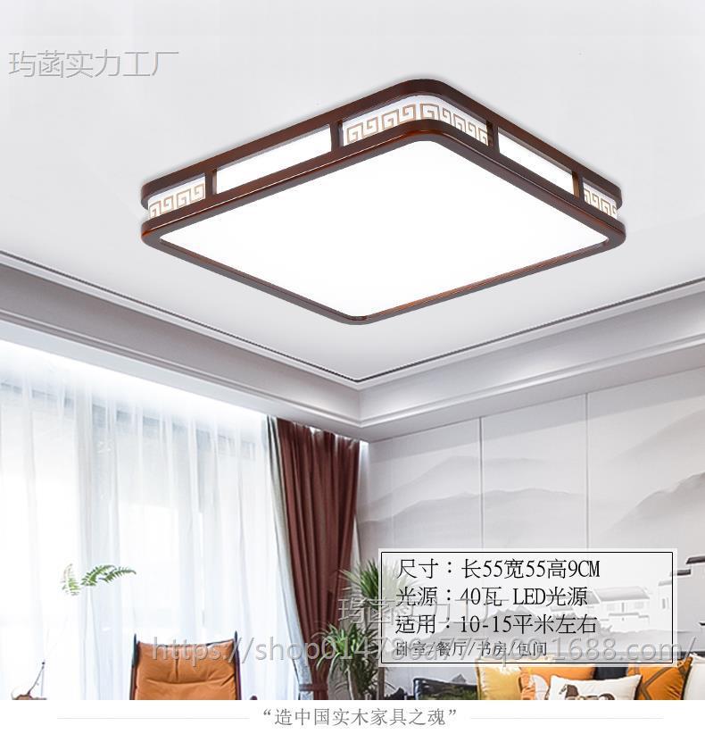 새로운 중국 천장 램프 중국 스타일 단단한 나무 거실 램프 패키지 LED 직사각형 다이닝 룸 침실 나무 램프스토어 가기