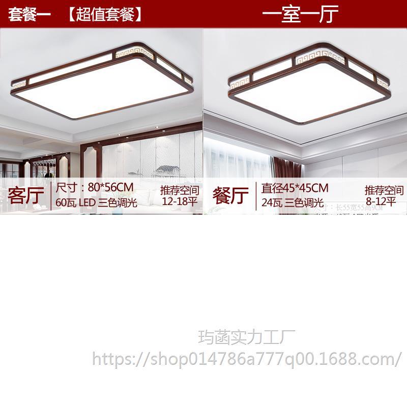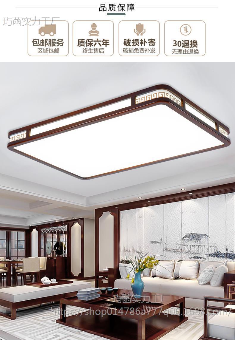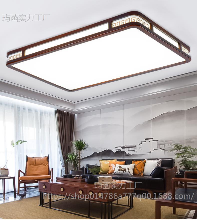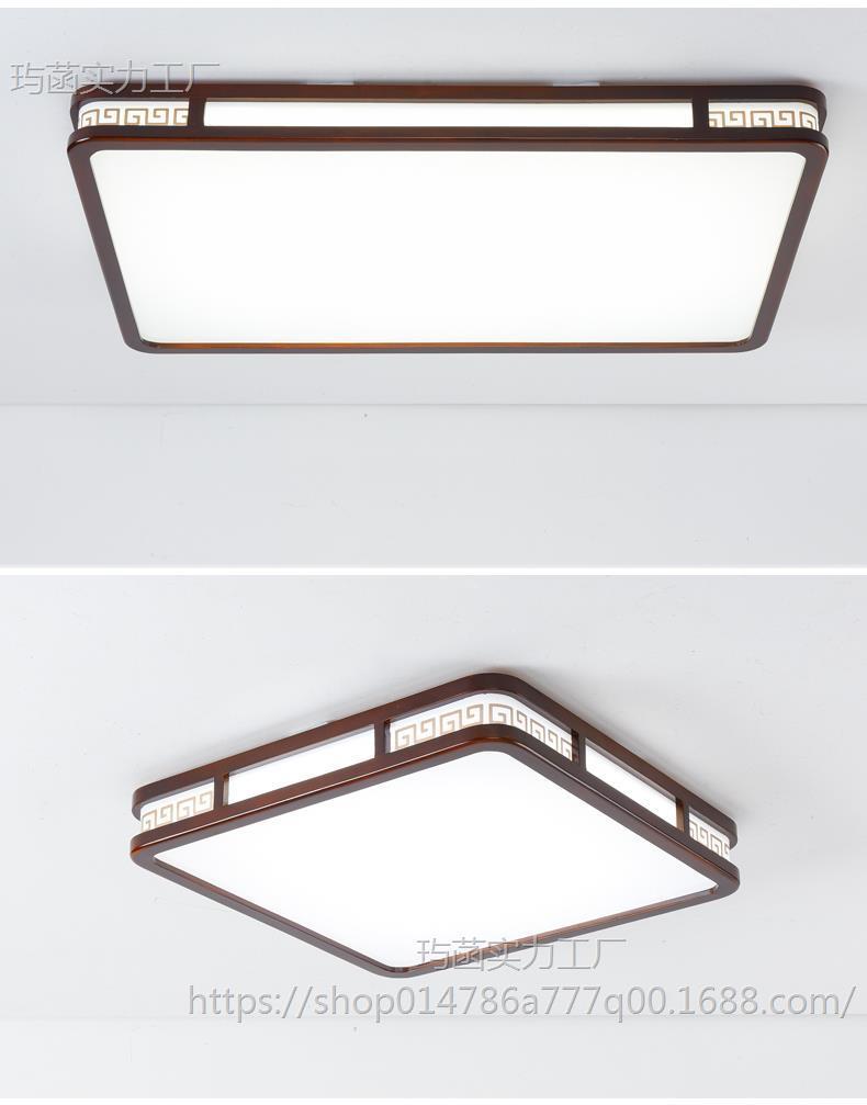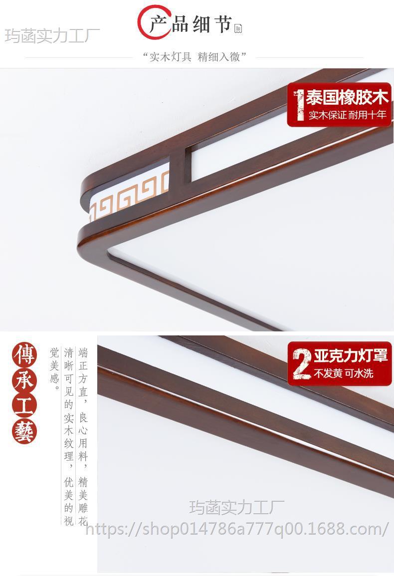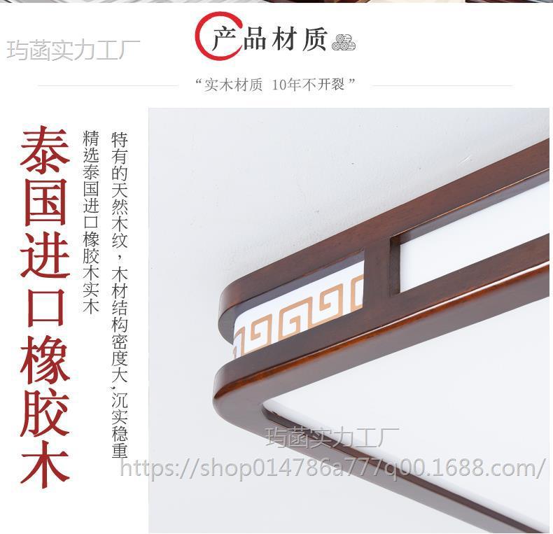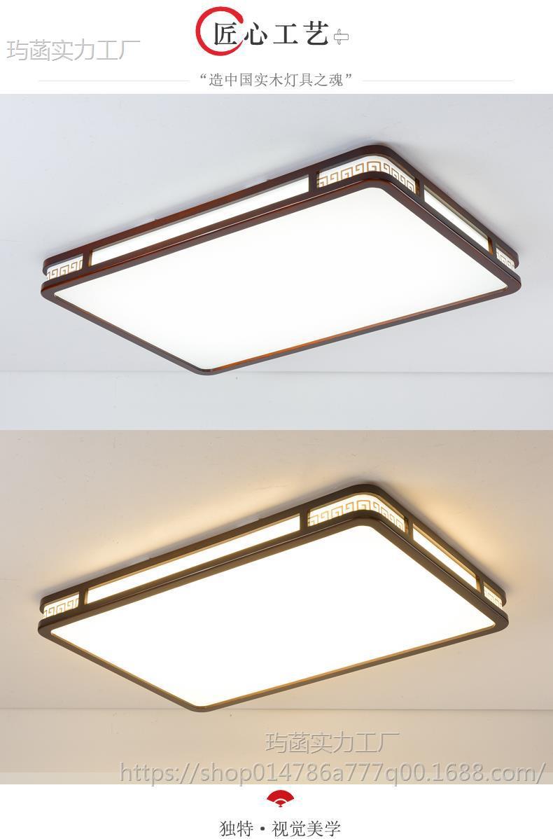 새로운 중국 천장 램프 중국 스타일 단단한 나무 거실 램프 패키지 LED 직사각형 다이닝 룸 침실 나무 램프