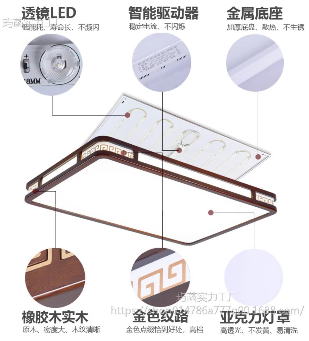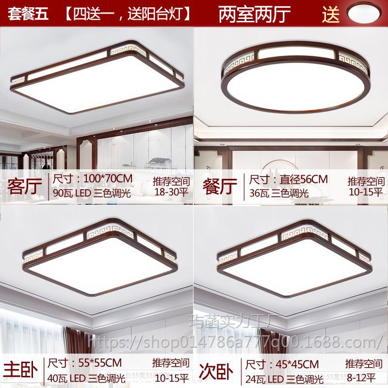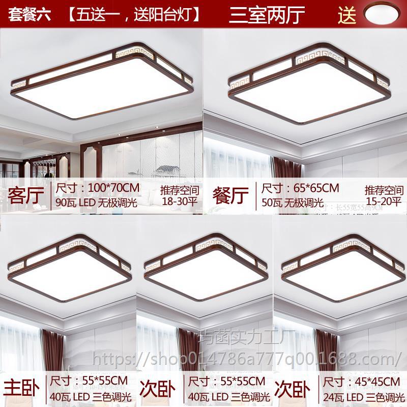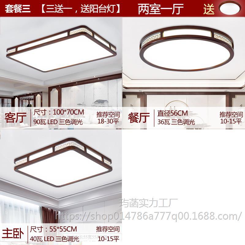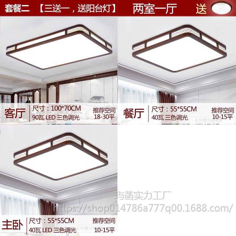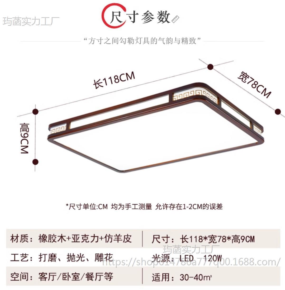 새로운 중국 천장 램프 중국 스타일 단단한 나무 거실 램프 패키지 LED 직사각형 다이닝 룸 침실 나무 램프