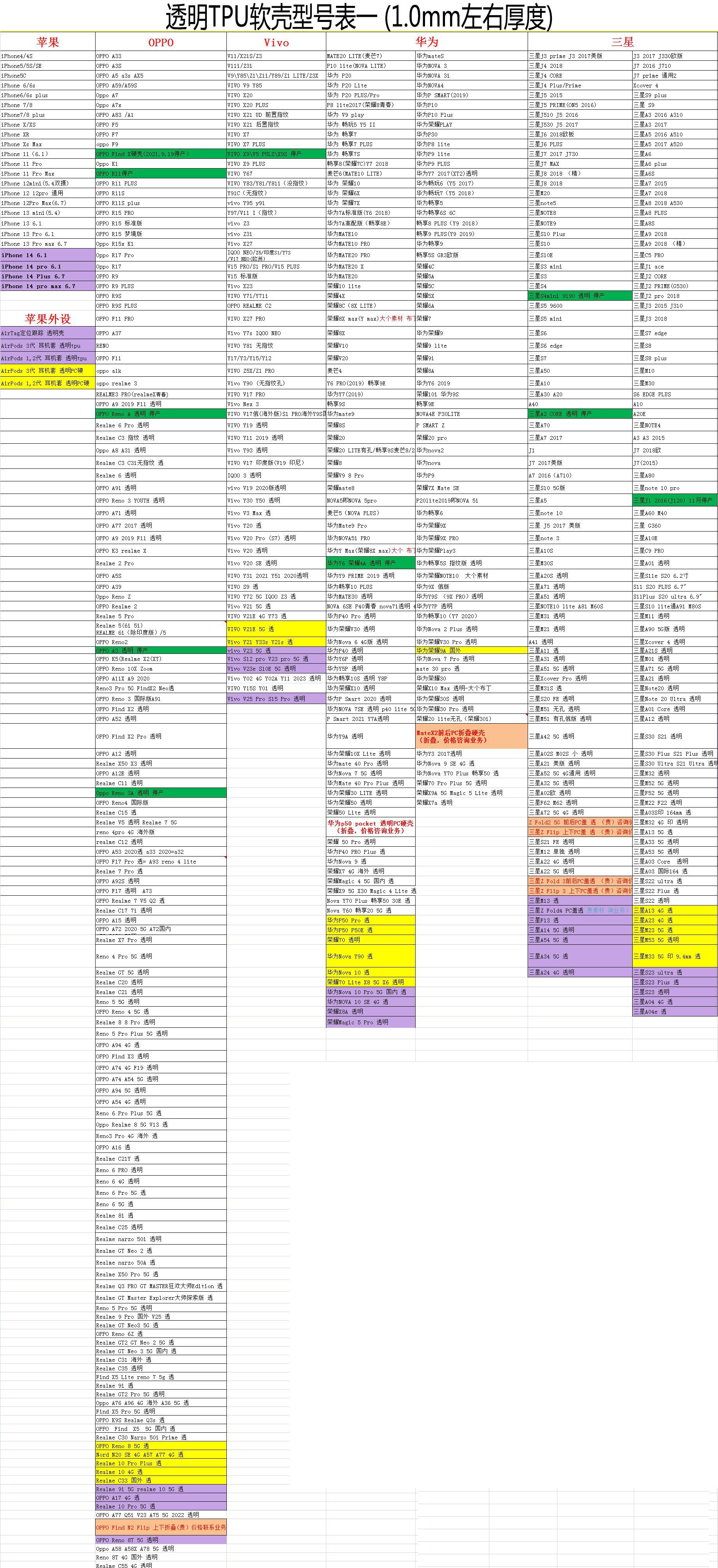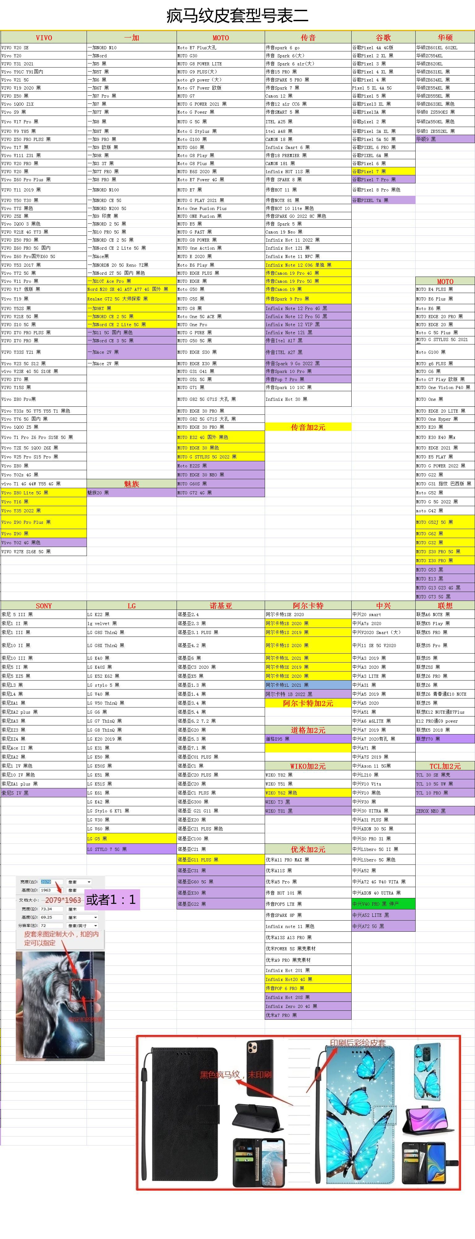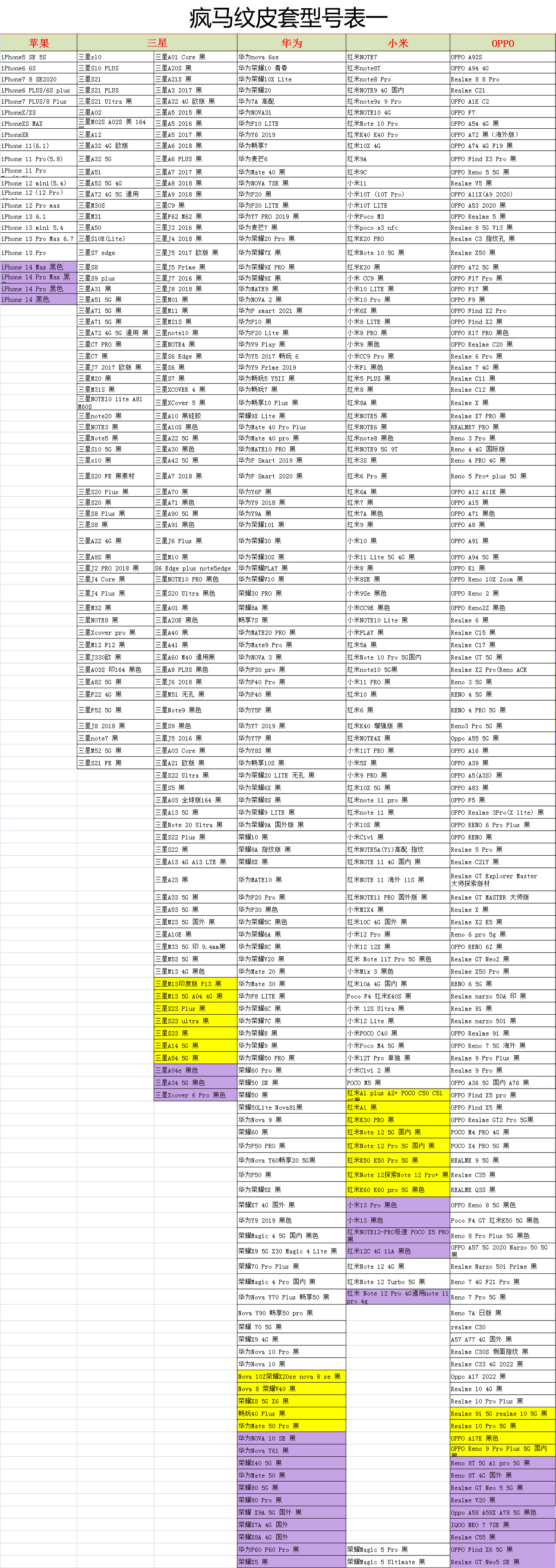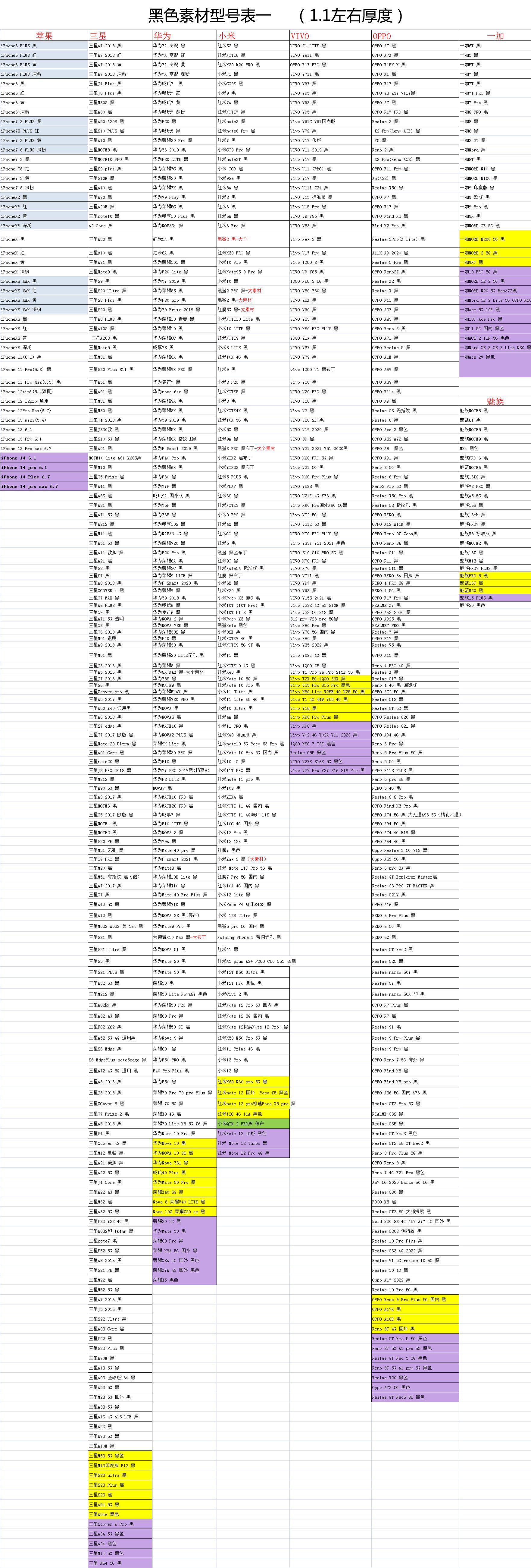 疯马纹皮套型号表.....透明软壳型号表.....黑色软壳型号表.....玻璃素材型号表