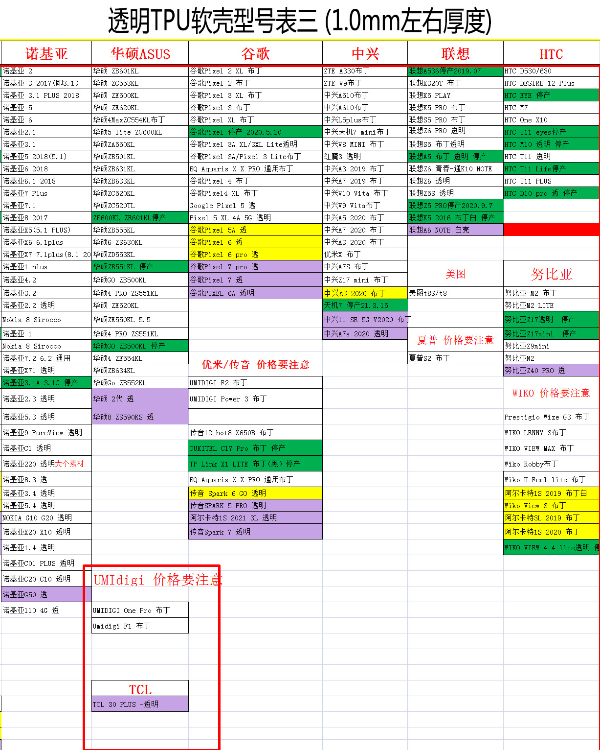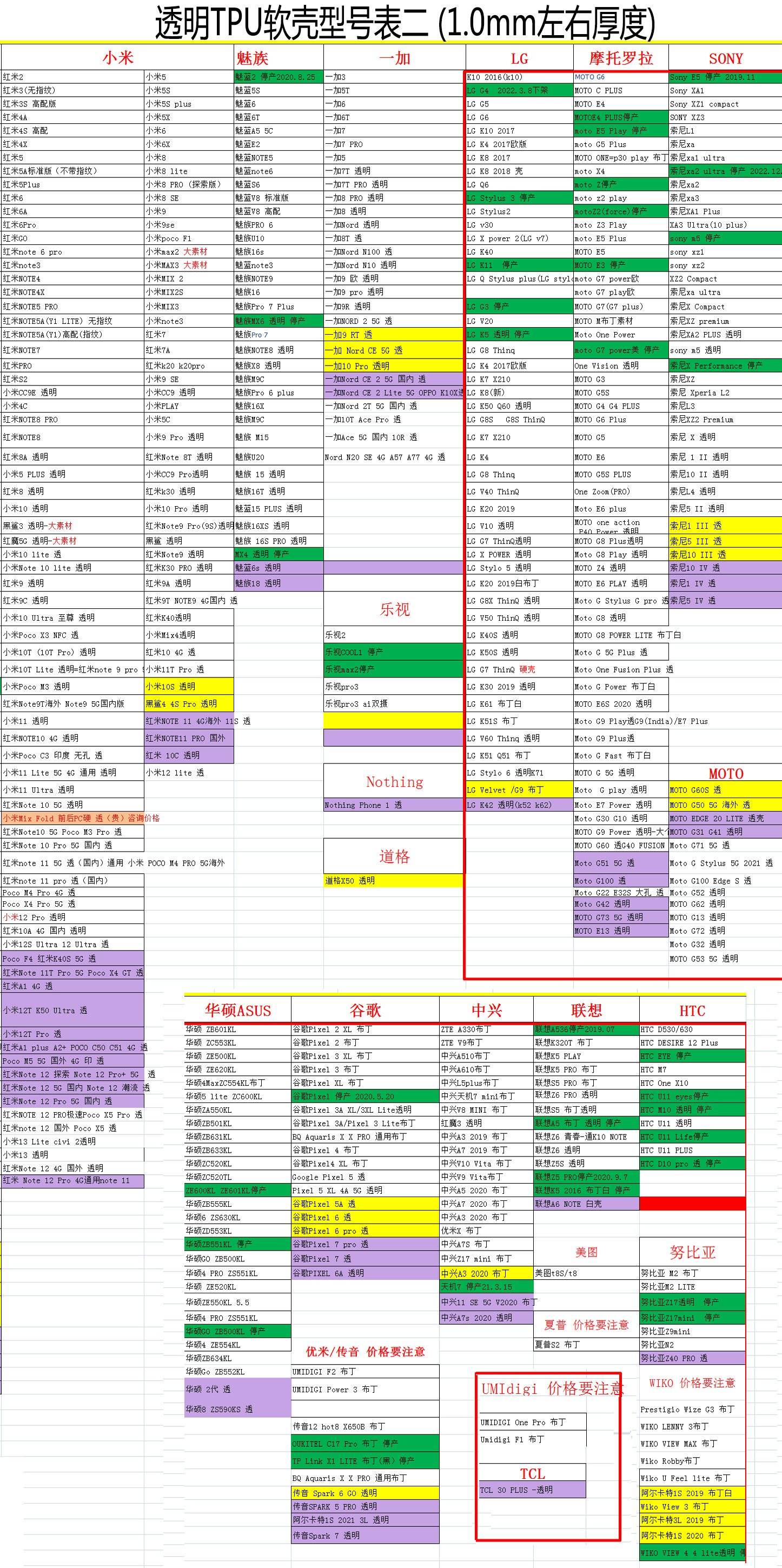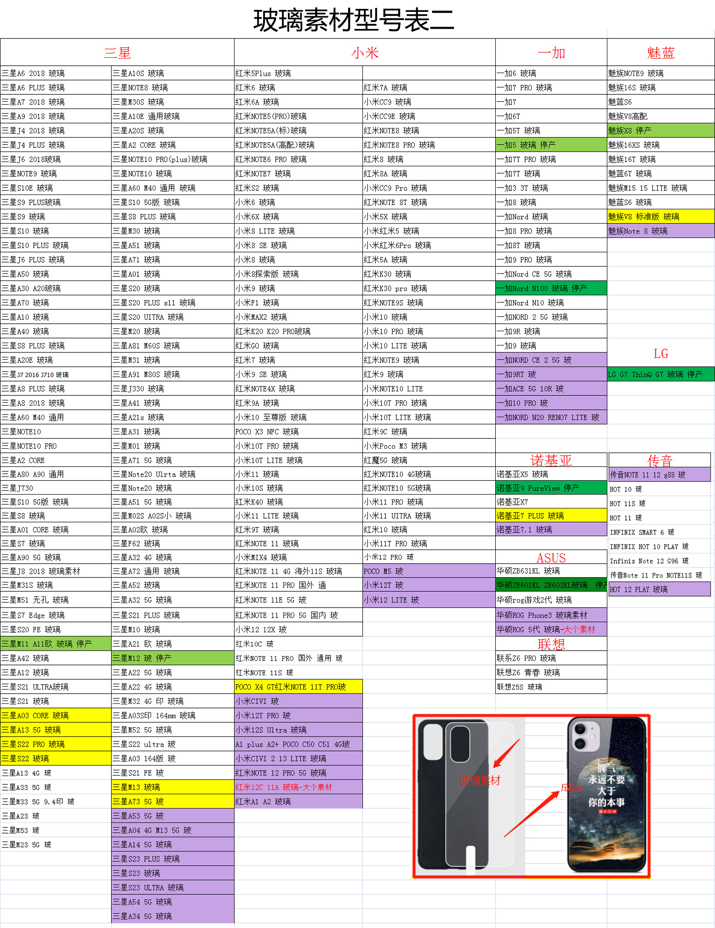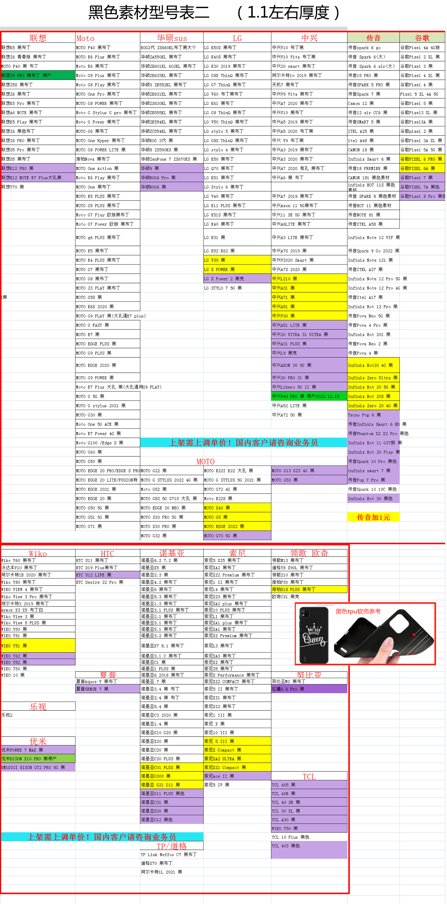 疯马纹皮套型号表.....透明软壳型号表.....黑色软壳型号表.....玻璃素材型号表