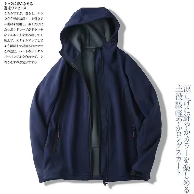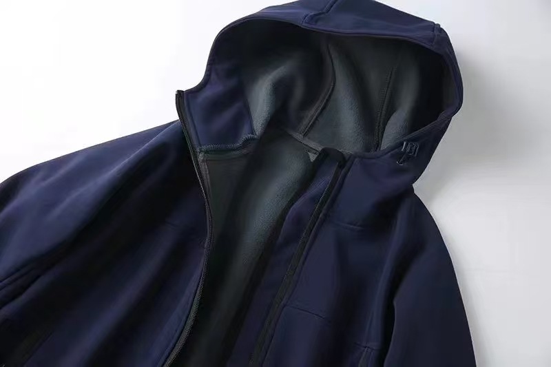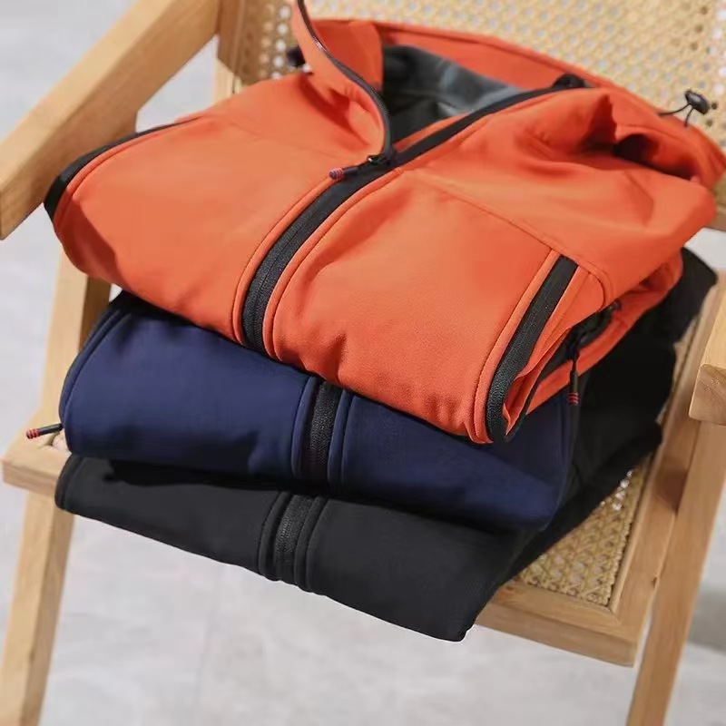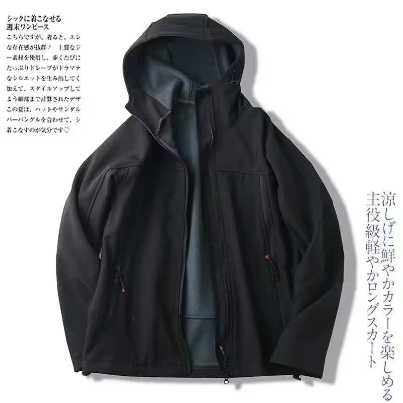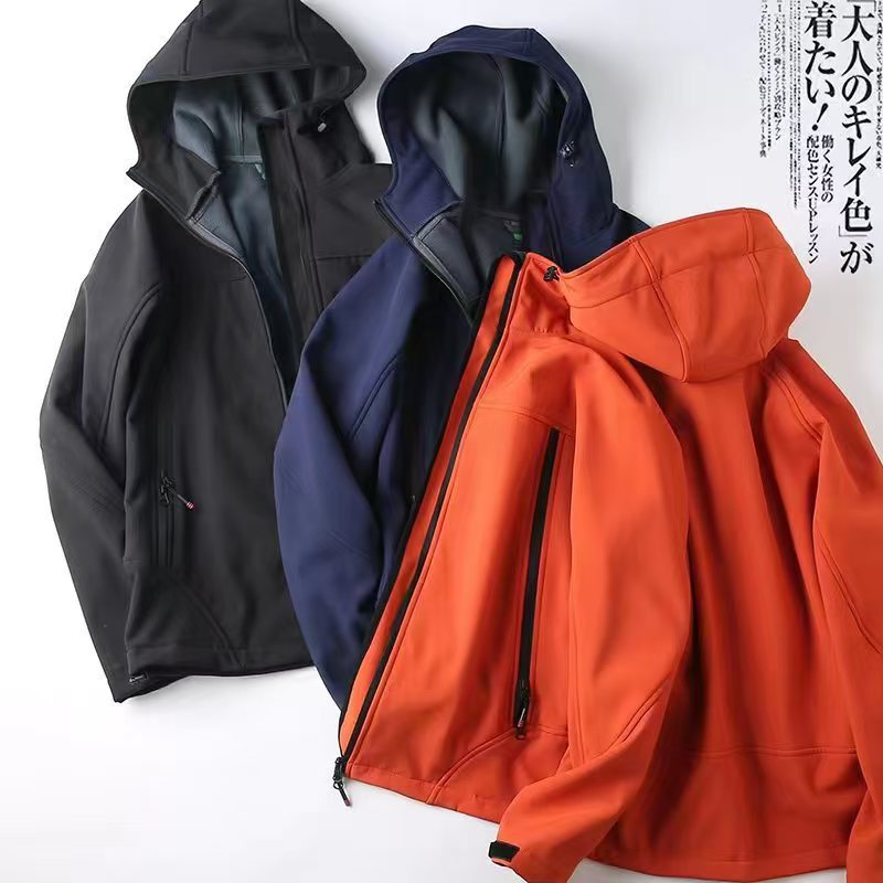 기모 소프트 쉘 남성과 여성의 봄과 가을 야외 소프트 쉘 충전 따뜻한 스포츠 레저 윈드 브레이커 후드 재킷