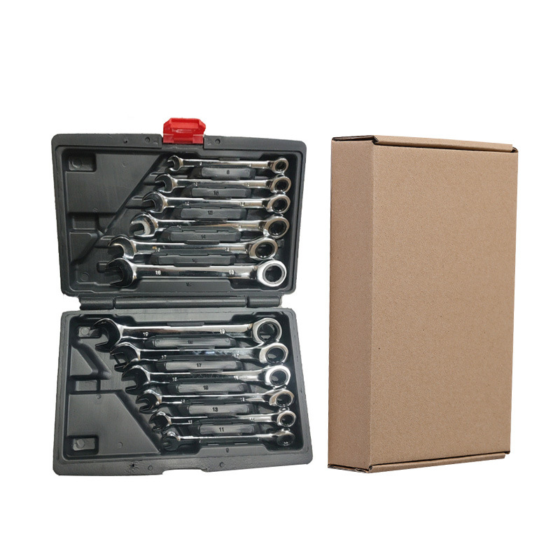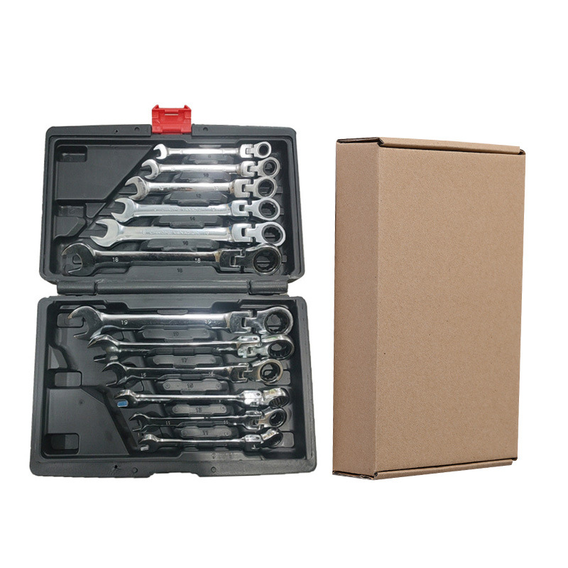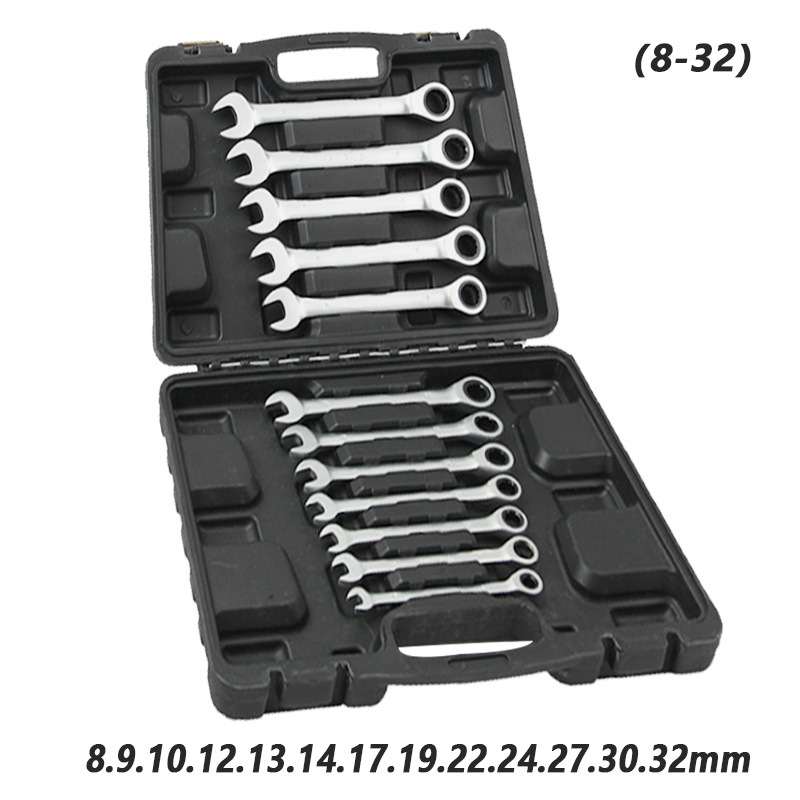 12PC 플라스틱 상자 이중 목적 래칫 렌치 조정 가능한 헤드 세트 자동 수리 도구 72 개 치아 12 개 세트 래칫 렌치 세트